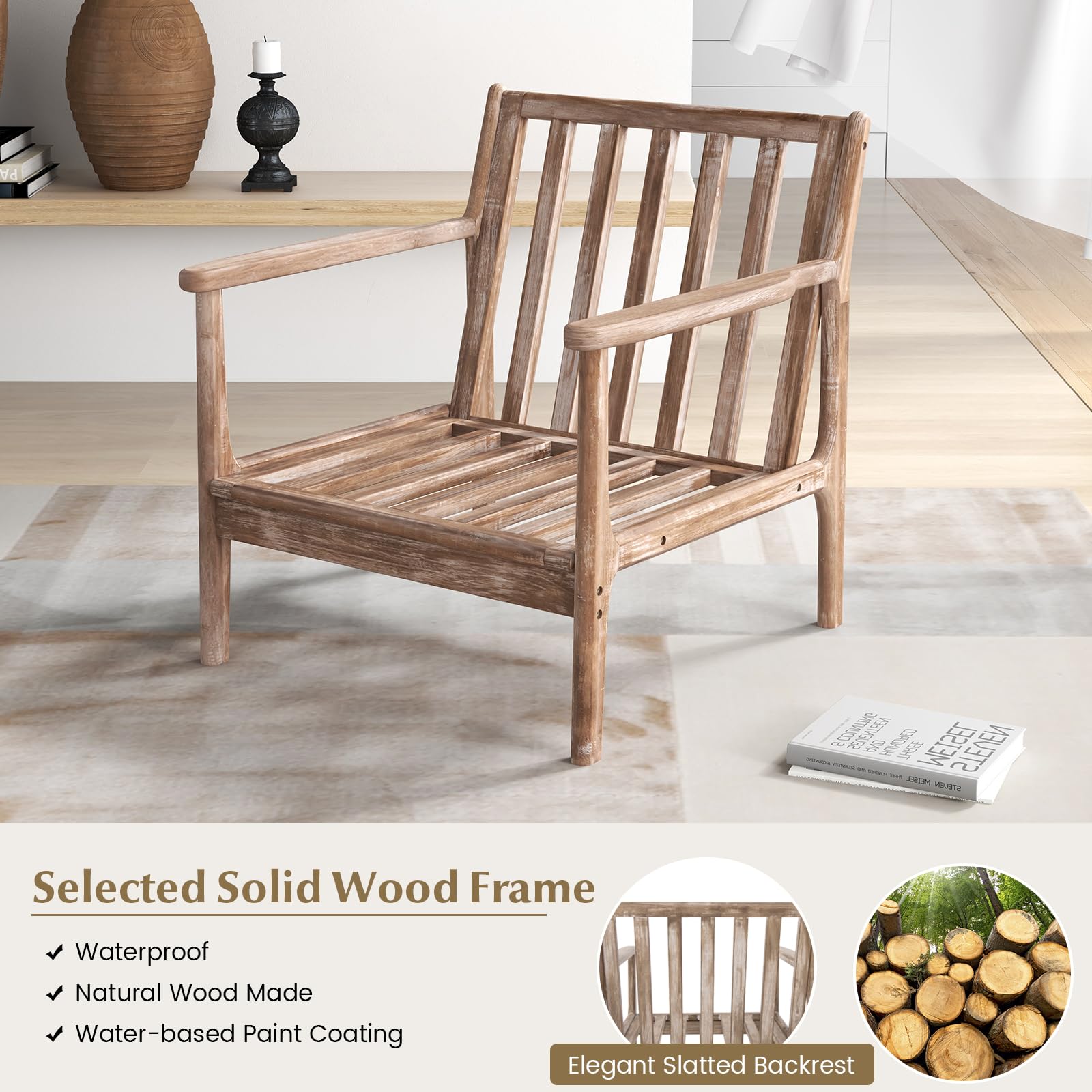 Is it time to upgrade your seating experience? Look no further than our Giantex accent chair. Crafted with a natural wood frame and coated with water-based paint, this chair offers exceptional durability and a high load capacity of 440 lbs. But it doesn't stop there. With its high-density sponge-filled seat cushion, high soft back pillow, and slightly slanted backrest, this chair guarantees a comfortable sitting experience that will leave you feeling relaxed and cozy. And if personalization is what you seek, the detachable pillow and seat cushion allows you to adjust to your preferences. Additionally, its elegant slatted backrest and vintage-style surface add a touch of sophistication to any space, making it a versatile addition to your living room, bedroom, study, or even a cafe.