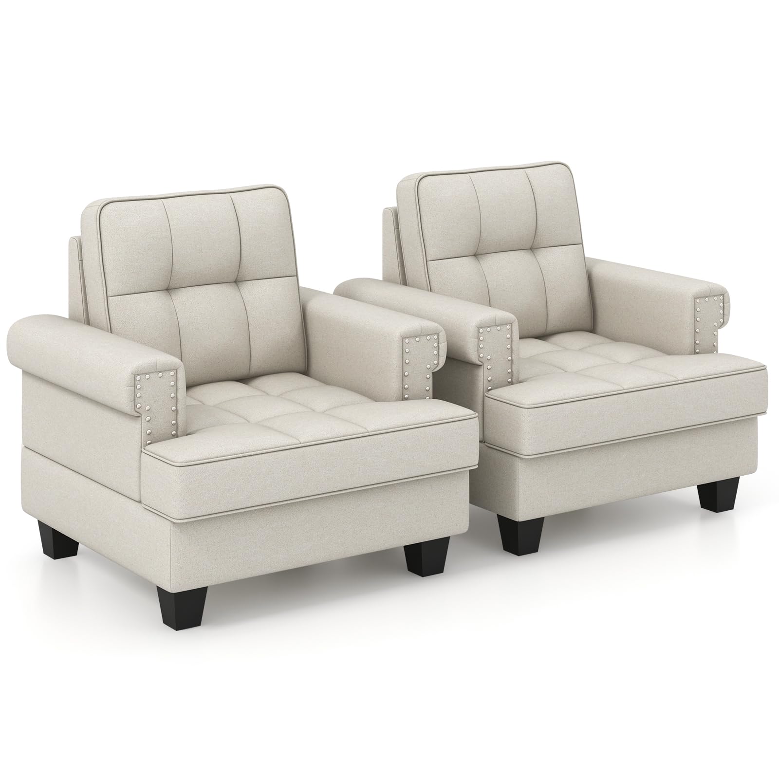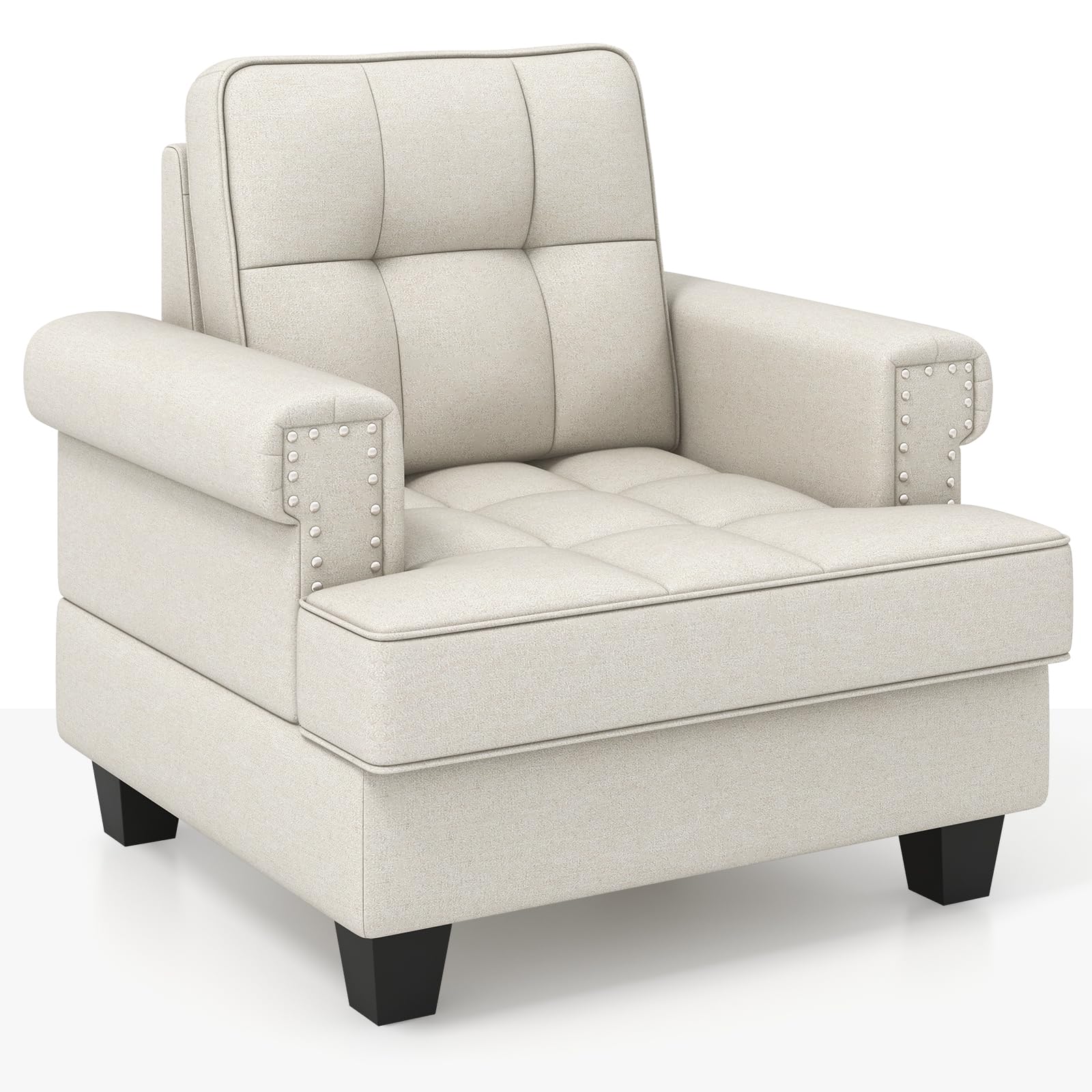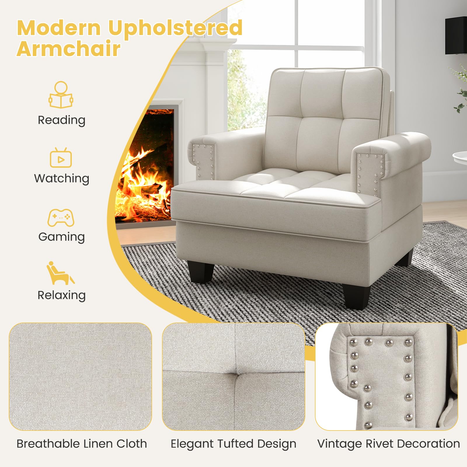 - Stylish Design & Wide Application: This modern upholstered arm chair features elegant tufted design as well as vintage rivet decoration. Thus, it is a perfect addition to your living room, bedroom, reception room and more, imparting a timeless touch to your house.