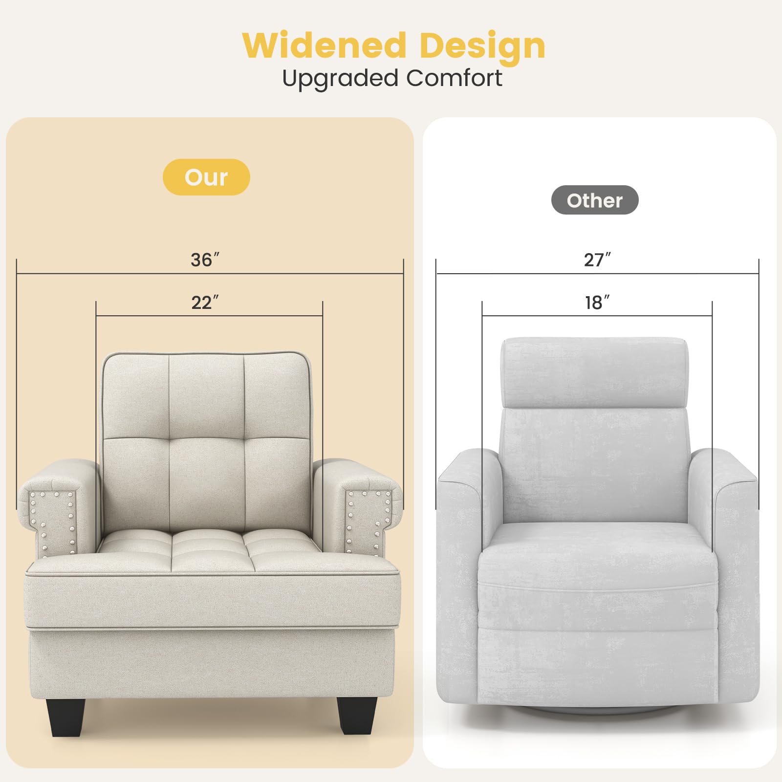 - Upgraded Comfort & Relaxation: Varying from other chairs, our Giantex accent chair boasts a widened sitting area for ungraded coziness. What's more, the high-density sponge provides you with ultimate relaxation. Likewise, the elastic pocket springs in the cushion make you feel more comfortable while reading, watching, gaming, relaxing, etc.