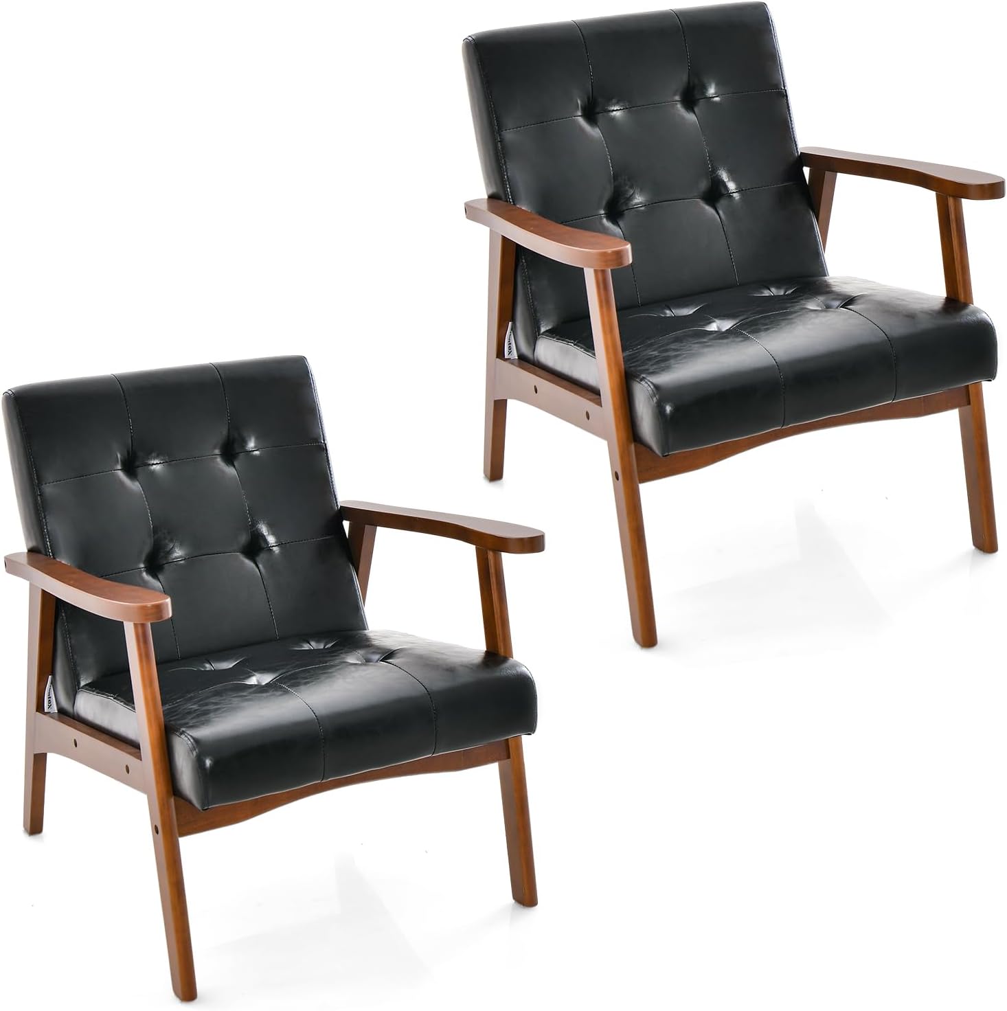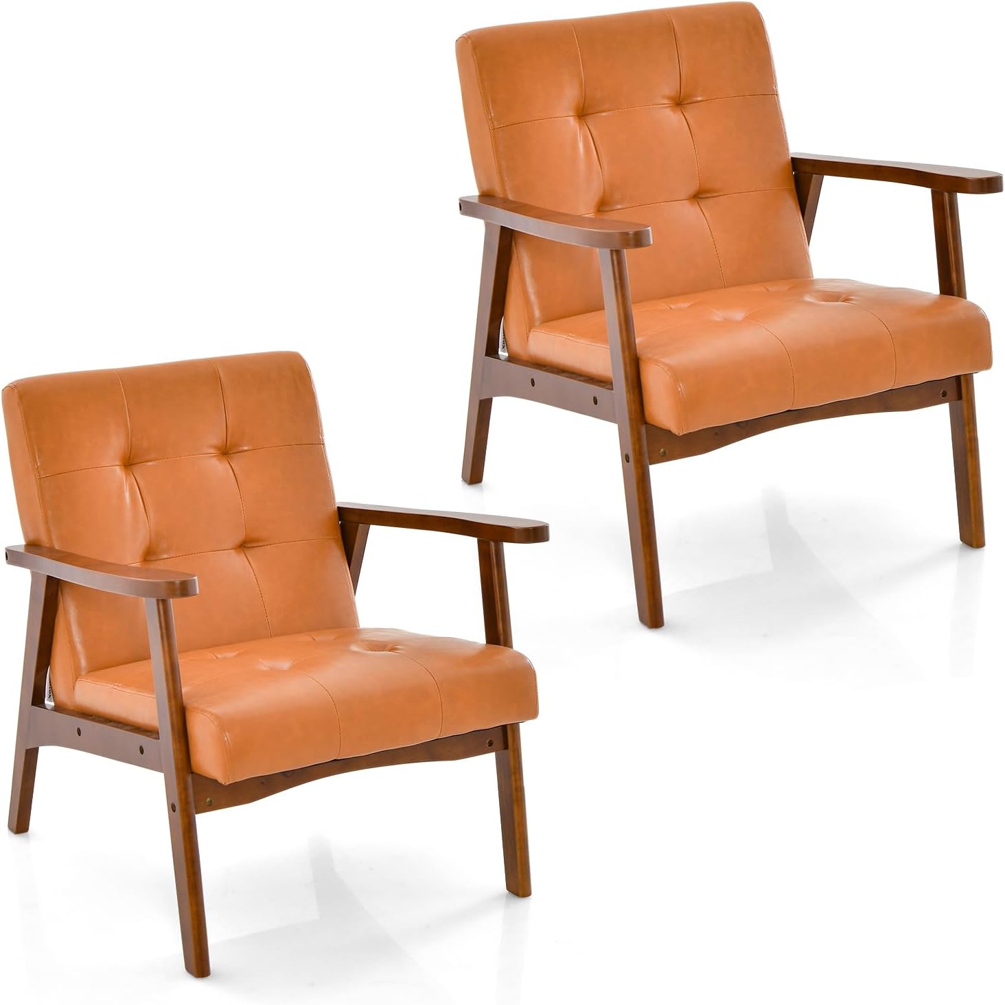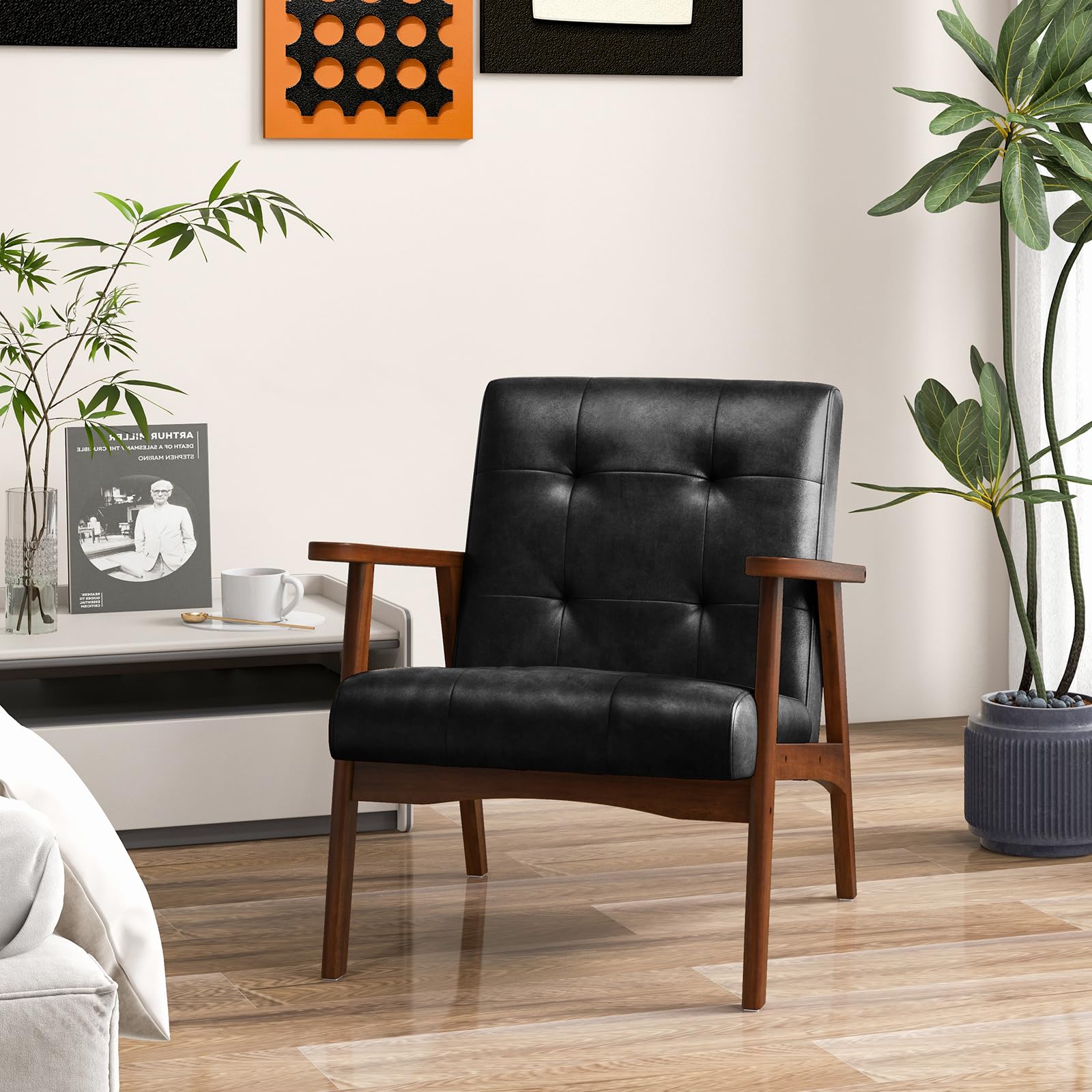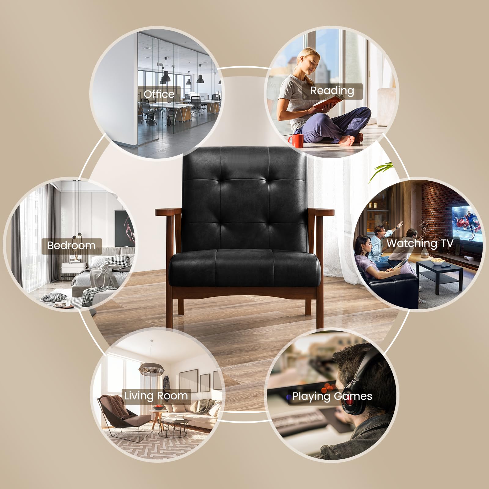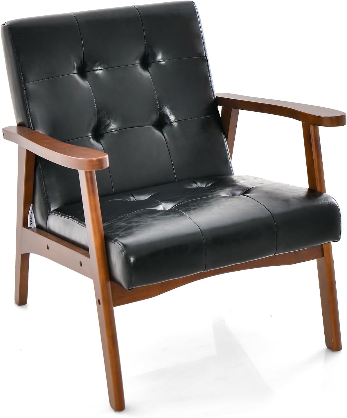 - [Simple Installation & Maintenance]: Coming with detailed and illustrated instruction, this mid-century modern armchair is easy to put together. More importantly, the water & stain resistant leather cover makes daily maintenance easier. You can just wipe the surface with a clean rag to save time and energy.