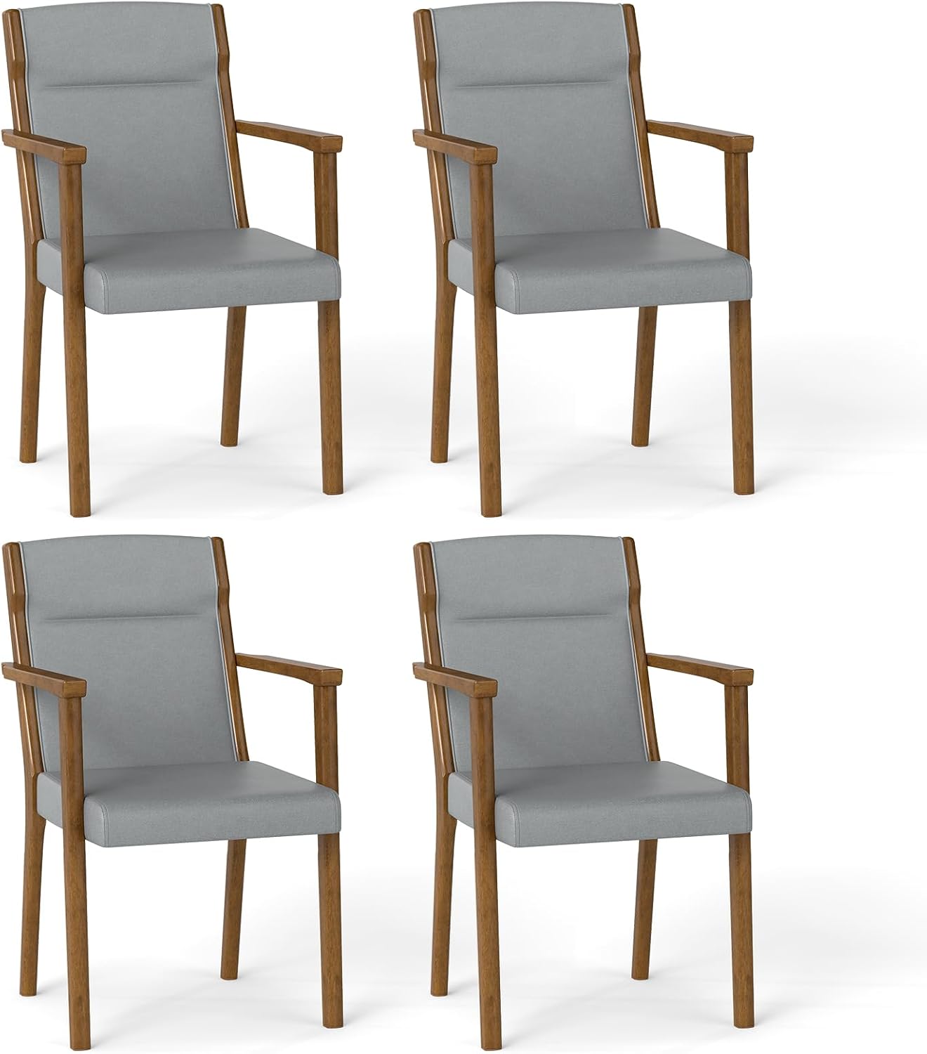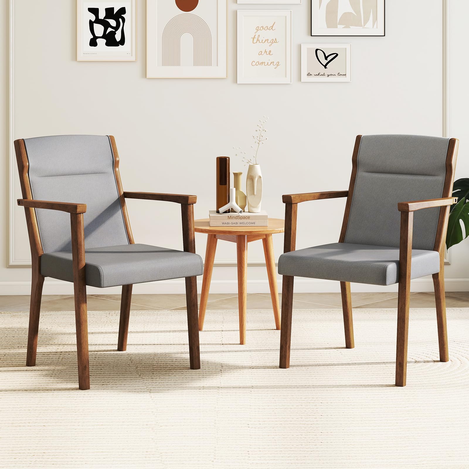 Each dining chair in this set features comfy armrests and an ergonomic high-back support designed to cradle your whole body. Upholstered with high-density foam, the armchairs offer a cozy seating experience with added headrests for extra comfort. Built to last, the premium rubber wood frame ensures stability. Versatile and stylish, these chairs complement any room in your home, from the dining room to the bedroom, adding a touch of sophistication to your space.