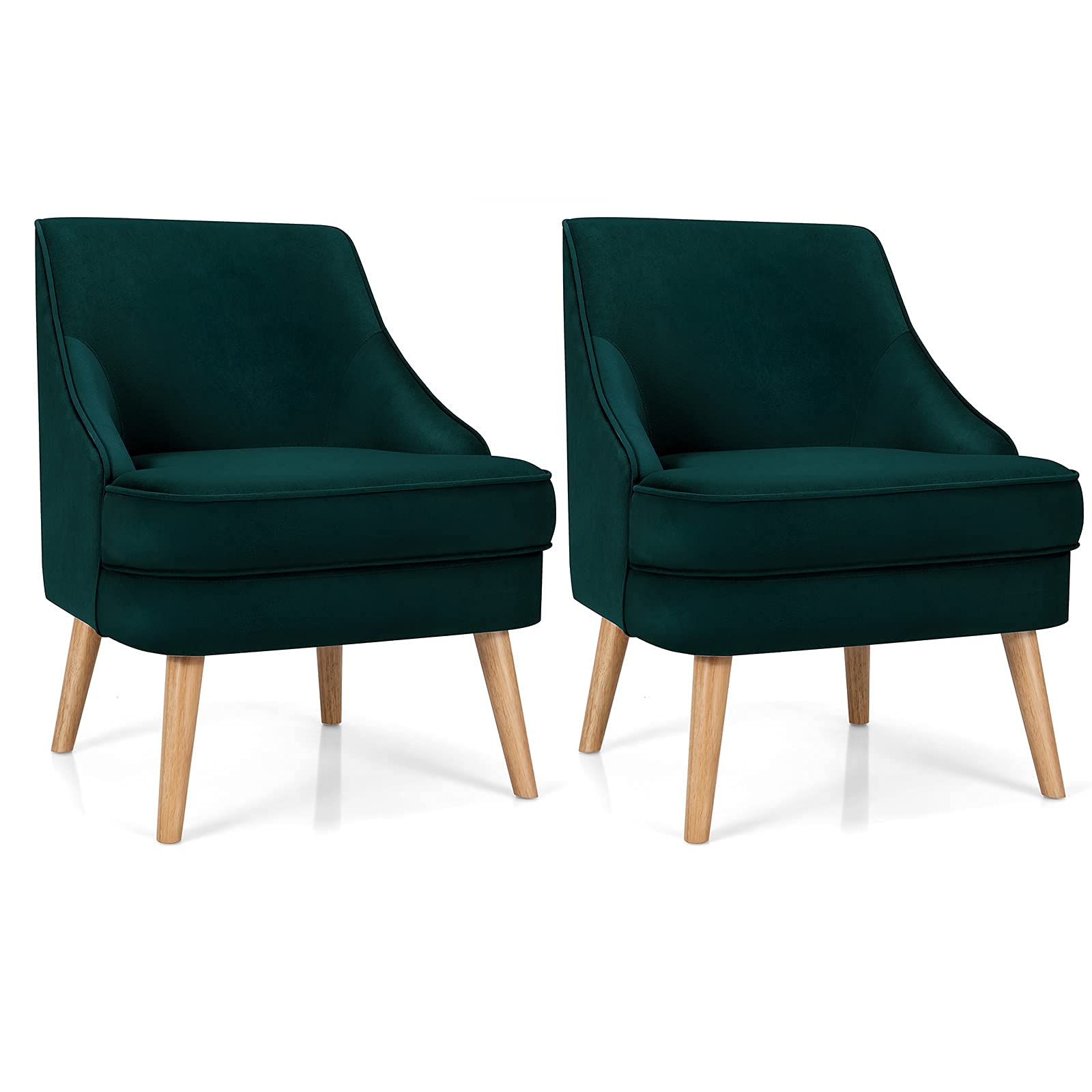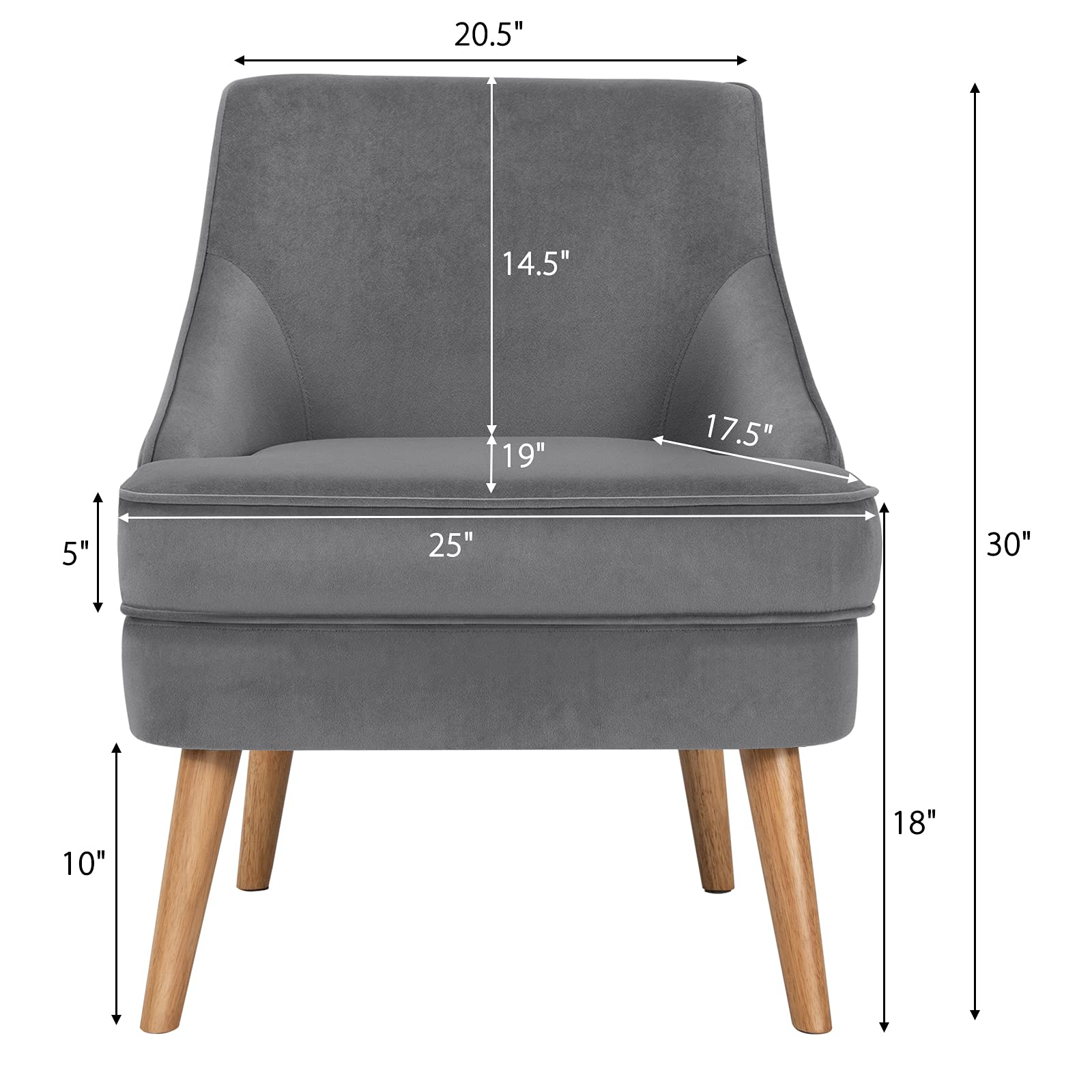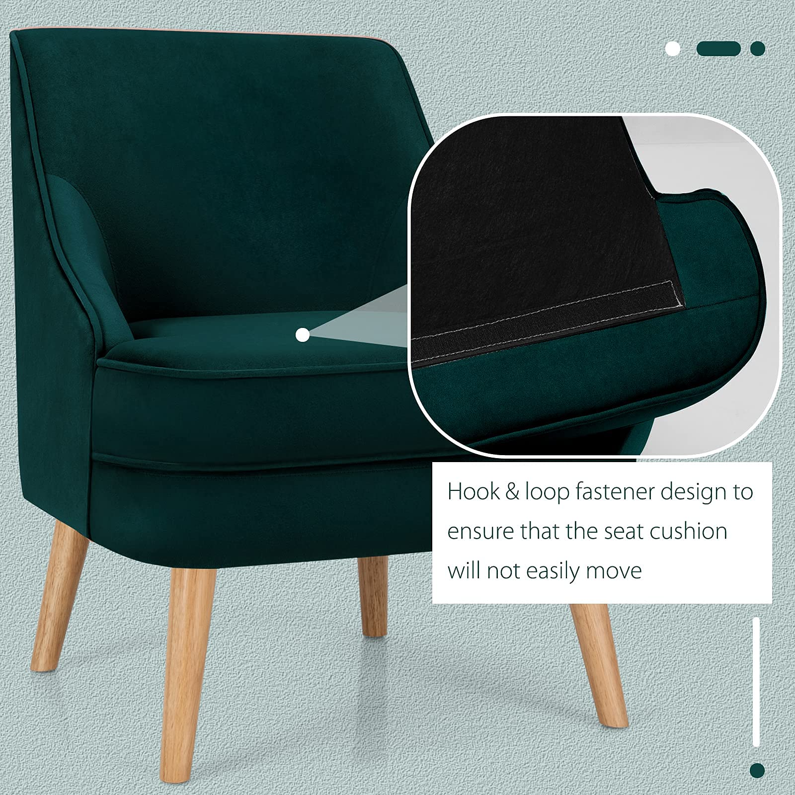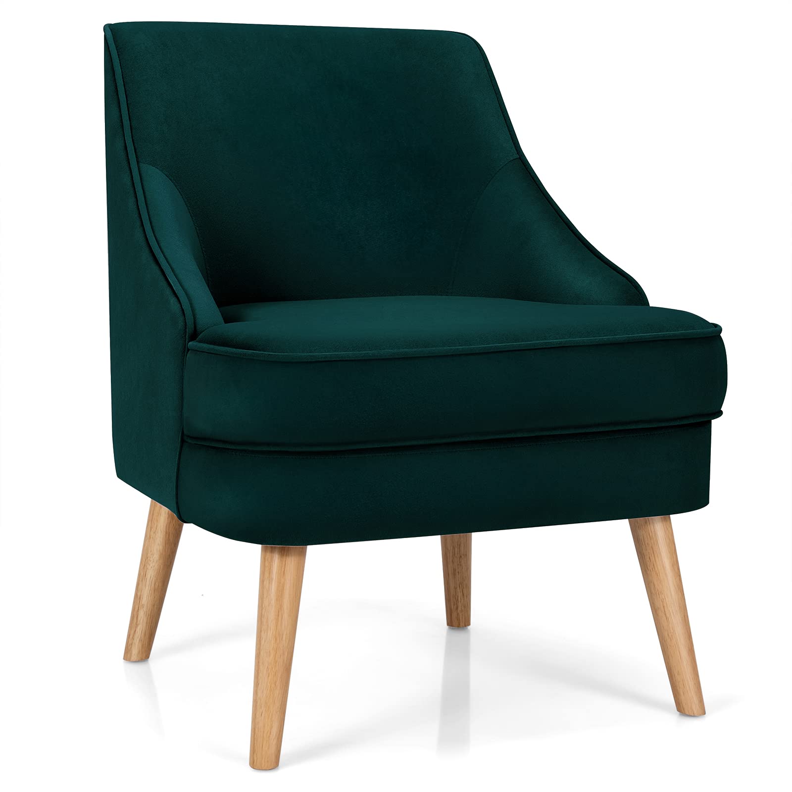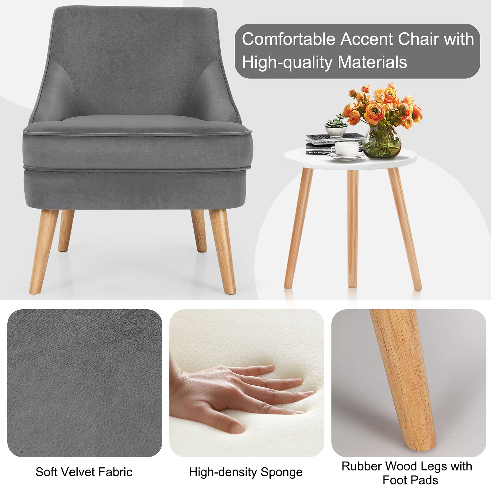 Constructed with pine wood frame and rubber wood legs, our single sofa chair is durable and stable with strong weight capacity of 265lbs. Besides, non-slip pads protect the floor from scratching. With high-quality velvet cover, our club chair has beautiful appearance and soft touch. Ergonomic backrest and thickened seat cushion offer you ultimate comfort. In addition, modern and elegant appearance enables you to place it in your living room, bedroom and dining room. You can use it as a meeting chair or a dining chair according to your different needs. Thus, you can freely enjoy your leisure time wherever you like. Additionally, with detailed instruction, it is easy to assemble and maintain.