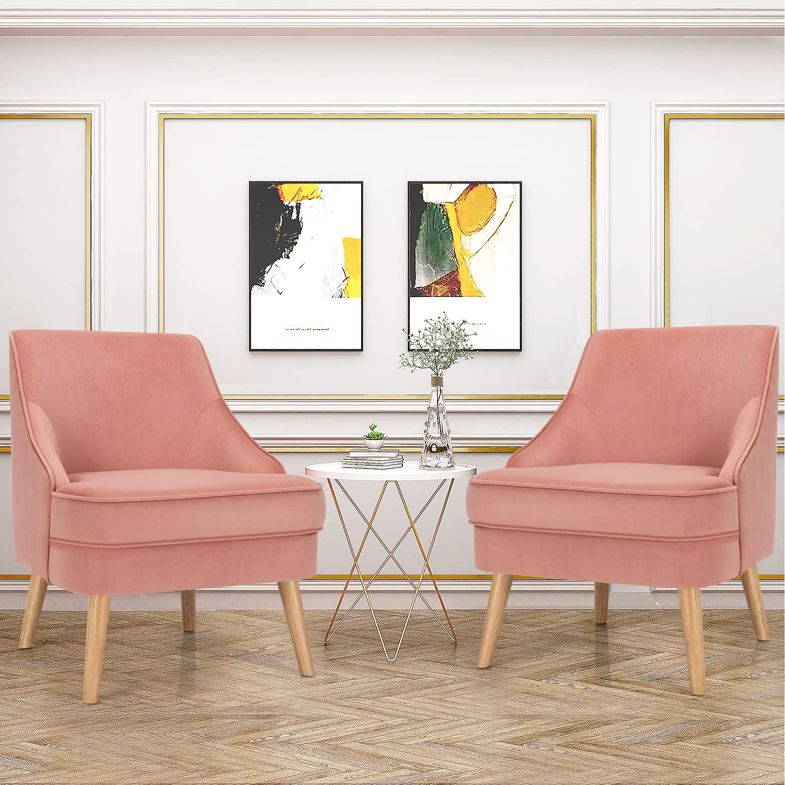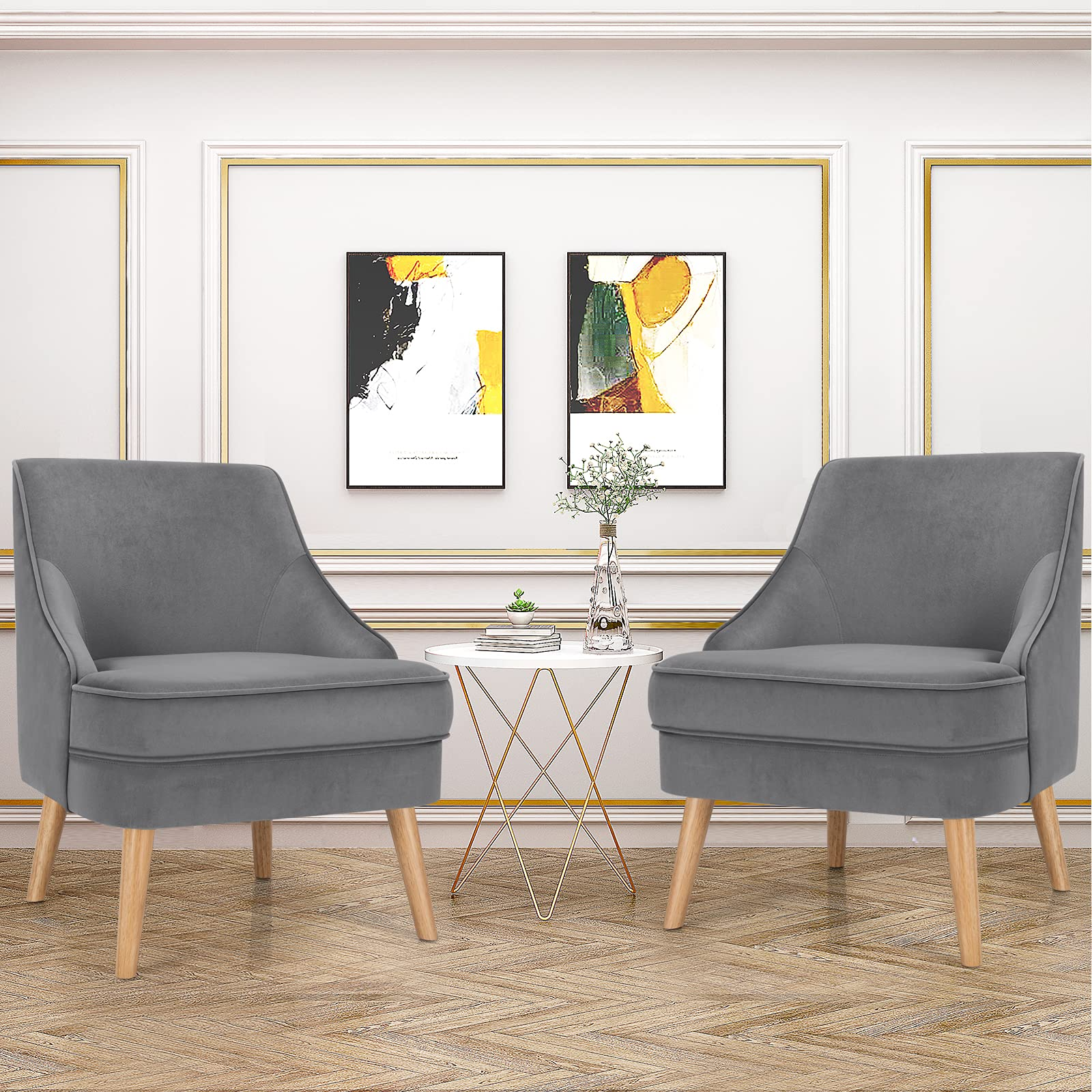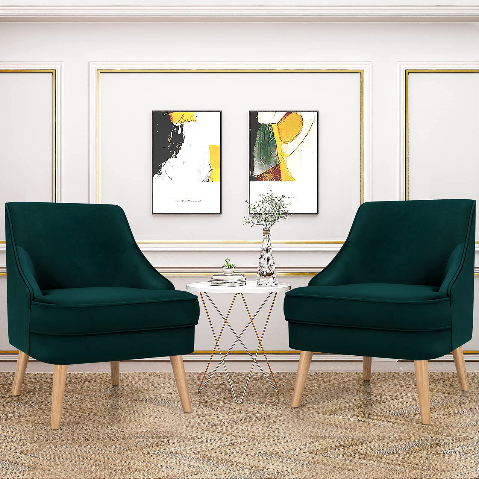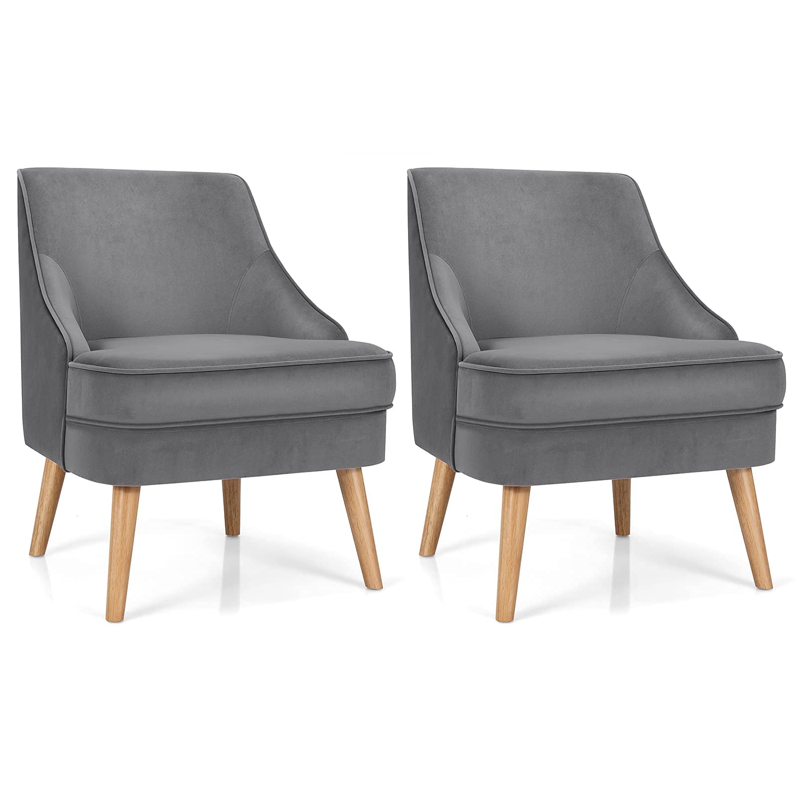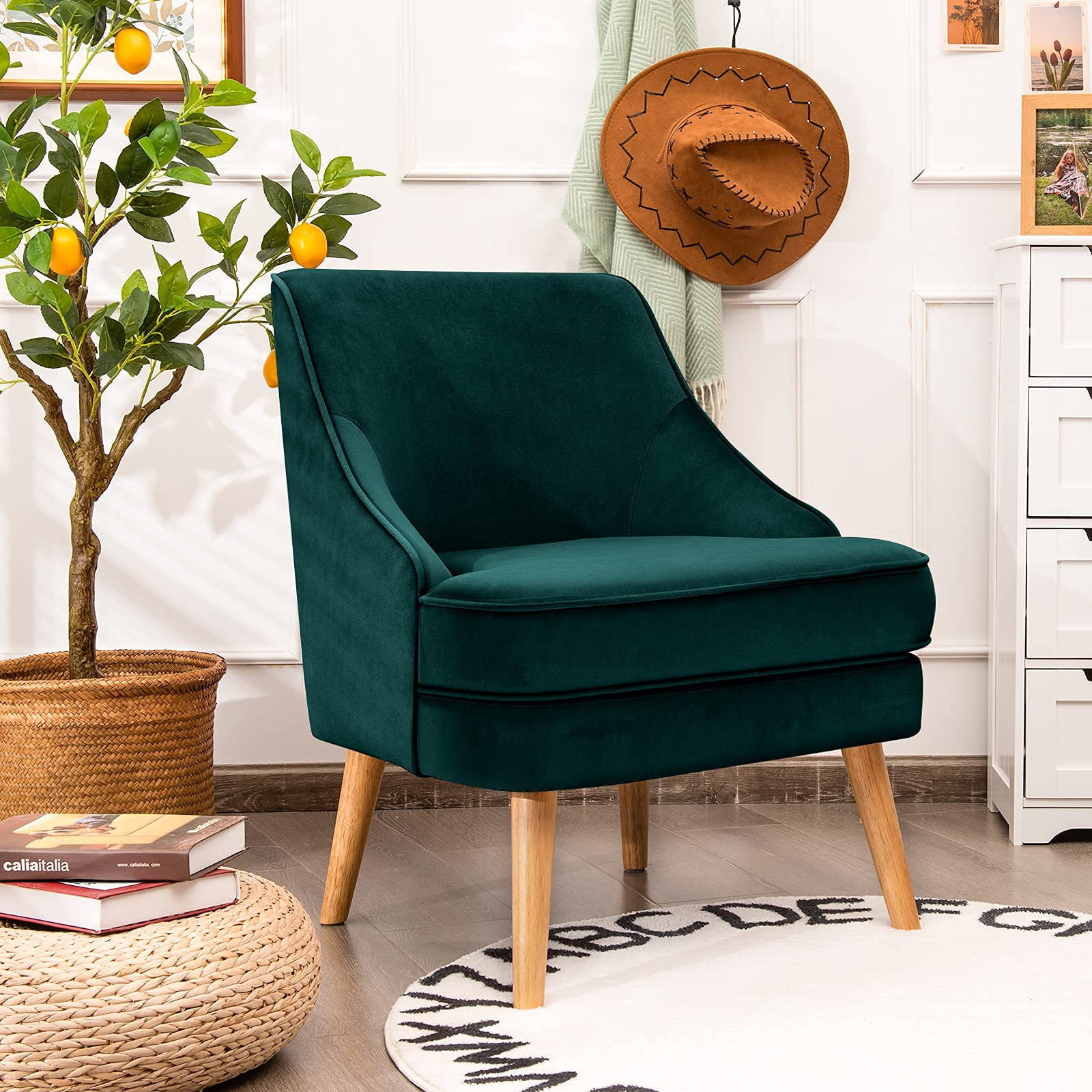 Constructed with pine wood frame and rubber wood legs, our single sofa chair is durable and stable with strong weight capacity of 265lbs. Besides, non-slip pads protect the floor from scratching. With high-quality velvet cover, our club chair has beautiful appearance and soft touch. Ergonomic backrest and thickened seat cushion offer you ultimate comfort. In addition, modern and elegant appearance enables you to place it in your living room, bedroom and dining room. You can use it as a meeting chair or a dining chair according to your different needs. Thus, you can freely enjoy your leisure time wherever you like. Additionally, with detailed instruction, it is easy to assemble and maintain.