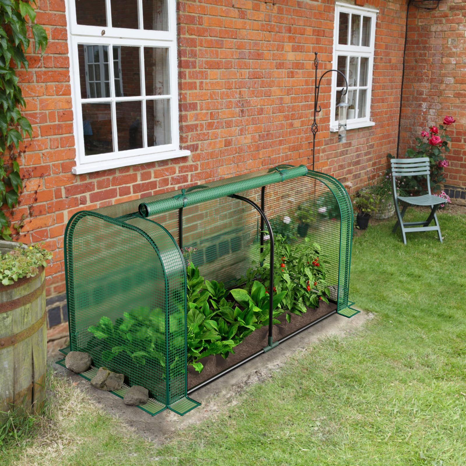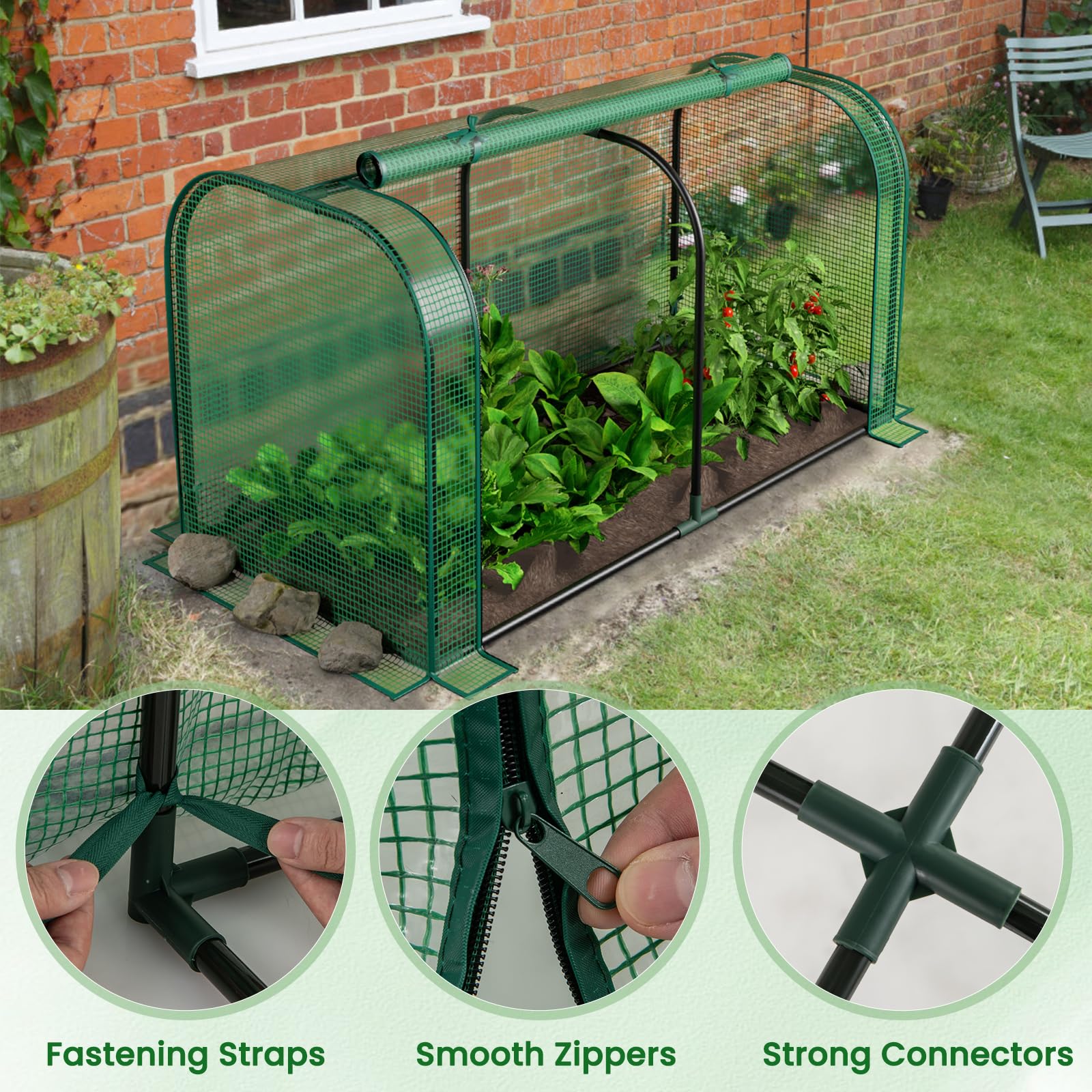 Features a large roll-up door with smooth zippers, promote ventilation, easy to water