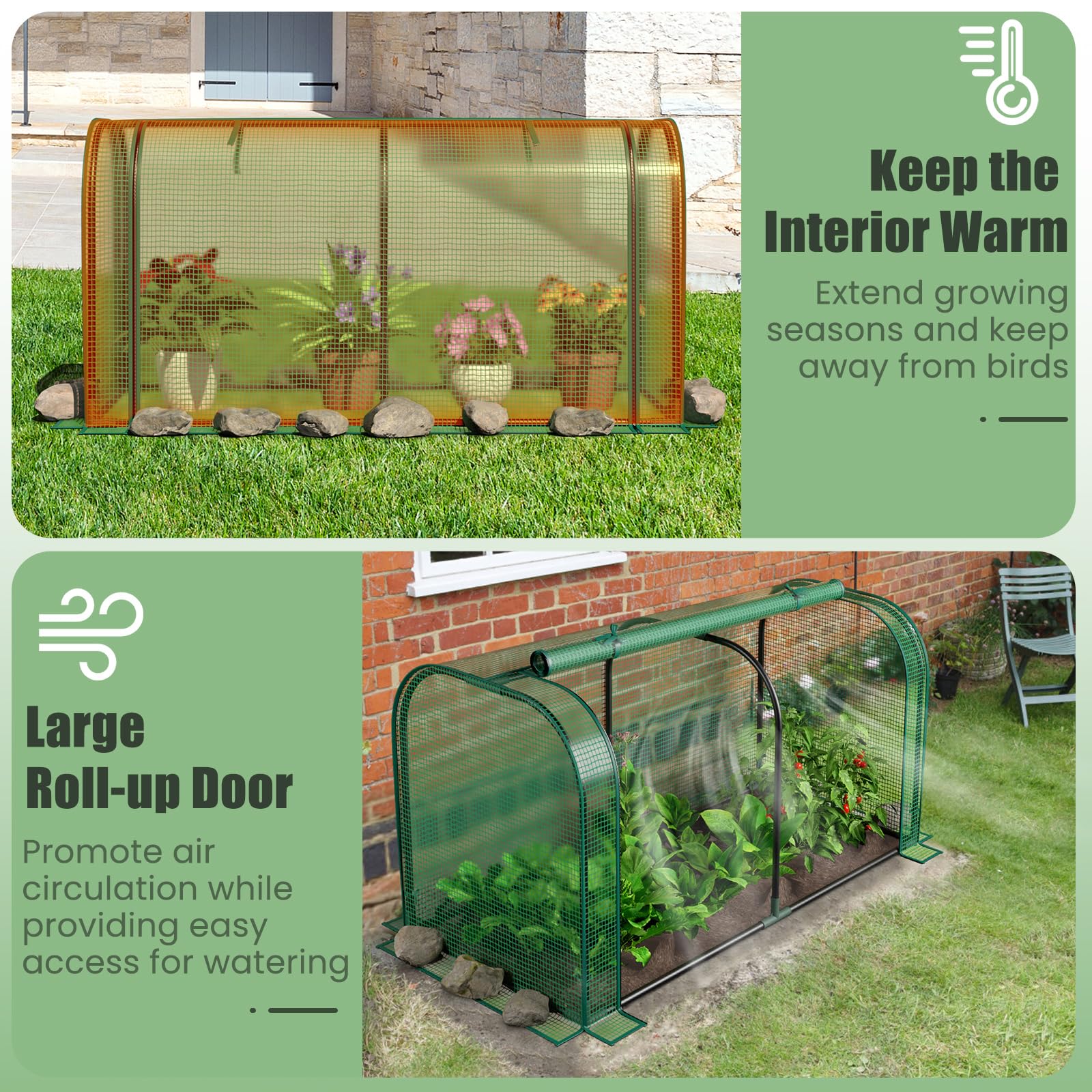 2-in-1 design: a mini greenhouse on the ground or a raised garden bed cover