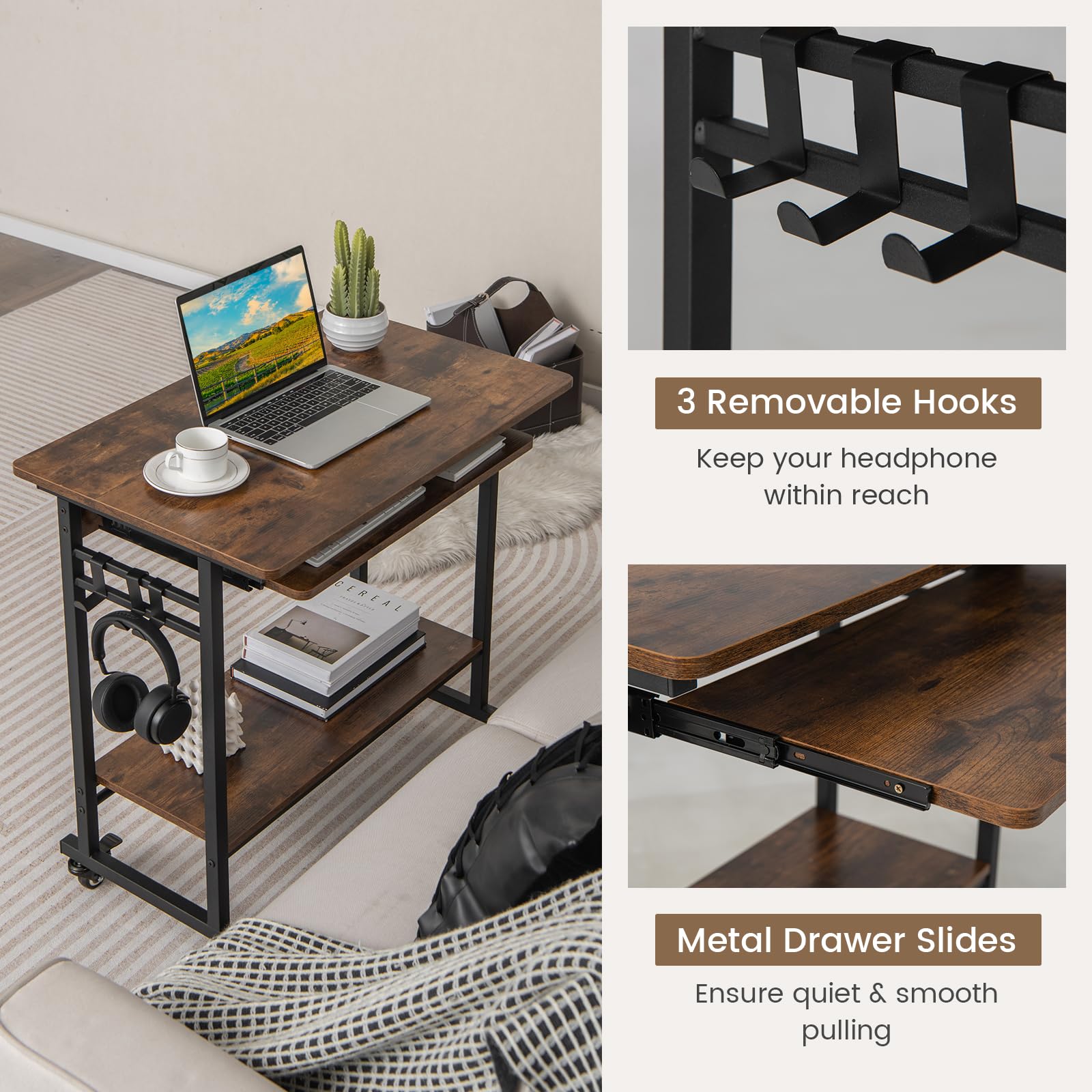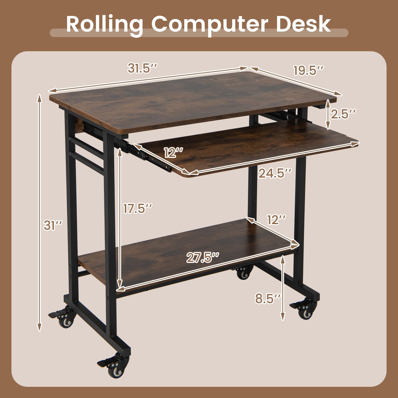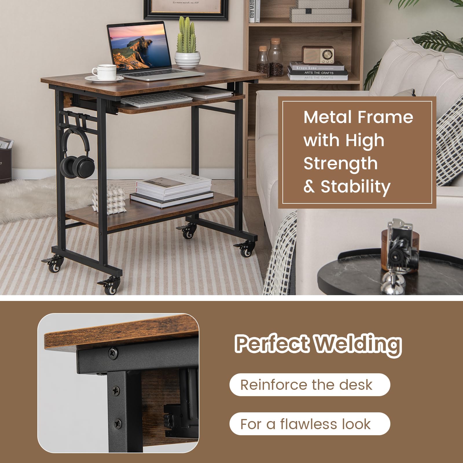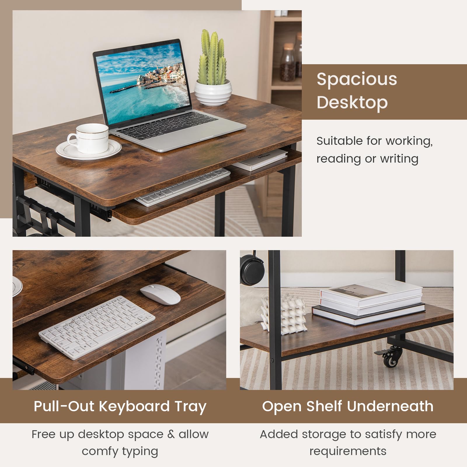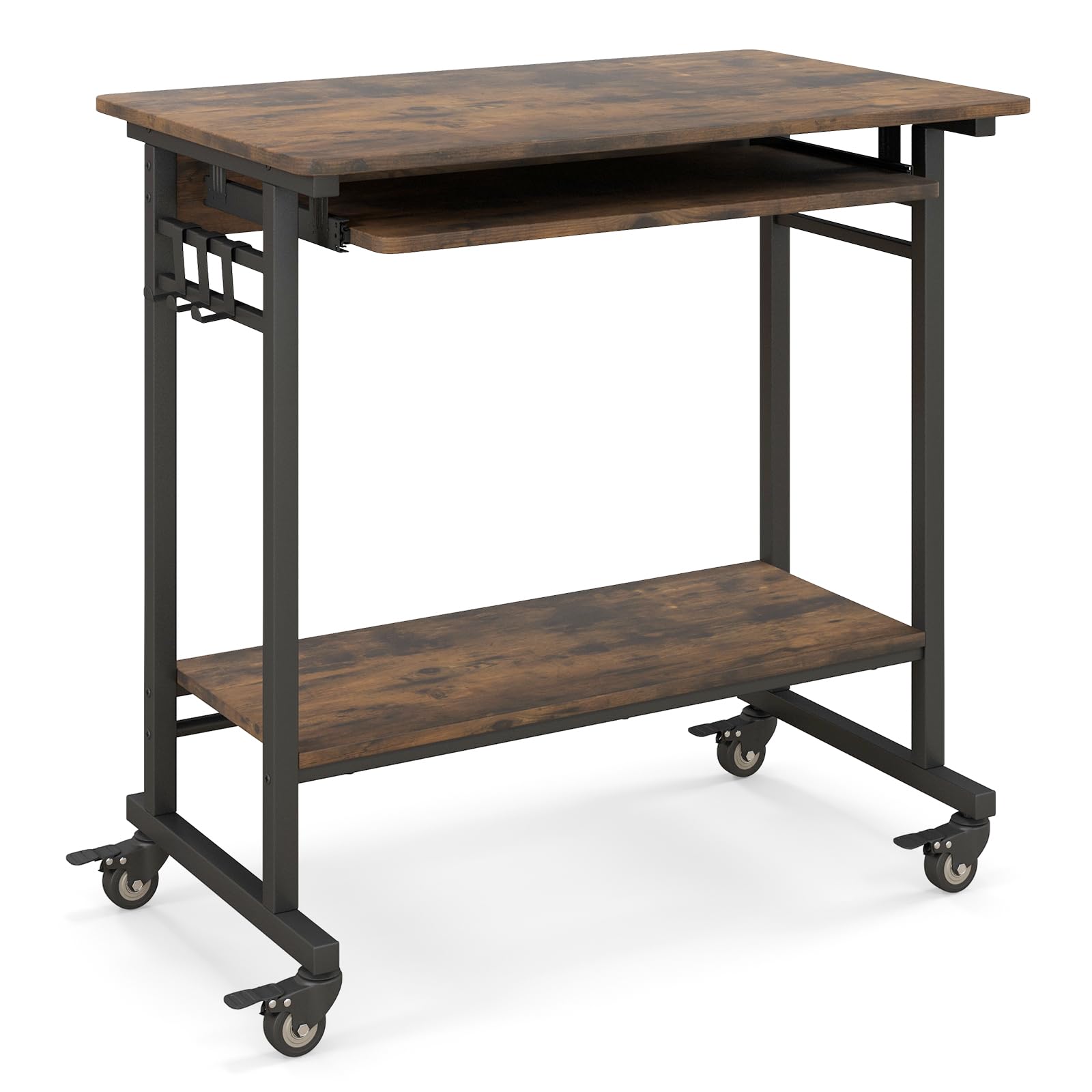 Introducing the ultimate companion of productivity - the rolling computer desk! Get ready for the efficient workflow, as the home office desk offers roomy workspace from a wide desktop & a keyboard tray. But that’s not all! It also has an open shelf & 3 hanging hooks for added storage. With lockable universal wheels, the computer cart for small space can accompany you wherever inspiration strikes in the house. Its metal frame boasts perfect welding & offers a large desktop load capacity of 160 lbs, which ensures high strength & durability. Embark on a transformative journey of productivity today!