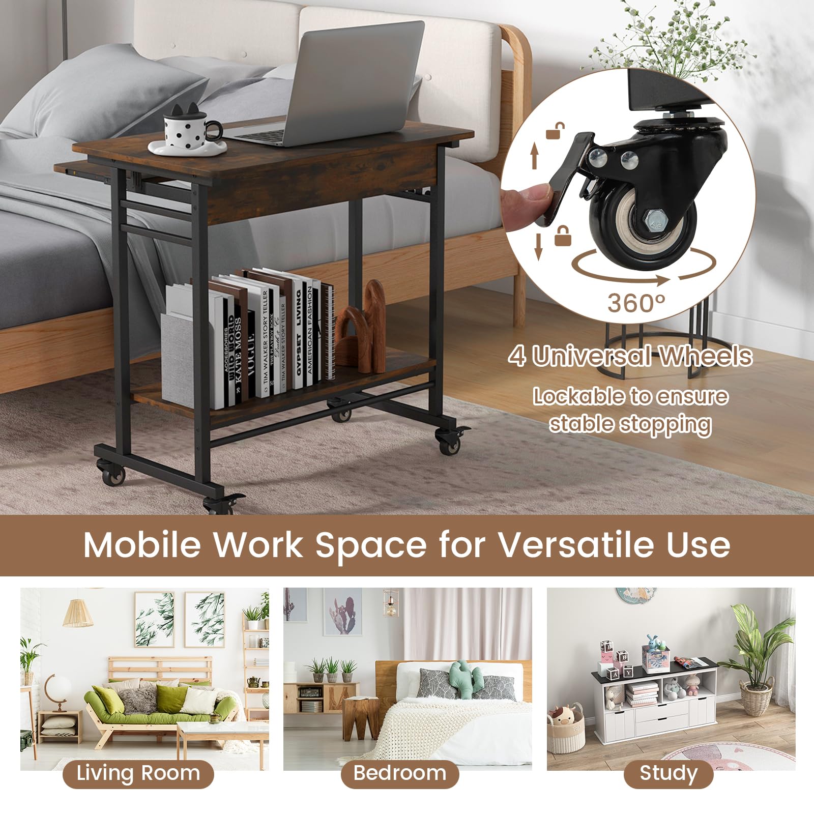 - Easy Moving & Space Saver: 4 360° swivel wheels are specially designed with brakes to achieve effortless movement & keep the desk secure when stopped. As needed, the writing desk can be moved to any room, even a small corner to save space.