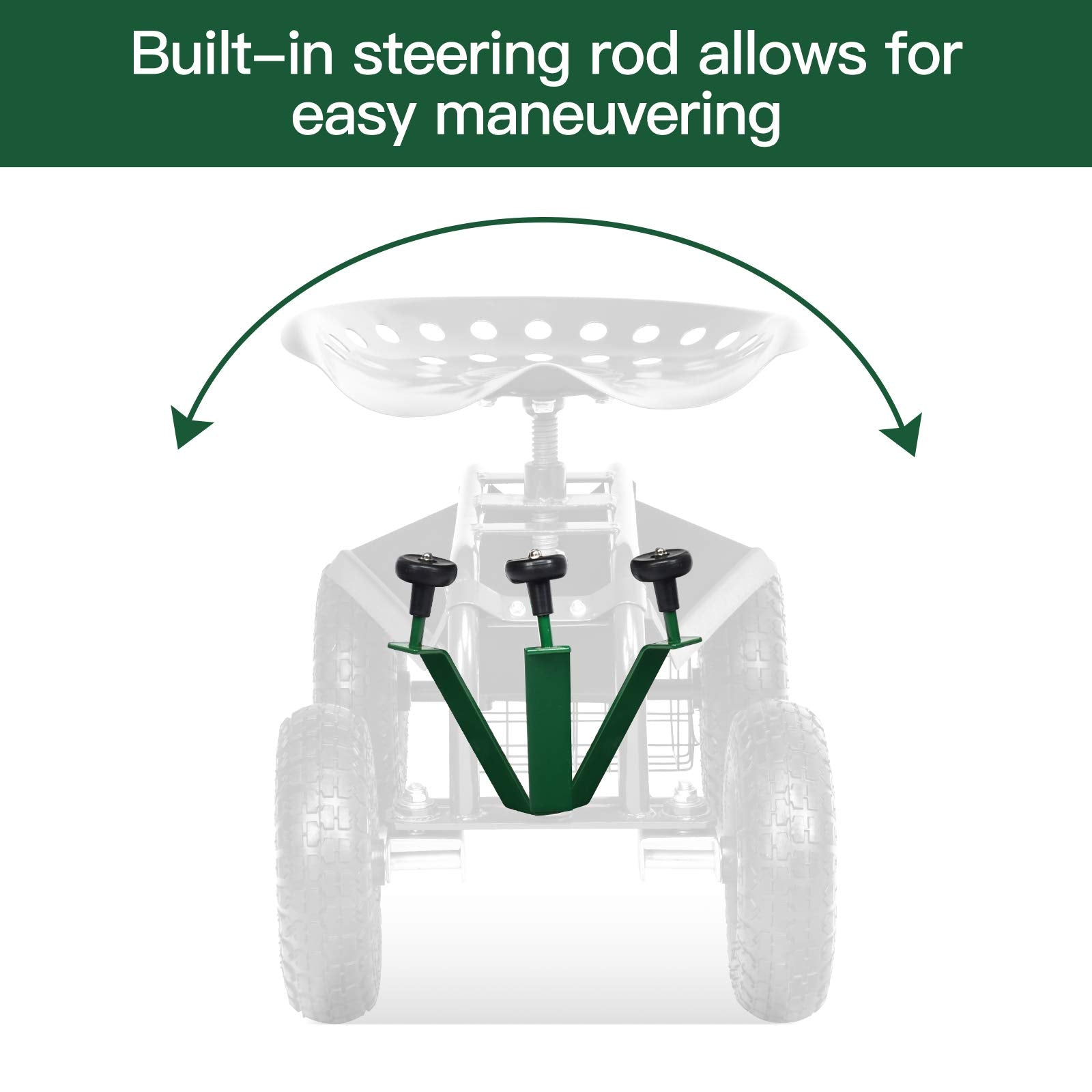 • 360 Degree Swivel Seat with Adjustable Height: The seat enables you to do gardening work sitting stably and reach different directions and heights.