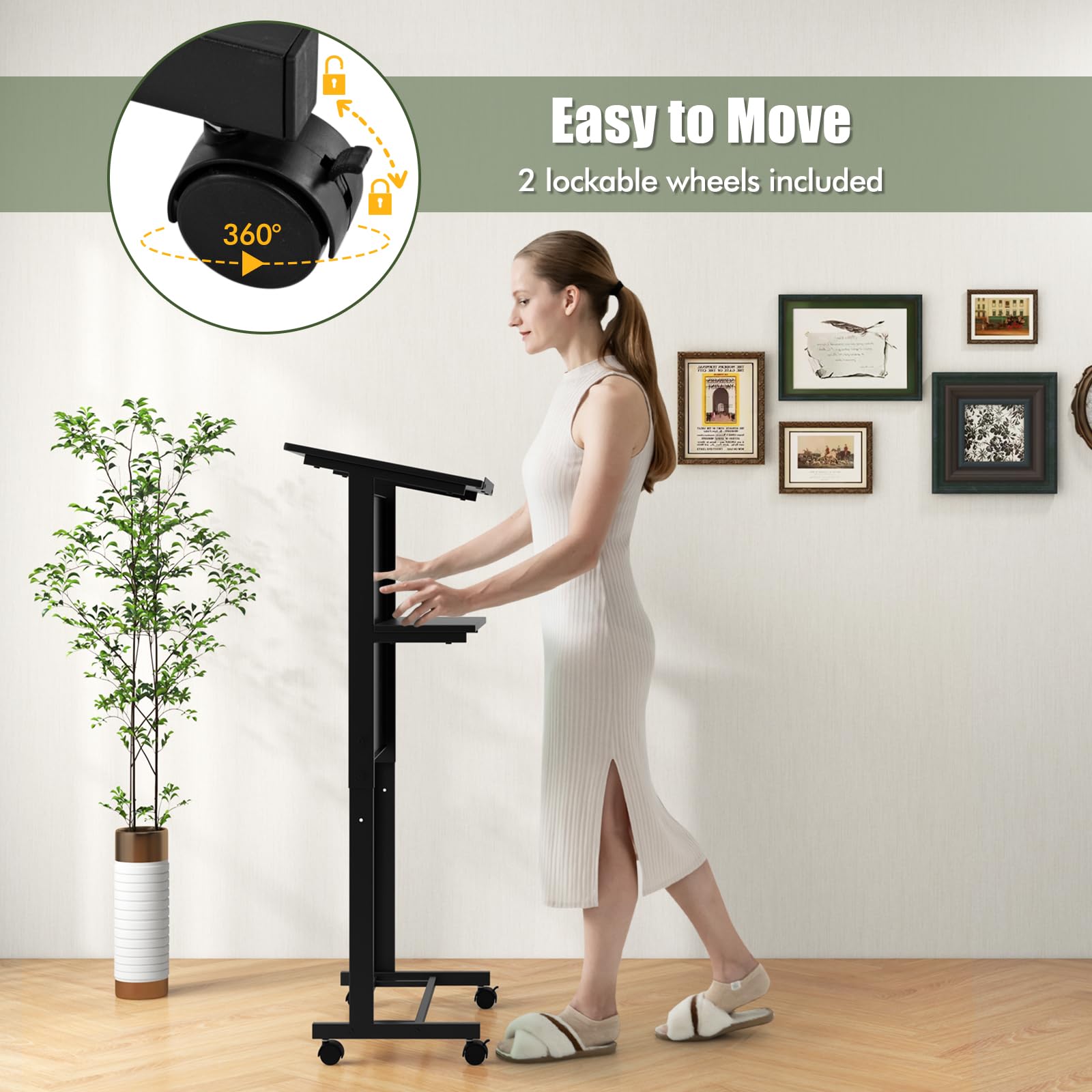 - [Mobility Meets Stability]: Equipped with four 360° rotatable wheels, the podium stand rolls smoothly to where you need it. Additionally, the 2 lockable wheels included offer stability, allowing you to lock the mobile lectern podium in place for a firm and steady base.