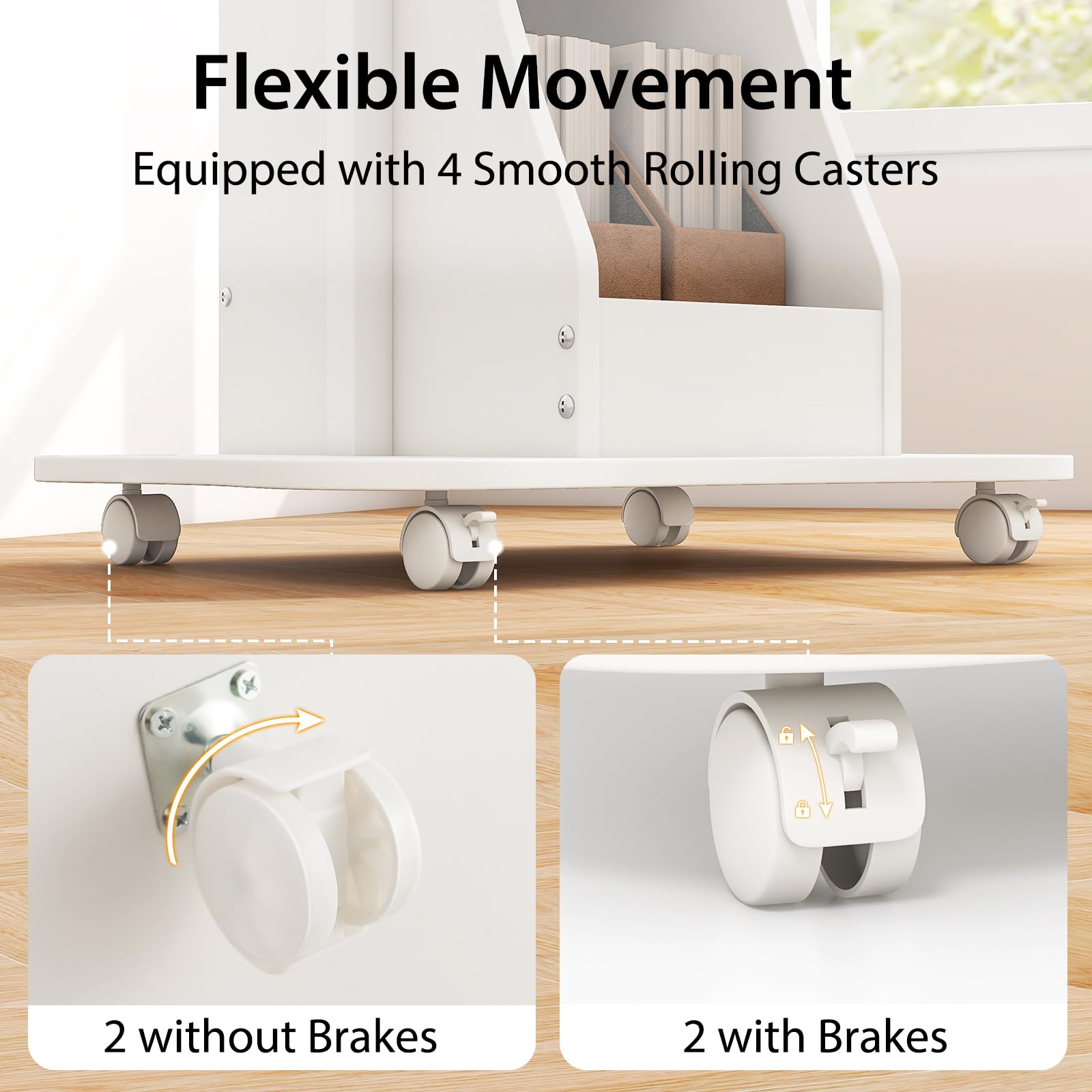 - Flexible Movement: Designed with convenience in mind, the rolling computer cart is equipped with 4 smooth-rolling casters that provide effortless mobility. Move it from room to room or lock 2 of the casters in place for stability during use.