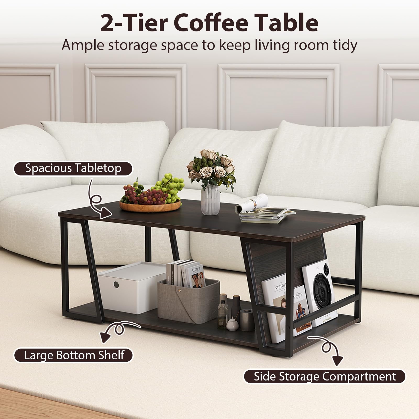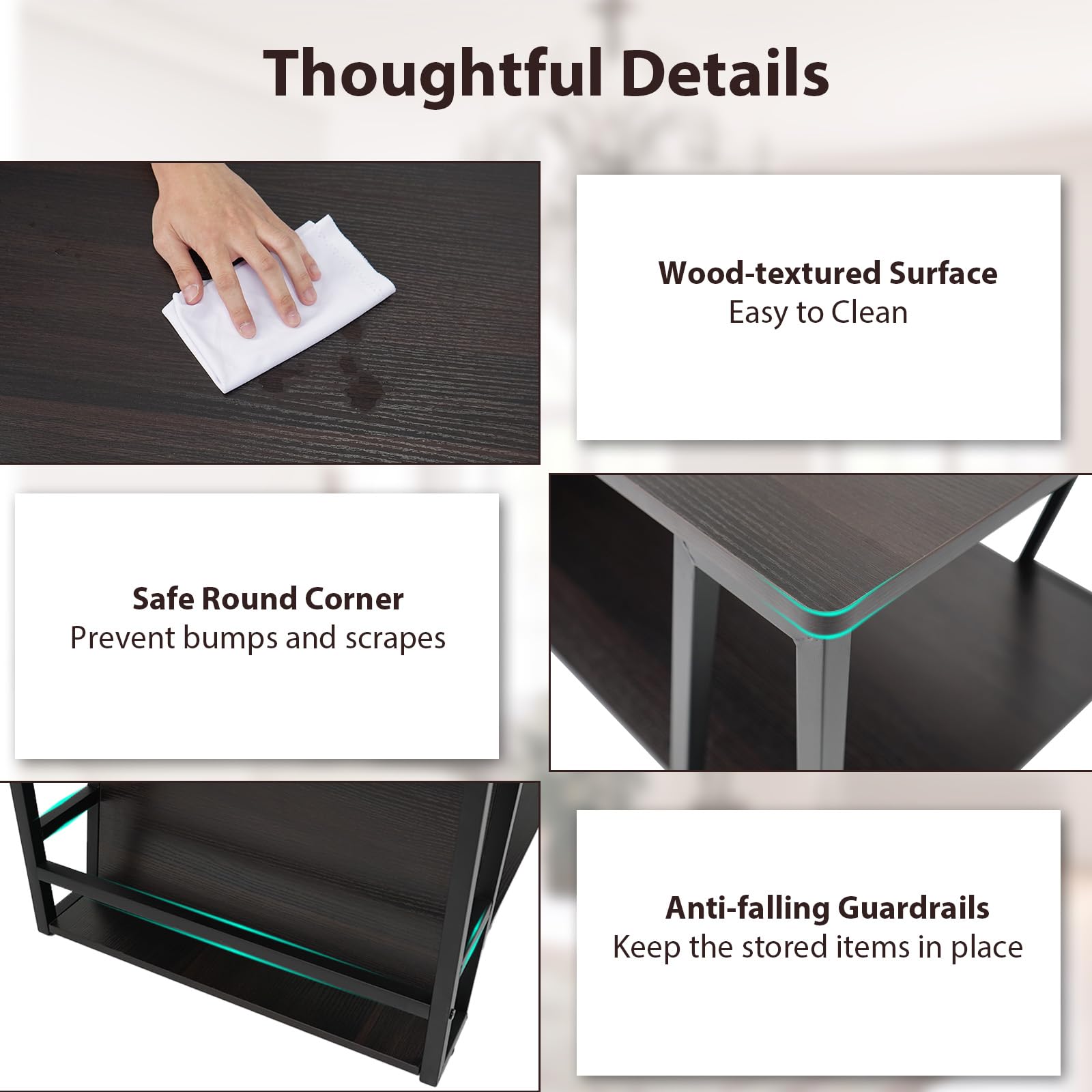 Turn your living space into a style powerhouse with this sleek, ultra-functional coffee table! Equipped with a robust metal frame and stylish wood-textured finish, it’s designed to support everything from your morning coffee ritual to late-night gaming marathons securely. Its ample storage, complete with an easy-access magazine compartment and extra shelf, tackles clutter effortlessly. Whether you’re using it as a laptop station or a dining table, its versatility shines through. Plus, non-slip foot pads keep your floor pristine. Perfect for both small and large rooms, this coffee table’s rounded corners and protective rails make it a worry-free choice for lively gatherings. Don’t just furnish your home, elevate it with this industrial chic centerpiece!