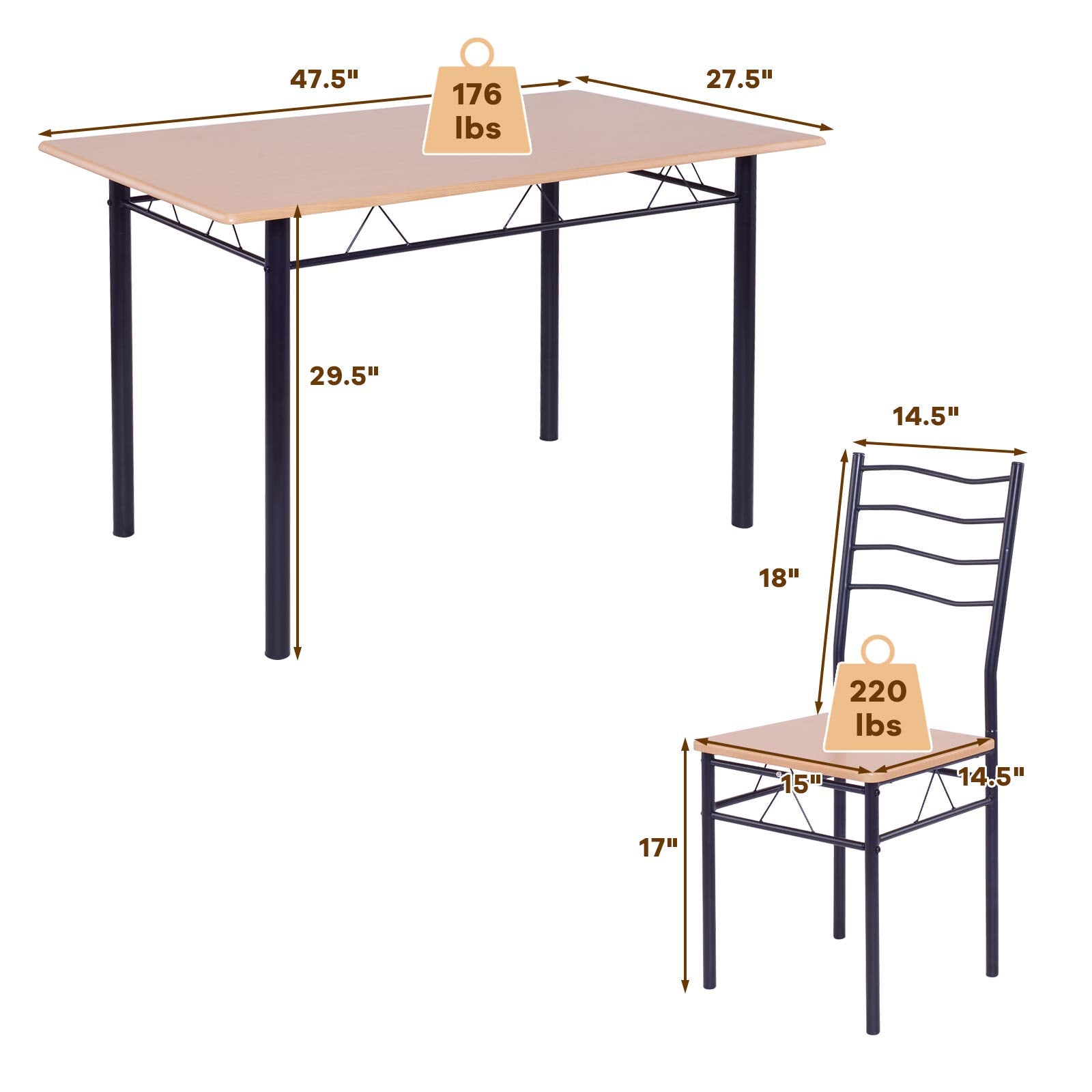 Package Includes: 1 x Table , 4 x Chairs, 1 x Assembly Instruction