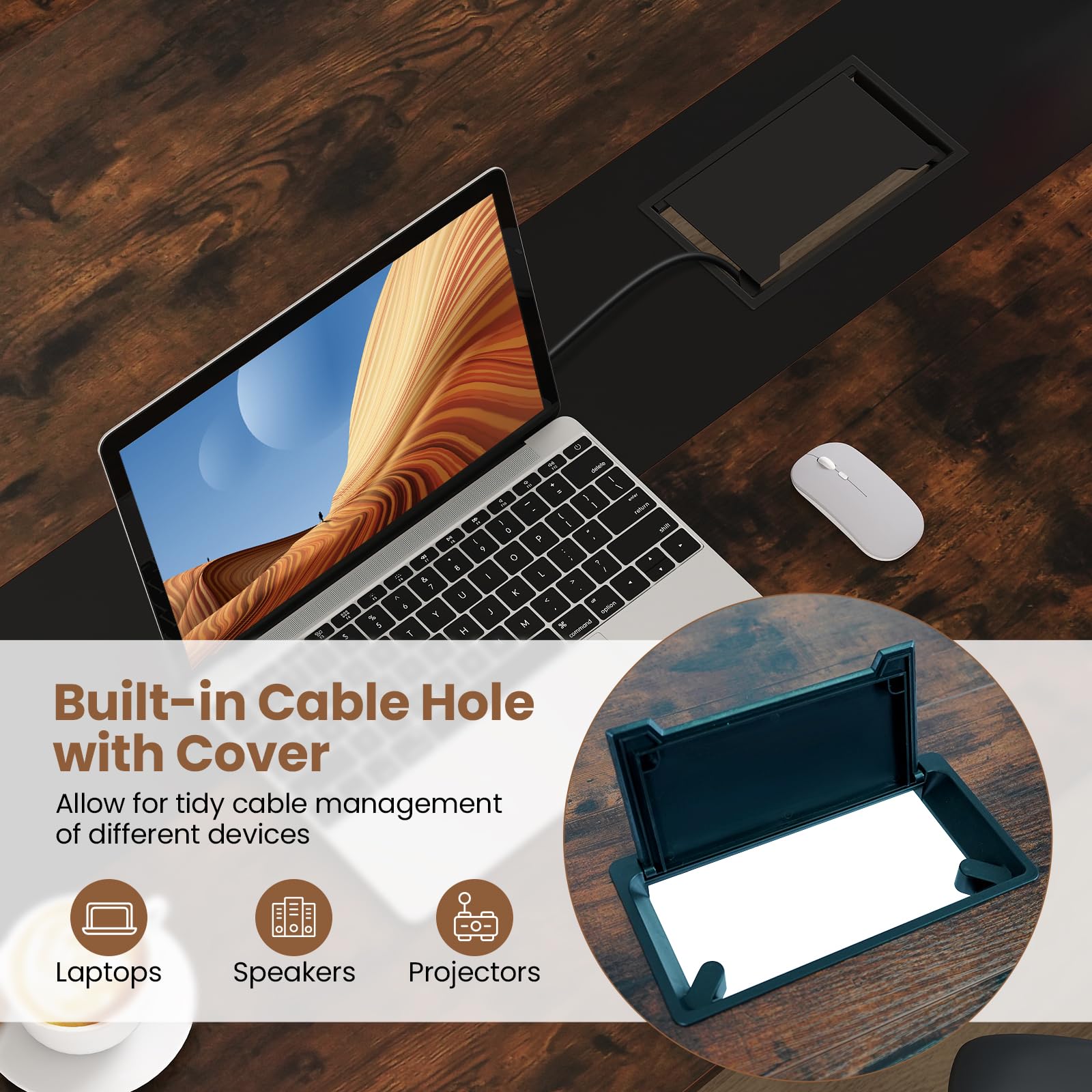 Maximize your workspace dynamics with the ultimate conference table engineered for innovation and collaboration. Bragging enough space to accommodate 8-10 dynamic minds, this 6 ft x 3 ft table is designed not only for brainstorming but for elevating the aesthetics of any professional setting with its chic rustic wood grain finish. Forget the mess of tangled cables - our savvy design includes a sleek, hidden cable management feature that will allow for tidy cable management of different devices. Constructed with a sturdy heavy-duty metal frame and capable of supporting robust discussions, this conference room table ensures every meeting is grounded in confidence and stability. Versatile enough to adapt to any professional environment, and with a breeze-easy maintenance waterproof surface, it’s truly where functionality meets sophistication. Don’t miss out - transform your meeting room into a haven of efficiency and style!