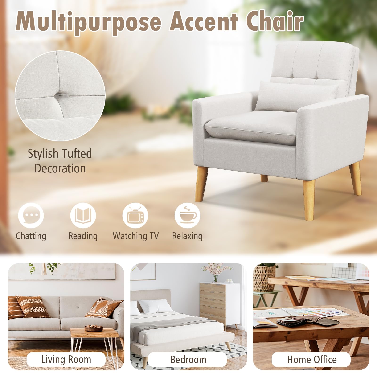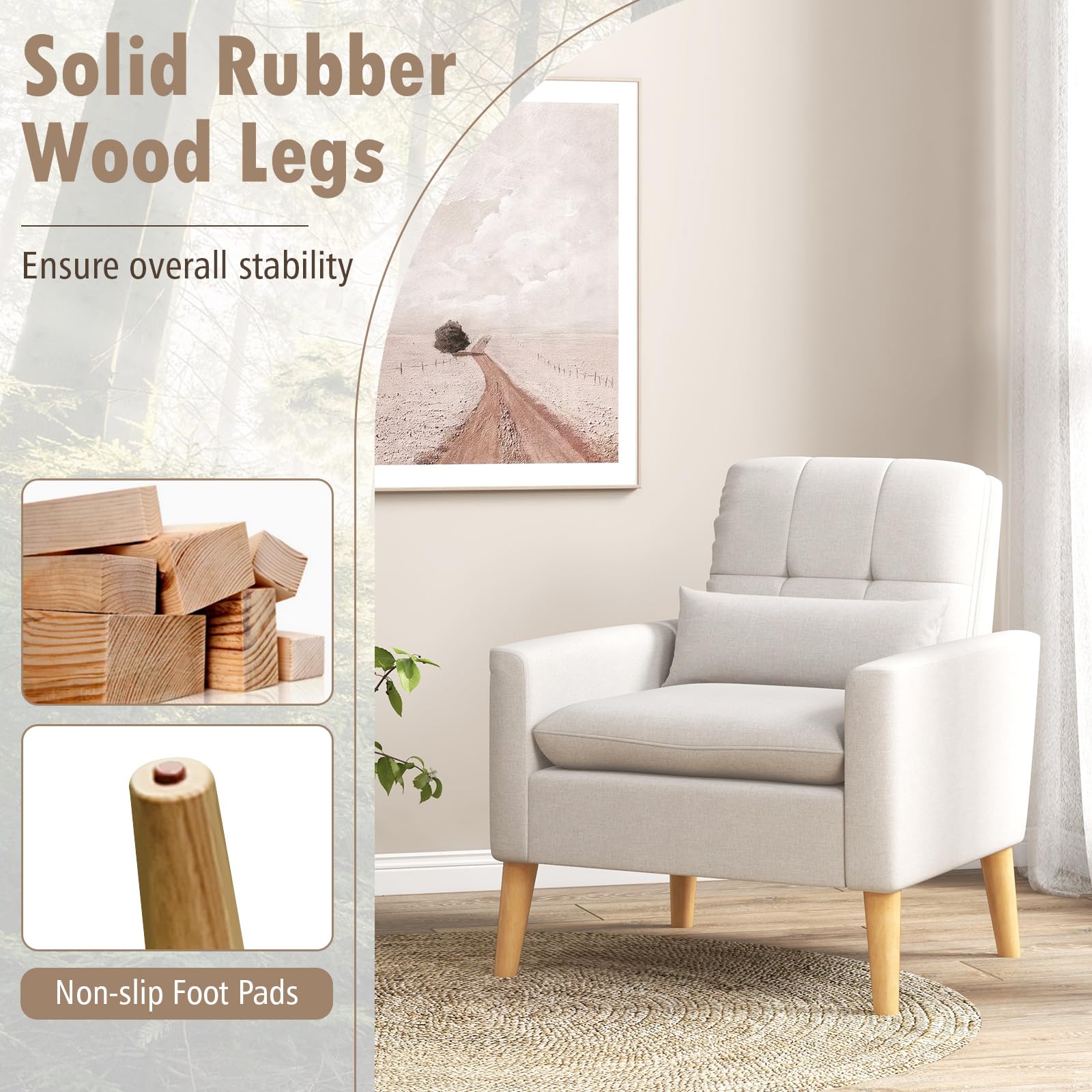 - [Aesthetic & Versatile Armchair]: Featuring a mid-century modern style, this fabric sofa chair seamlessly blends into your living room, bedroom, or home office. And the stylish tufted decoration adds a touch of elegance. Whether for chatting, reading, watching TV, relaxing, or other activities, it is a perfect choice.
