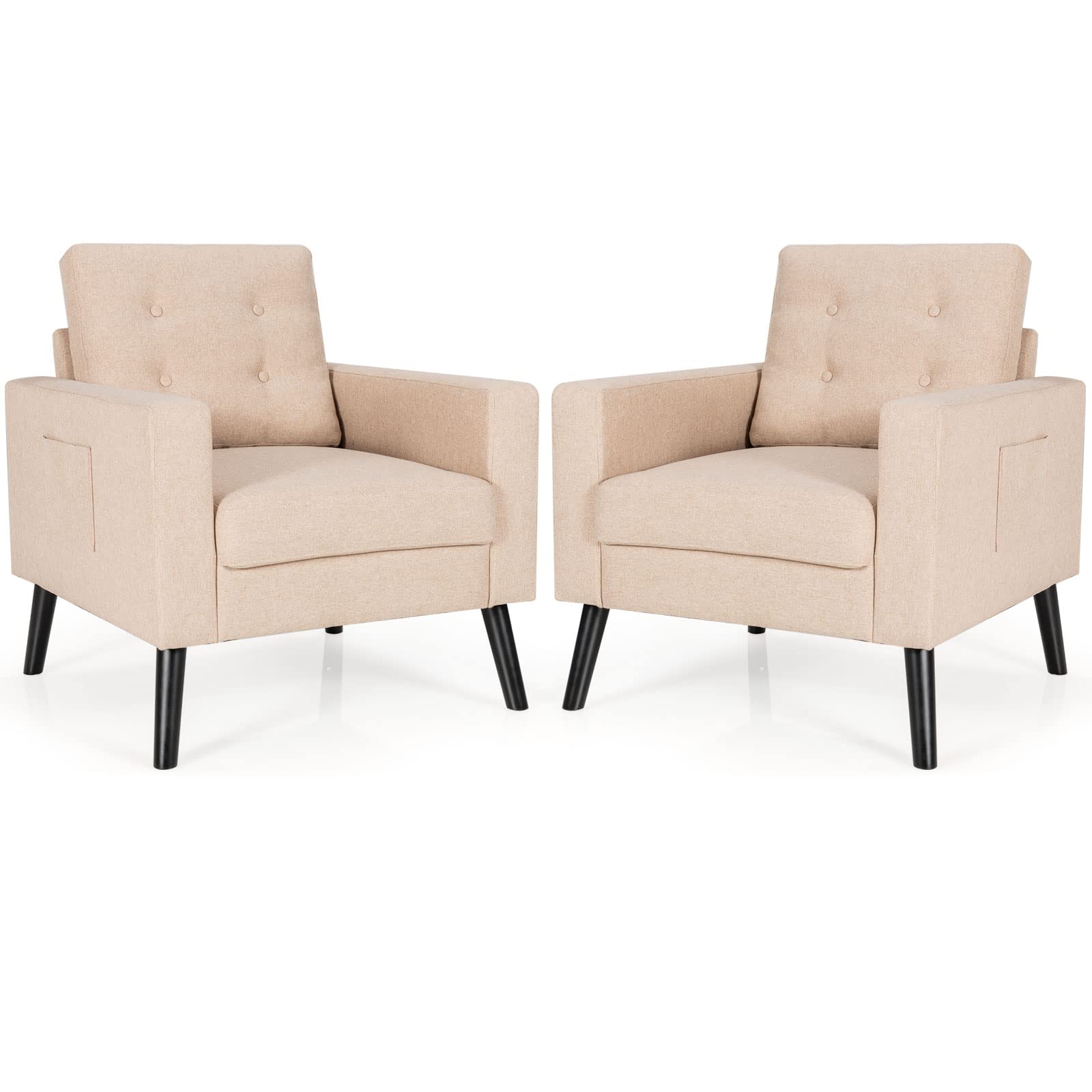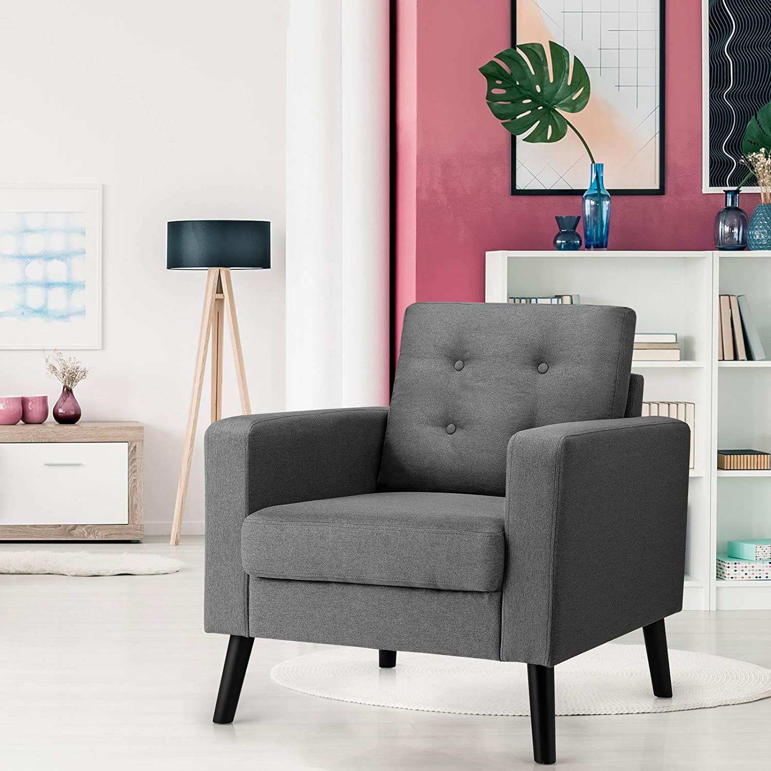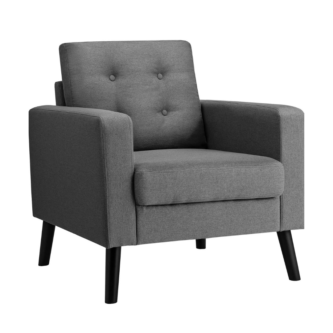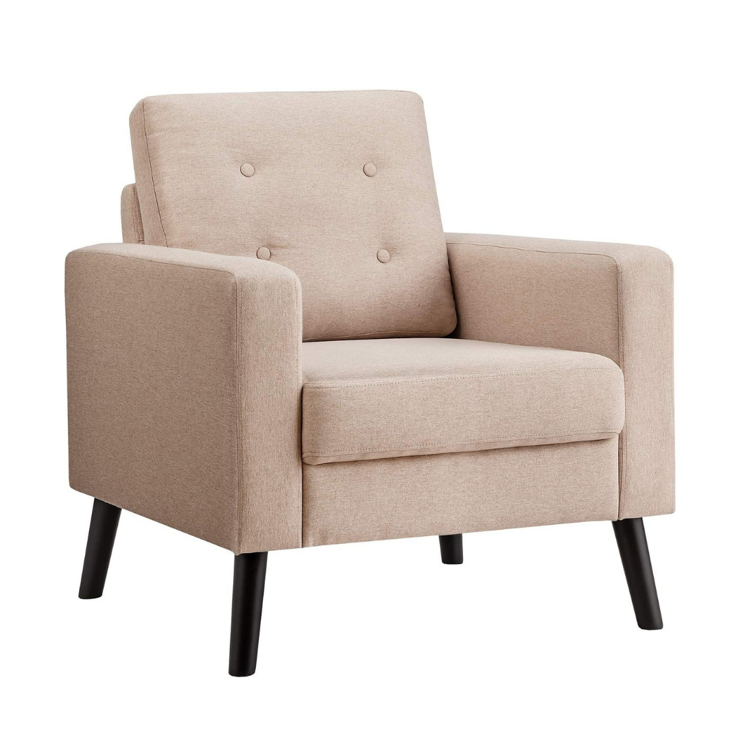Supported by solid rubber wood legs, the armchair ensures good stability and strong bearing strength. The wide backrest and thick seat cushion are padded with a highly elastic sponge for optimal softness. Moreover, the fine linen cover is breathable and skin-friendly to offer you a comfortable sitting experience. An ergonomic armrest allows you to fully relax your arms. What's more, the button-tufted back brings an elegant and noble look to your home.