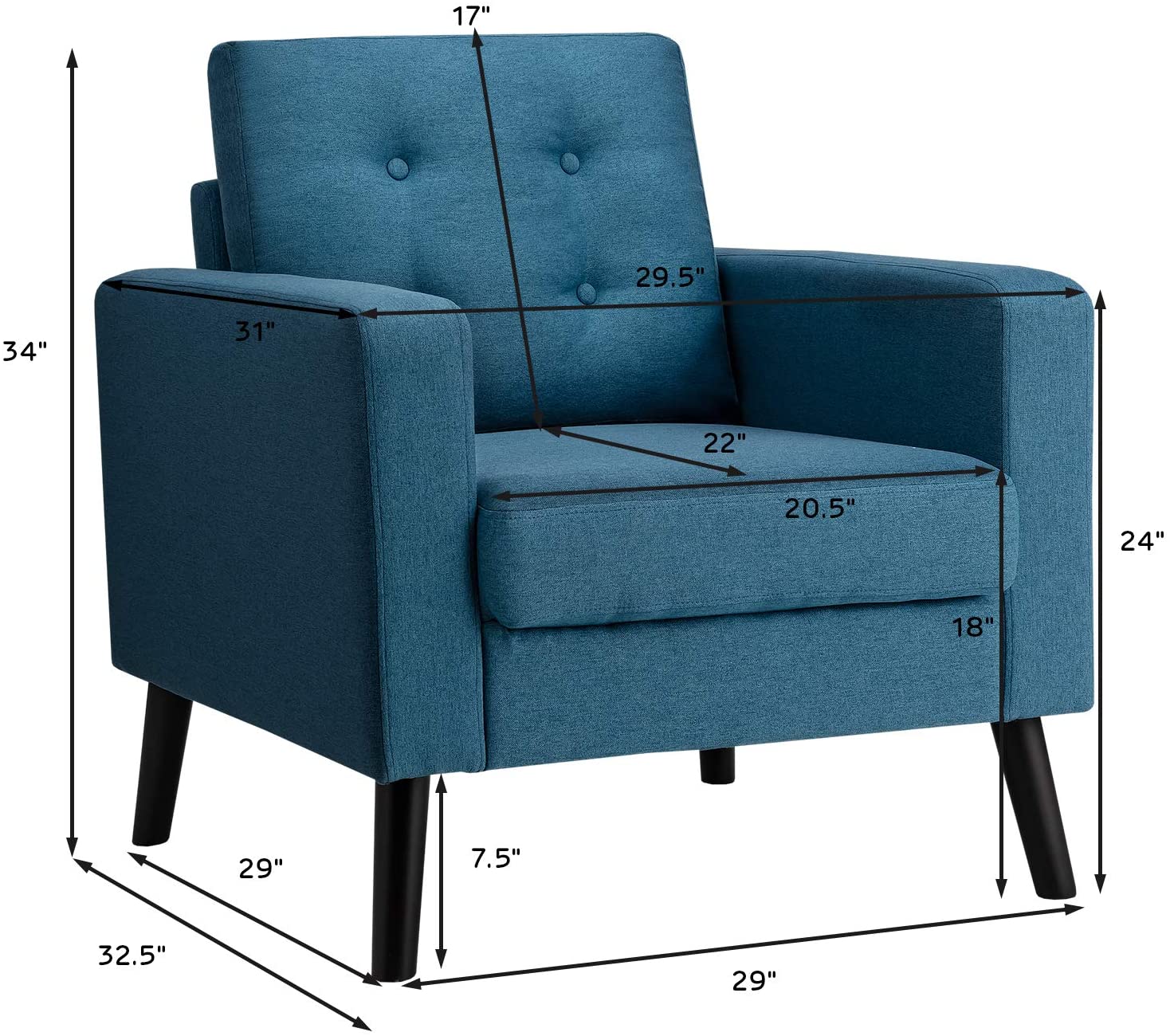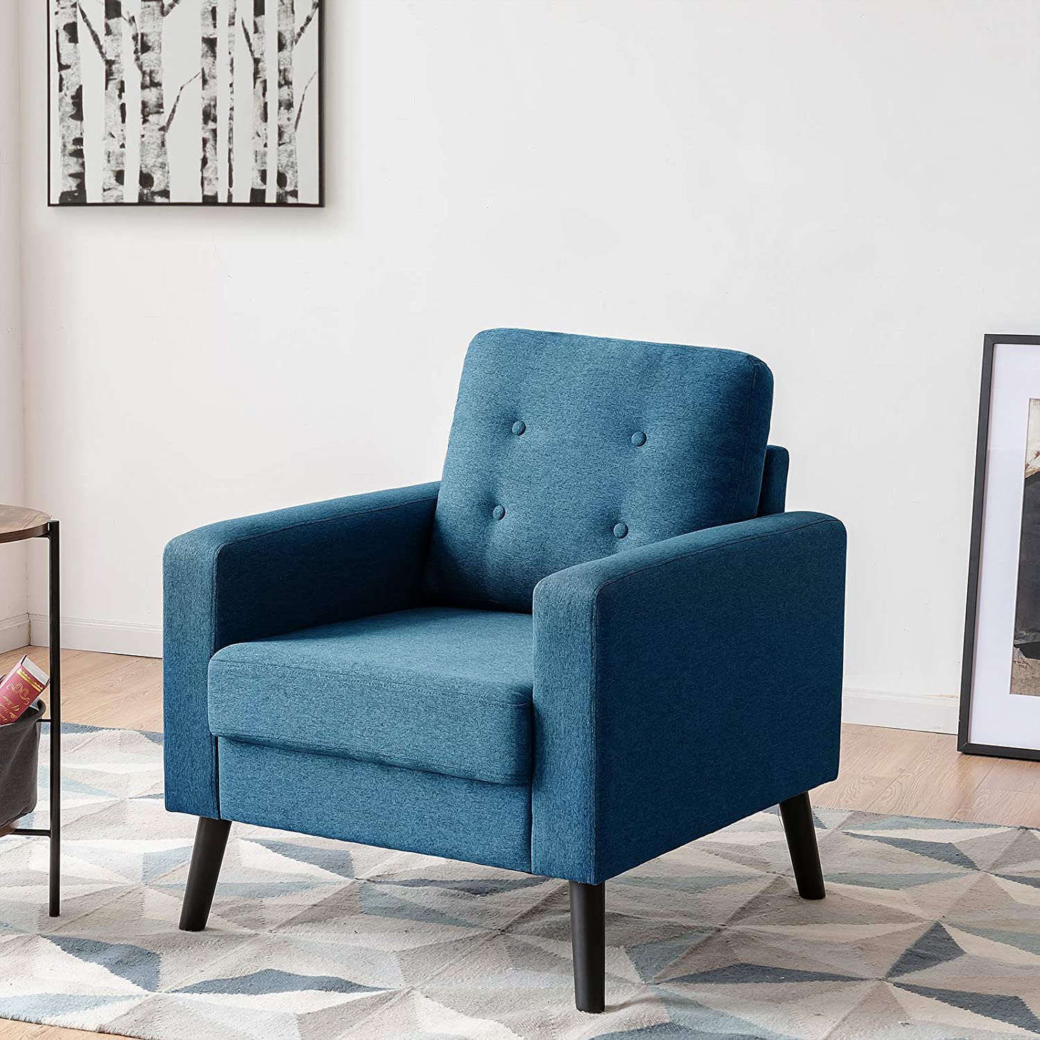 - Sturdy Structure with Rubber Wood Legs: Made of a premium wooden frame, this accent chair is very sturdy and durable for long-term use. 4 rubber wood legs will provide greater support and stability, allowing the armchair to withstand up to 265 lbs without wobbling.