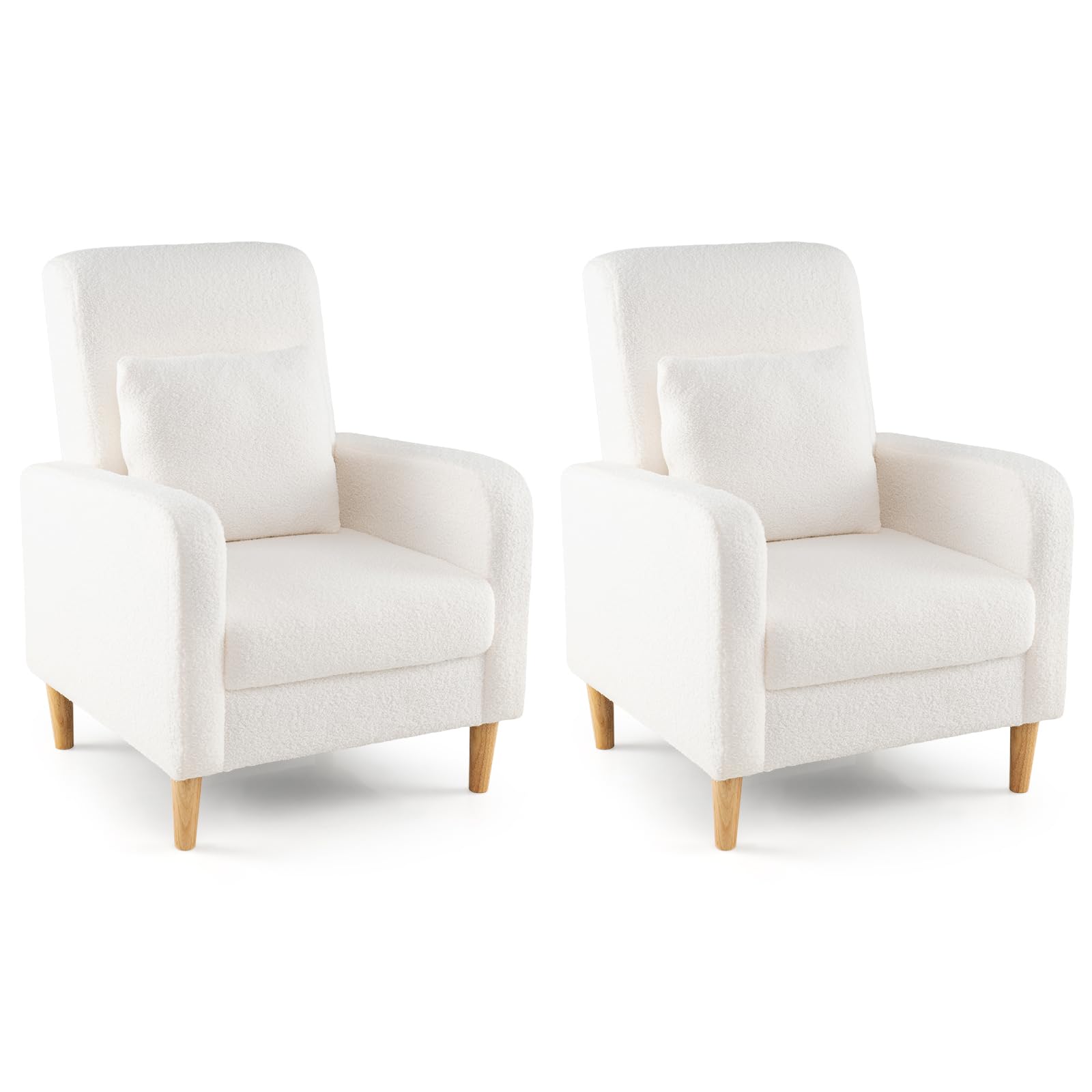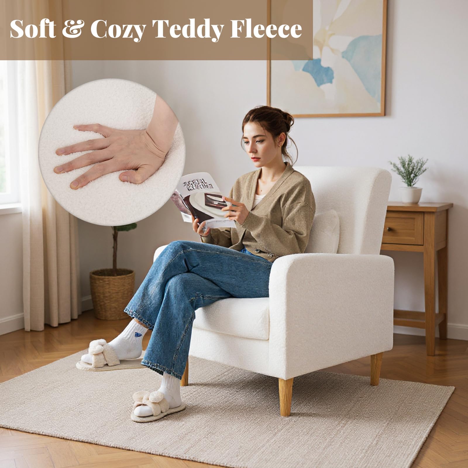 Our plush accent chair welcomes your home with its thick cushioning and cloud-like teddy fleece, plus a removable lumbar pillow for personalized support. The solid rubber wood legs with anti-slip pads keep the chair steady, while hidden wave springs adapt to your postures. Plus, with its clean-lined design, it fits anywhere from living rooms to home offices. Make “me-time” more comfortable with our upholstered accent chair!
