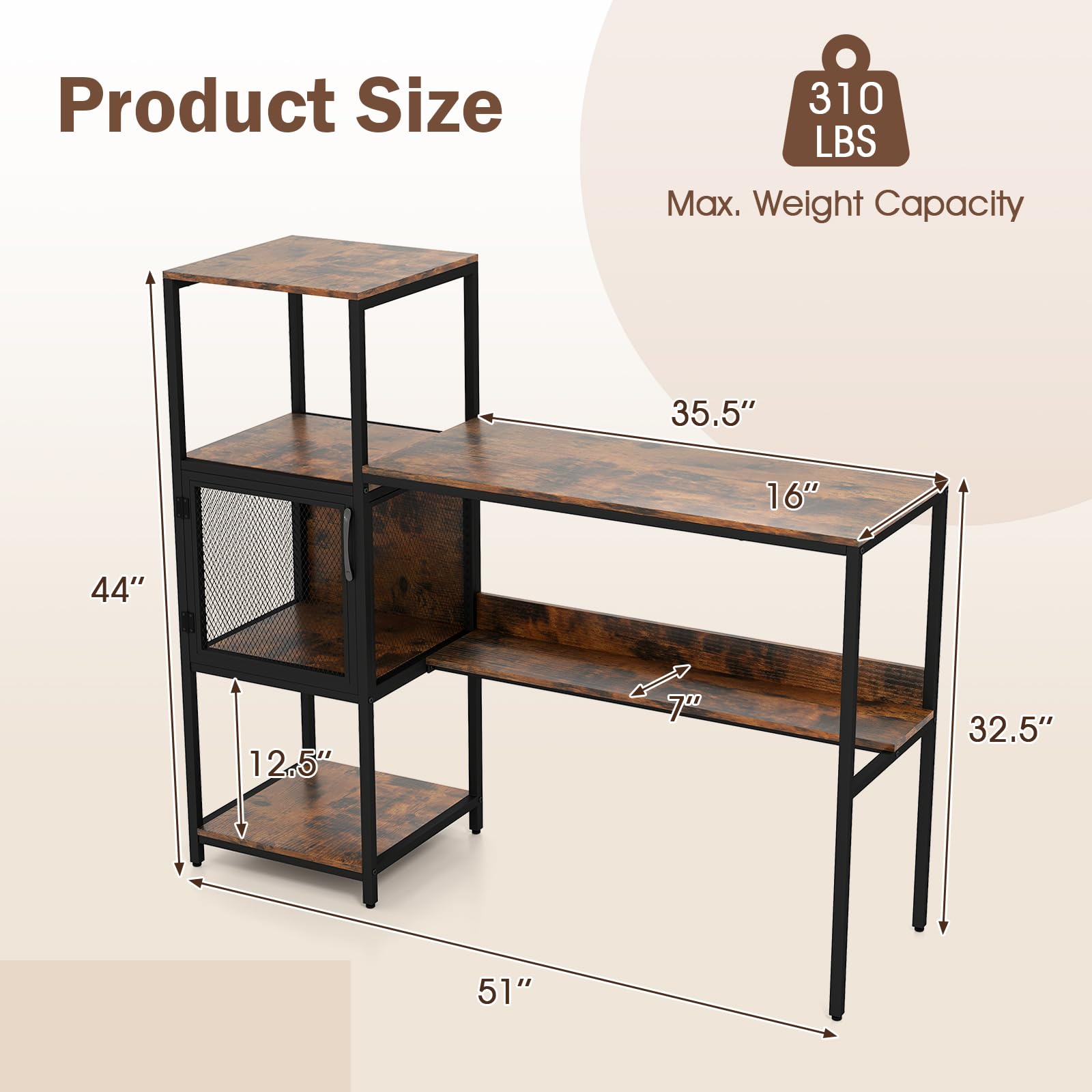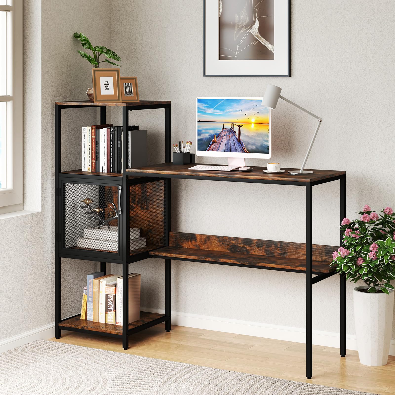 The computer desk is equipped with a wide tabletop, an under-desk shelf and a bookshelf, thus to hold a large amount of work supplies, keeping all necessities at hand to promote productivity. In addition, the heavy-duty metal frame is complemented by adjustable foot pads, making it a reliable workstation to your living space. Styled with an industrial aesthetic, this laptop desk adds a different flair to various places. This computer desk is an ideal choice for those seeking functionality and style in their home office area.