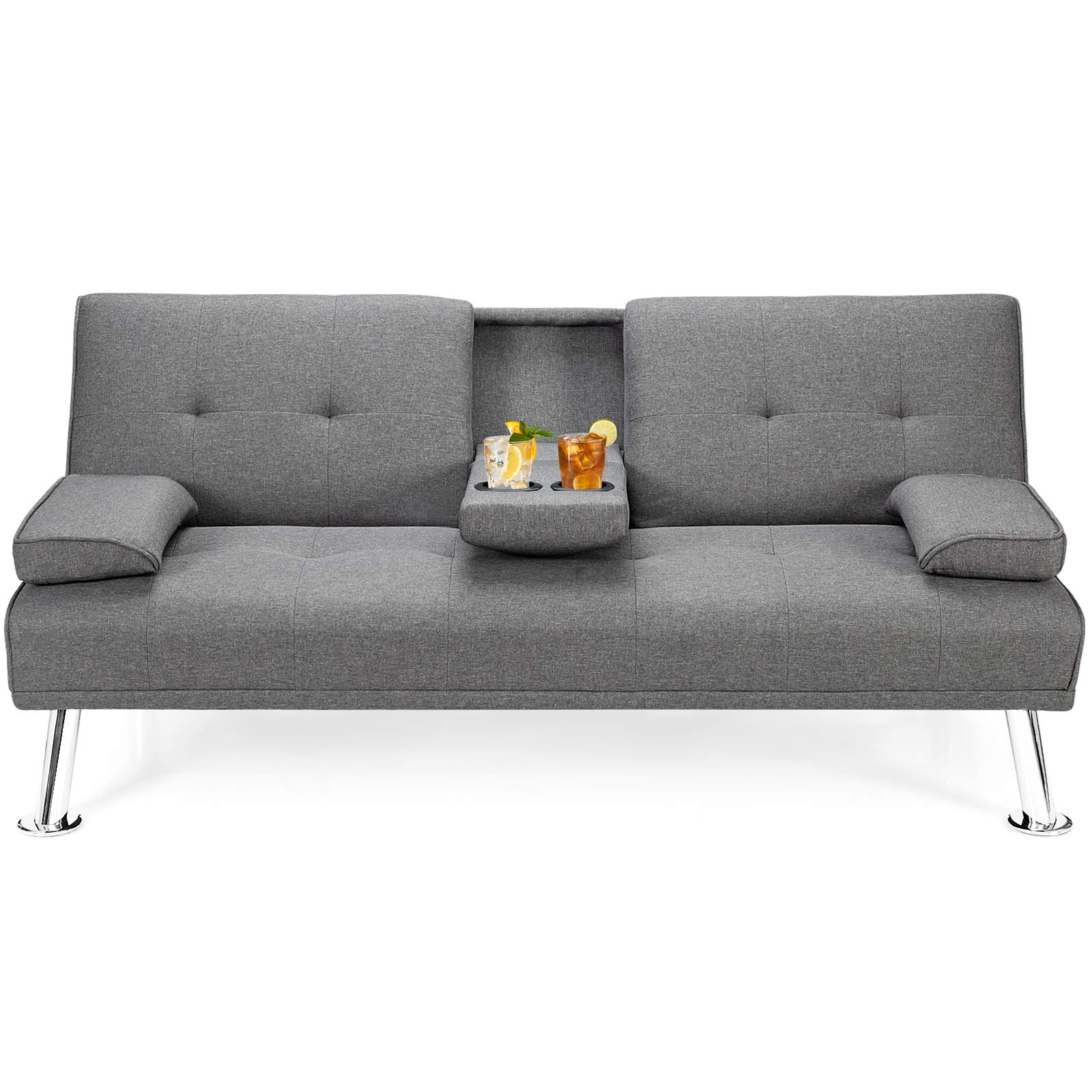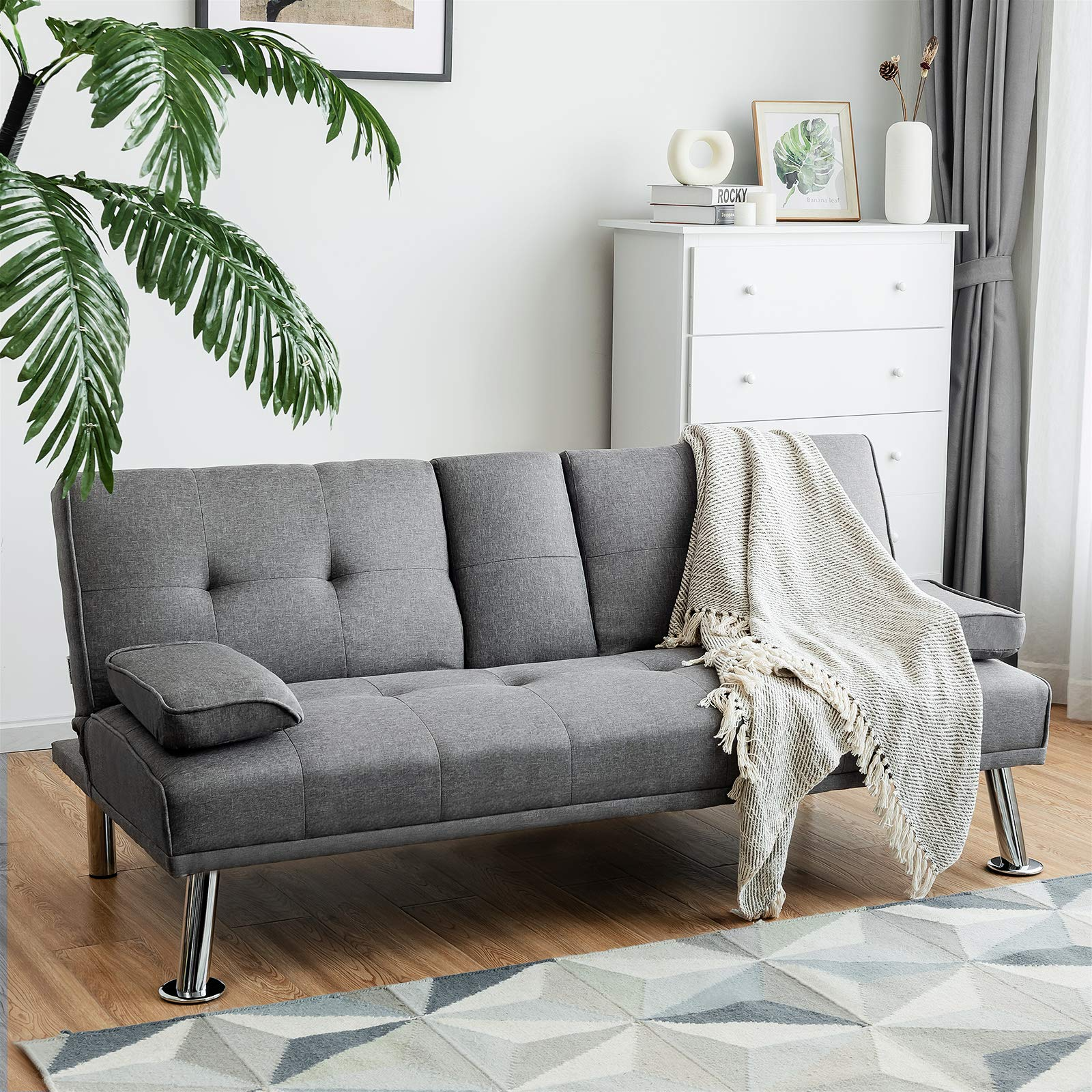 Our adjustable sofa bed brings extra rest space and beauty to your space. Designed with 3 position adjustments, this sofa bed can provide a comfortable place for you to chat with your friends, watch a movie or enjoy a peaceful slumber. The movable armrest can not only be served as an armrest or lumbar pillow when you are sitting, but also as a headrest for sleeping. The middle armrest with 2 cup holders can be unfolded downwards, so you and your friends can enjoy a couple of beverages. In addition, the foldable design of the middle armrest will not affect the use of the sofa as a bed. It is worth mentioning that the breathable and premium linen fabric will increase comfort. Supported by solid iron legs, this sofa bed is unquestionably stable.