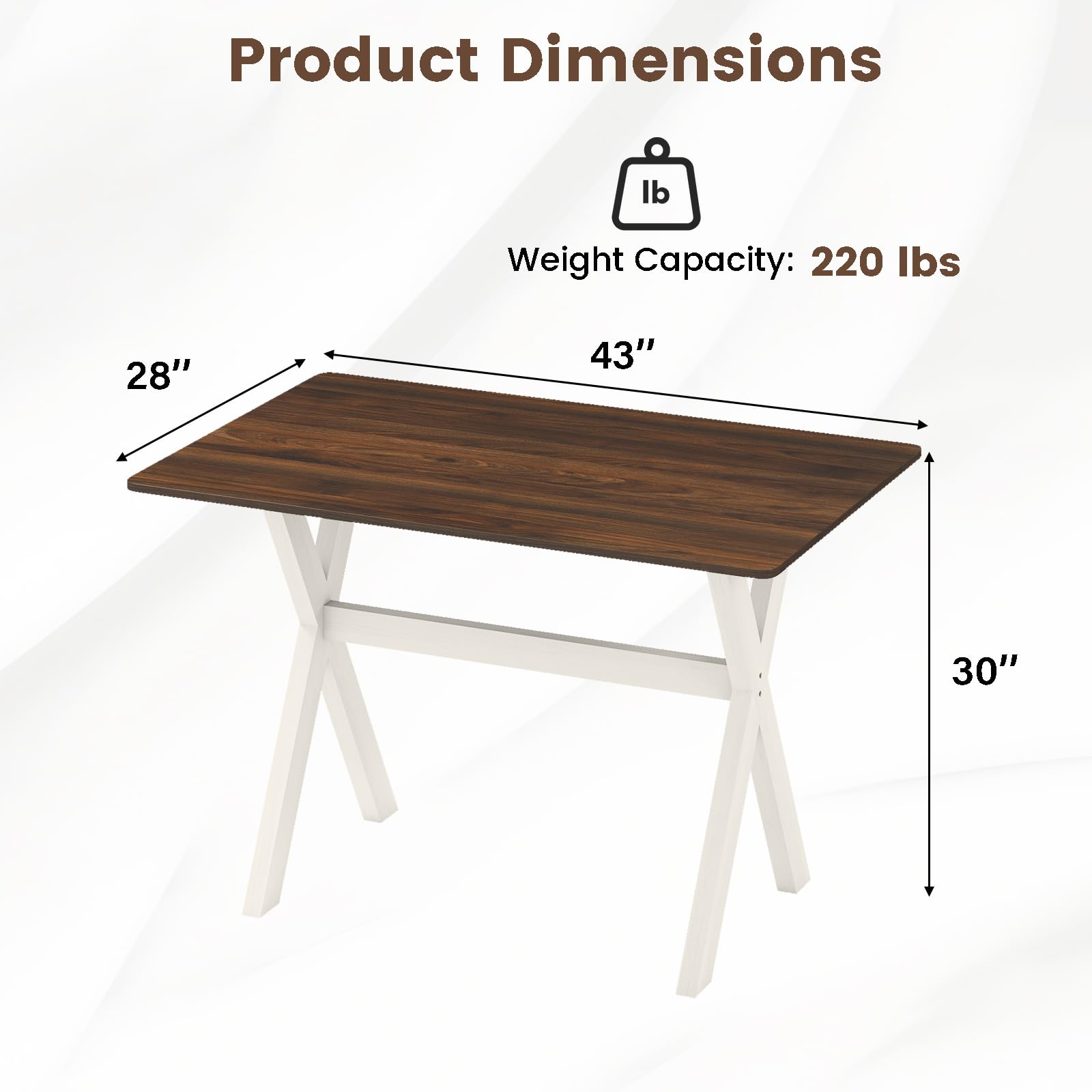 This dining table boasts a large and elegant tabletop measuring 43” x 28” (110 x 71 cm), providing ample space for food, wines, cups, and decorations, while its wood grain surface adds a touch of sophistication to any dining area. Constructed with a sturdy rubber wood frame, it offers exceptional durability and stability, thanks to its robust X-shaped structure, reinforced crossbar, and non-slip foot pads that protect your floors and keep the table securely in place. Versatile in design, this table is perfect for a variety of settings, whether you’re using it in the living room for a more relaxed dining experience, pairing it with benches or chairs in the kitchen for a cozy setup, or placing it in the study for a functional workspace.