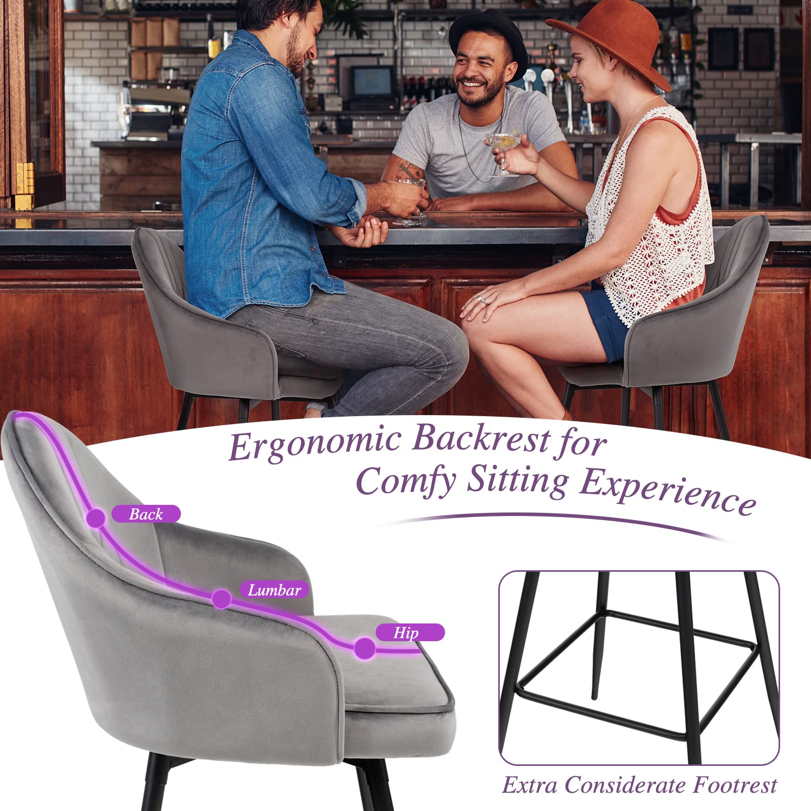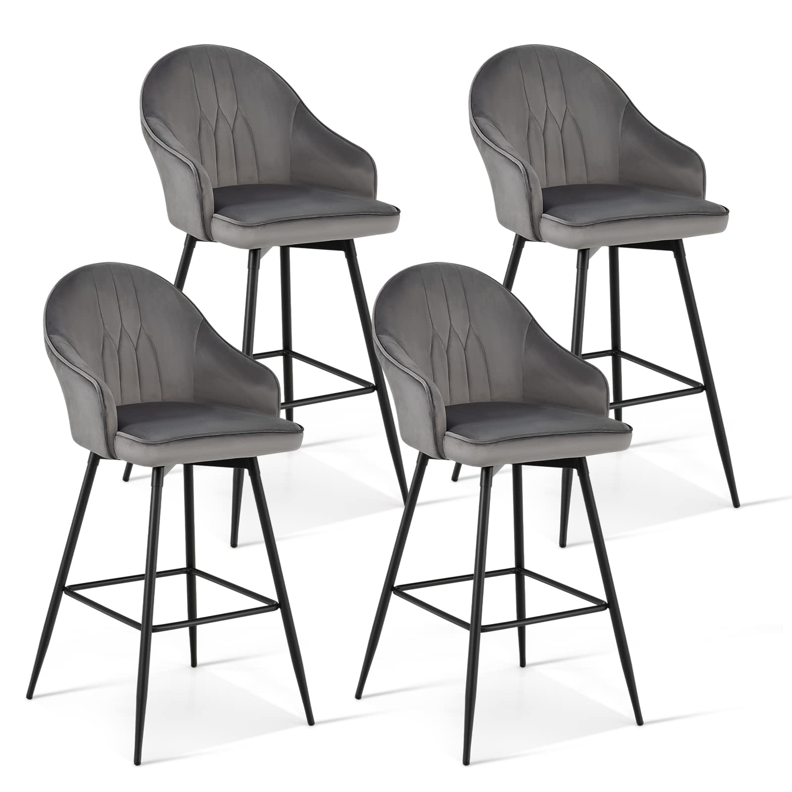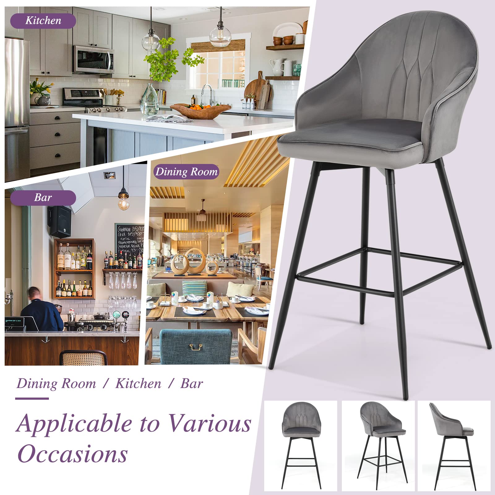 Enjoy a leisurely lunch, romantic dinner, and evening cocktail with our bar stools! The 360-degree rotatable design brings much convenience to chatting with friends. High-density sponge-padded seat and soft velvet surface offer a sense of comfort when you sit on the stool. Moreover, the ergonomically shaped backrest fits your body curve to achieve ultimate comfort. Supported by heavy-duty steel legs, the bar stools are not easy to wobble or shake. With modern design, clean lines, and elegant appearance, the bar stool set matches well with interior decoration. Whether used in the dining room, kitchen, or restaurant, this well-designed bar stool set will undoubtedly be an ideal choice.