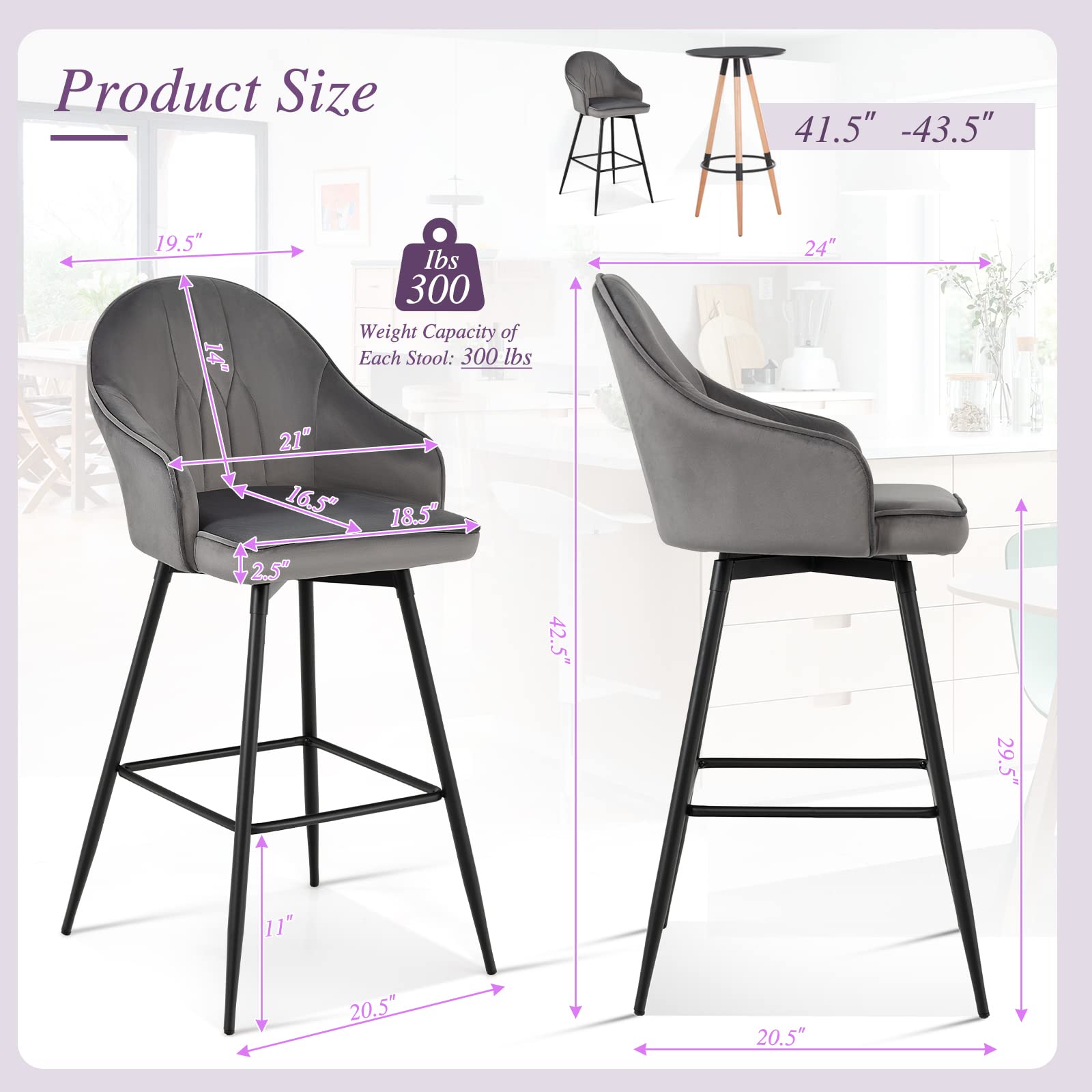 • 【360°Swivel Bar Stools:】Measuring 29.5” in seat height, this stool set is compatible with bar tables between 41.5” and 43.5”. Besides, the 360-degree swivel design allows you to do whatever you want without having to move the chair back and forth so that you can communicate with others in any direction.