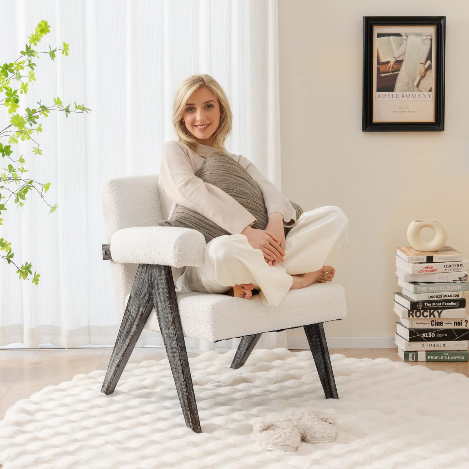 Are you still looking for a suitable living room chair for comfy reading? Our Giantex accent chair will be your ideal choice. It features inclined backrest, thick seat cushion and padded armrests to perfectly support your back, waist, hip and arms, allowing you to fully relax during sitting. To further ensure your sitting comfort, we specailly design it with skin-friendly sherpa fabric cover, soft sponge and S-shaped springs. You can sit on it to read books, watch TV, work, etc. Moreover, supported by solid rubber wood legs, our leisure chair can support a weight up to 400 lbs. The triangular structure and non-slip foot pads also allow for overall sturdiness, making it not easy to wobble.