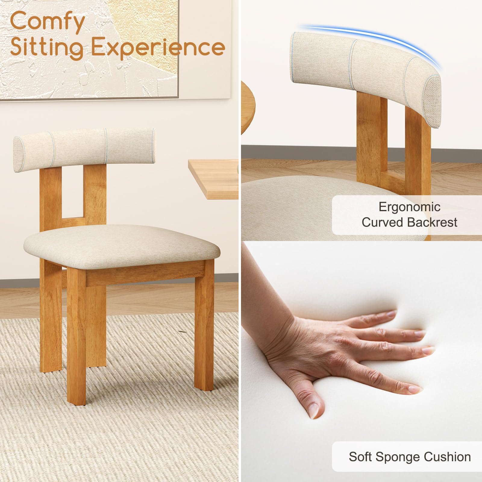 The ergonomic curved backrest is designed to follow the natural contours of your spine, providing optimal support and enhanced comfort with soft sponge cushioning. Besides, the wide padded seat, ensures a soft and supportive sitting experience, while the wear-resistant fabric is both breathable and easy to maintain, making it ideal for daily use. Crafted with selected rubber wood, this kitchen chair offers a natural and reliable foundation that can support up to 330 lbs. Additionally, the padded accent chair’s hollow-out design adds a touch of sophistication and modern elegance, making it seamlessly fit into various spaces, including the dining room, living room, bedroom, study, and more.