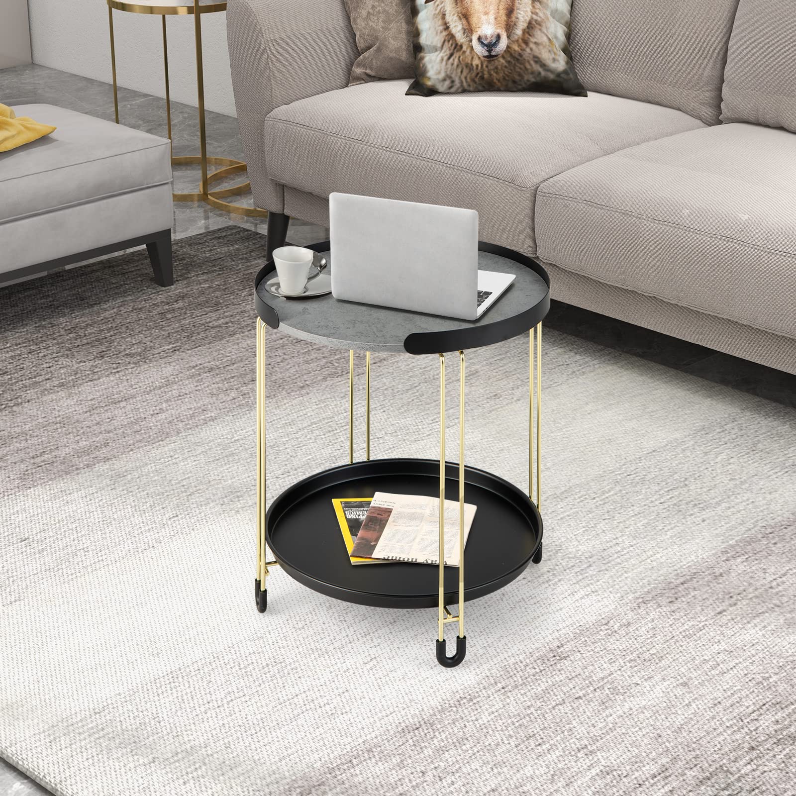 Giantex Modren Side Table, Faux Marble End Table with Golden Frame and Removable Tray