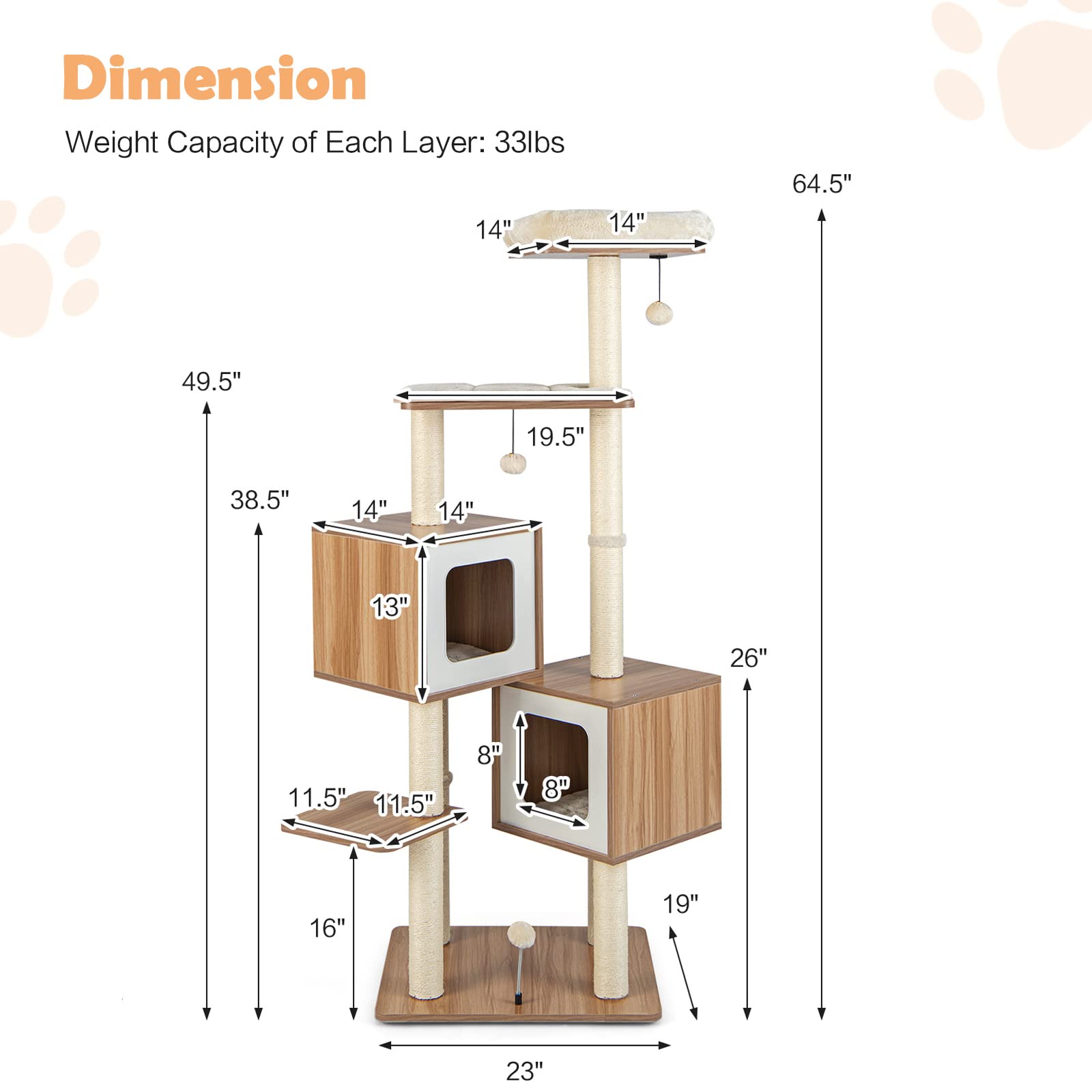 Whether you have kittens, large cats, or senior cats, our 64.5" tall cat tree is a wonderful home for climbing, clawing, resting, and exercising.
