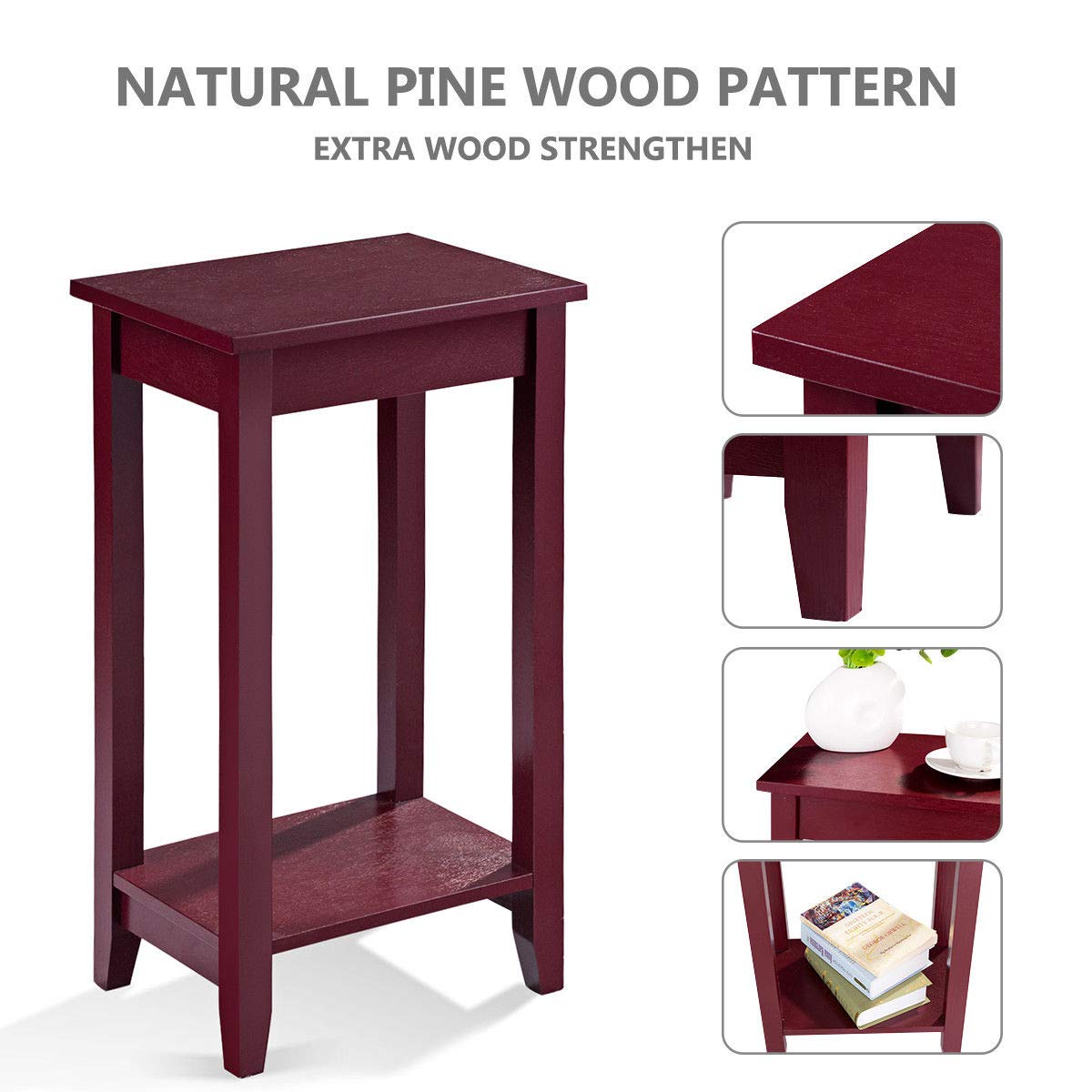 - Super Stable Solid Pine Wood Feet: This End table has pine wood feet and it has a special cutting curvature that makes the table more stable and does not wobble easily. Structured with heavy-duty material for extended durability, and the structure follows the scientific principle.