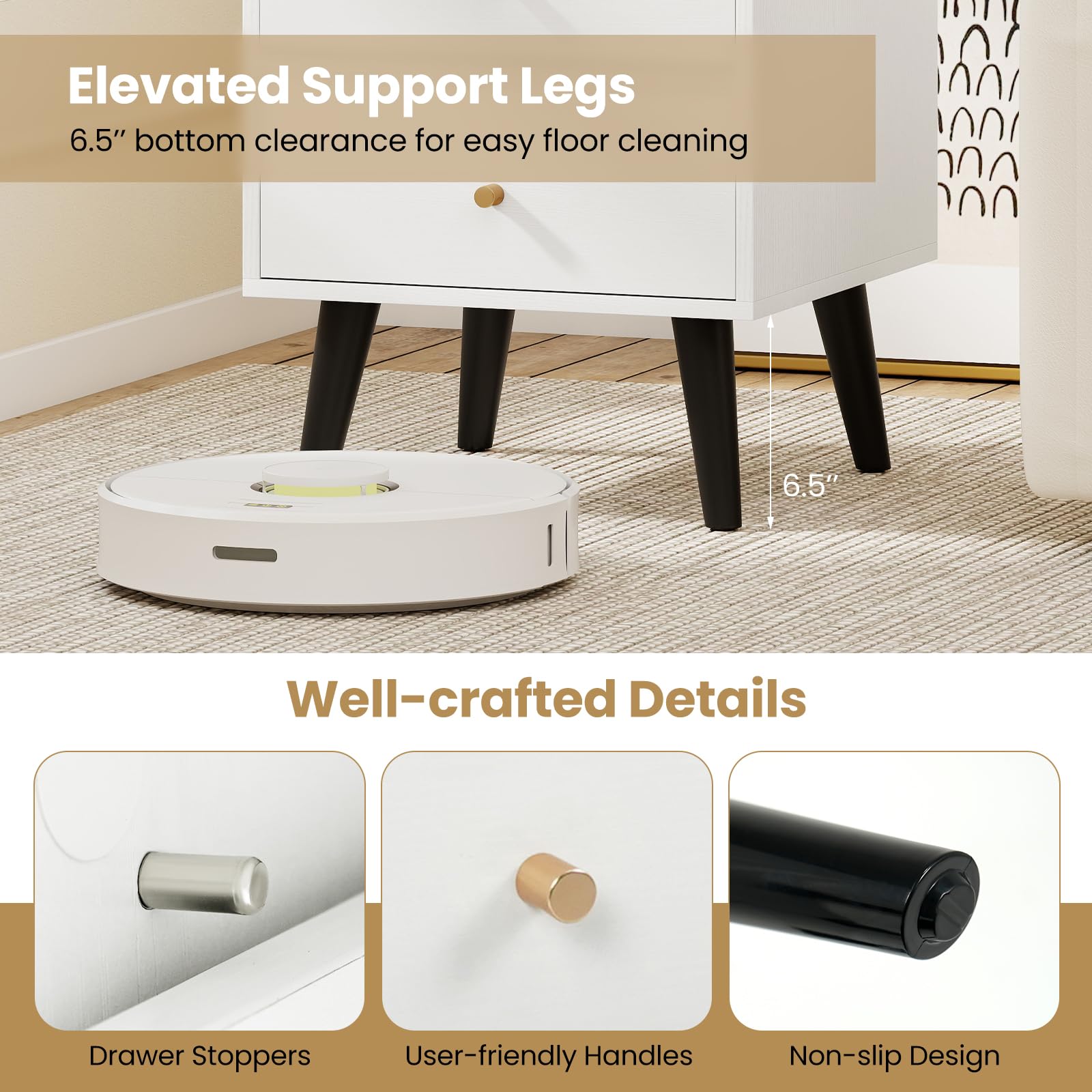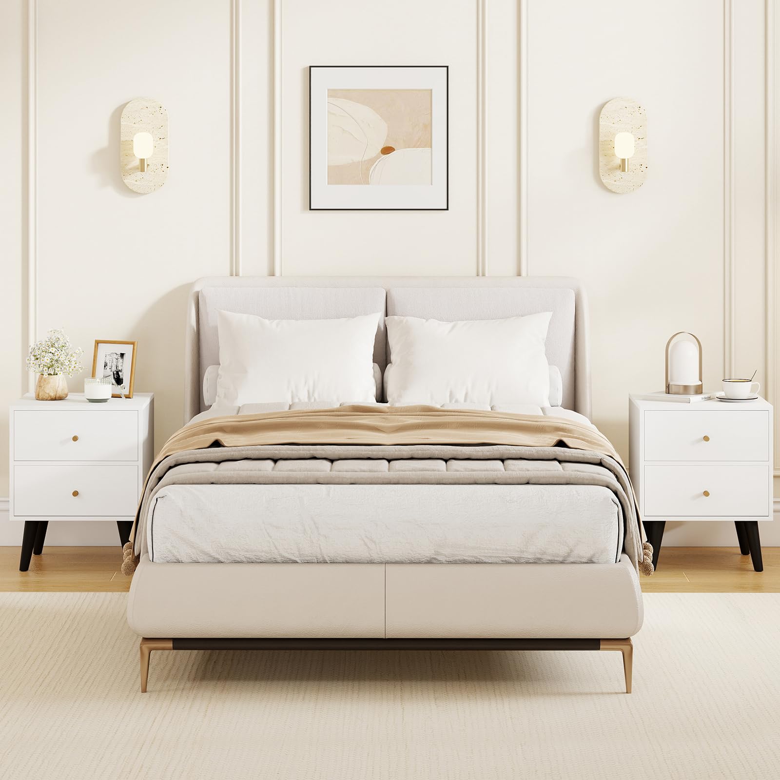 Upgrade your bedroom or living space with this versatile 2-drawer nightstand, expertly crafted for both style and function. With ample storage space on the spacious tabletop and in large drawers, this bedside table keeps your essentials organized and within reach—ideal as a bedroom nightstand or a living room end table. Sturdy elevated support legs ensure stability while making floor cleaning simple, and the minimalist modern design complements any decoration effortlessly. Whether you need a sofa side table, compact nightstand, or small storage cabinet for your office or apartment, this multipurpose furniture piece adapts to your needs, and is a perfect addition to your living space.