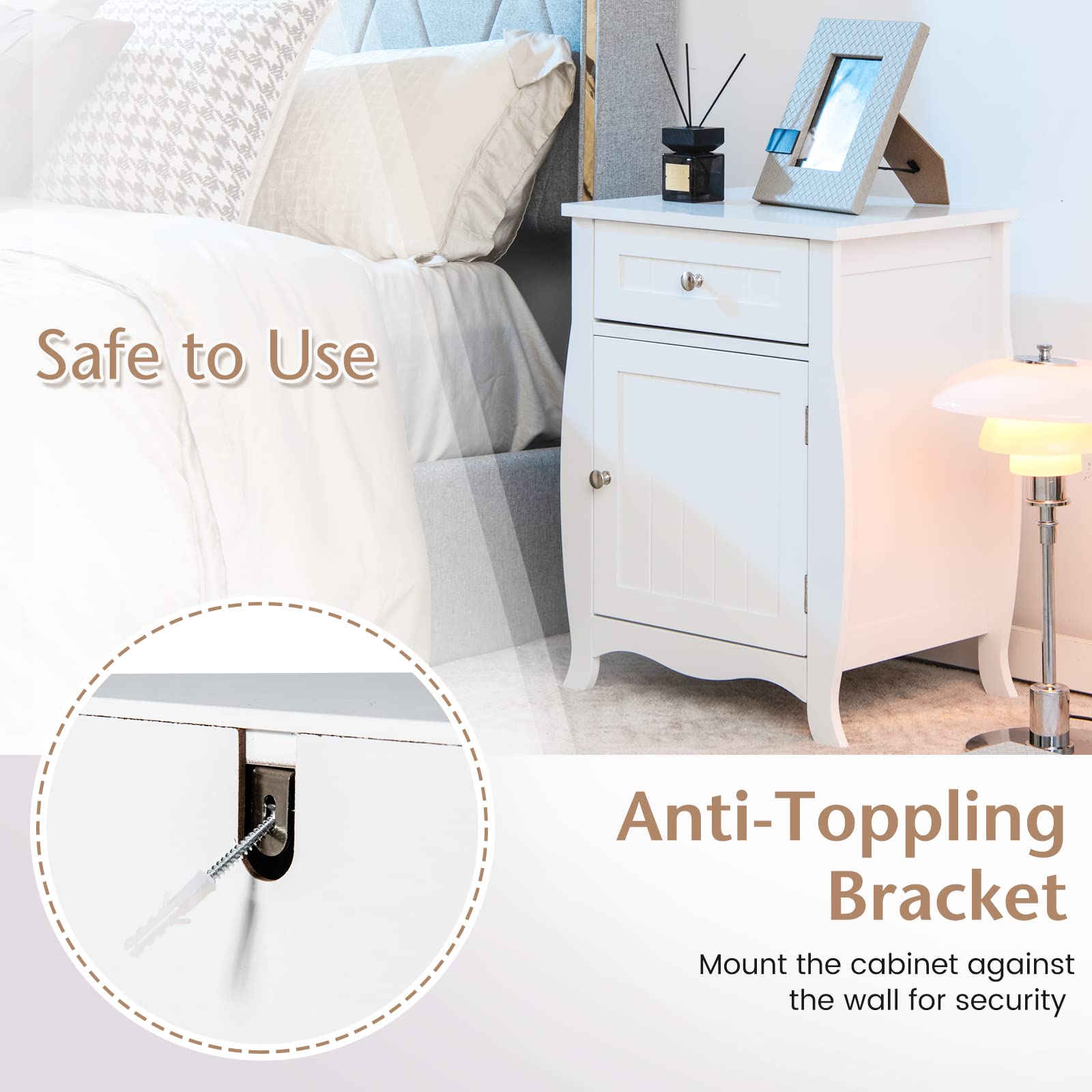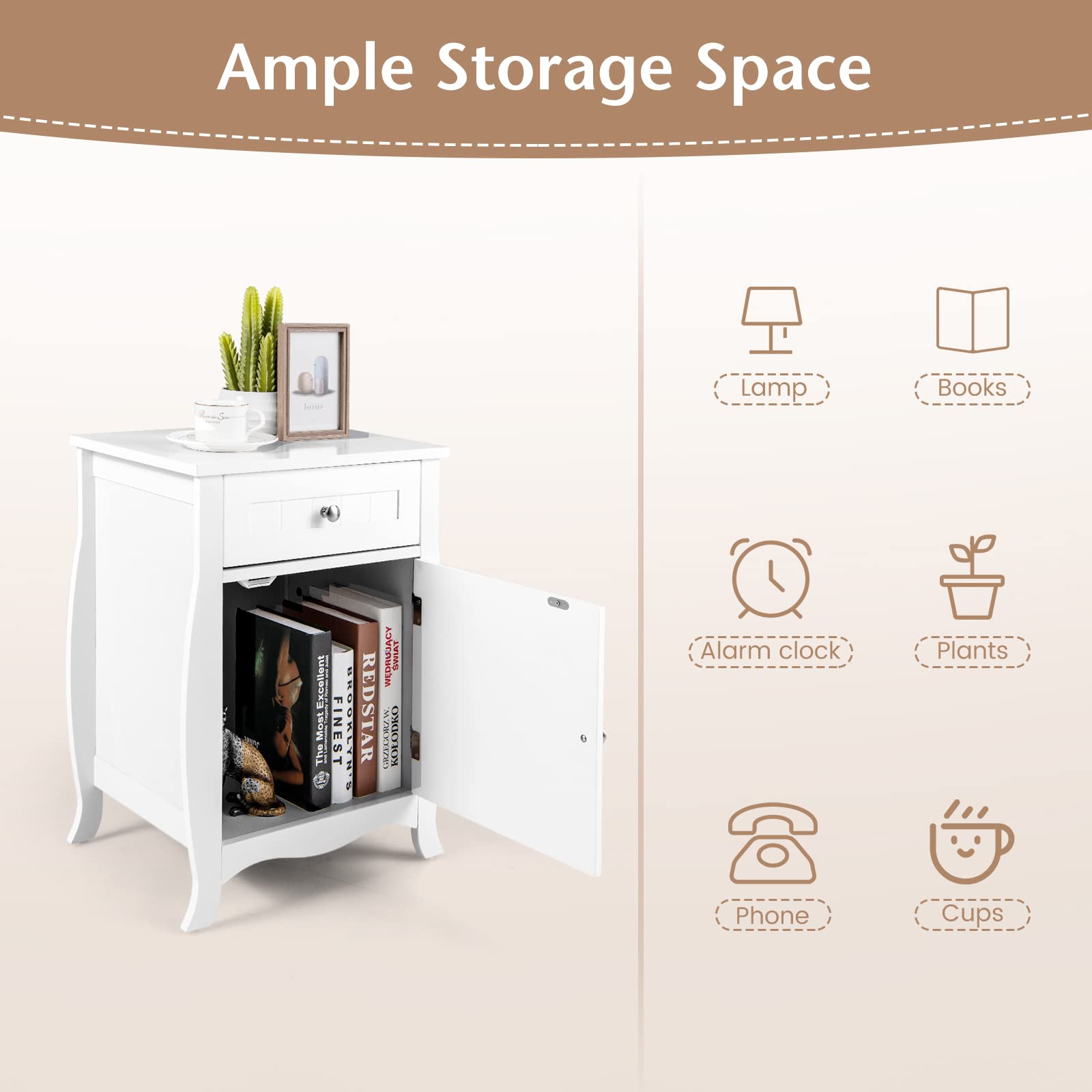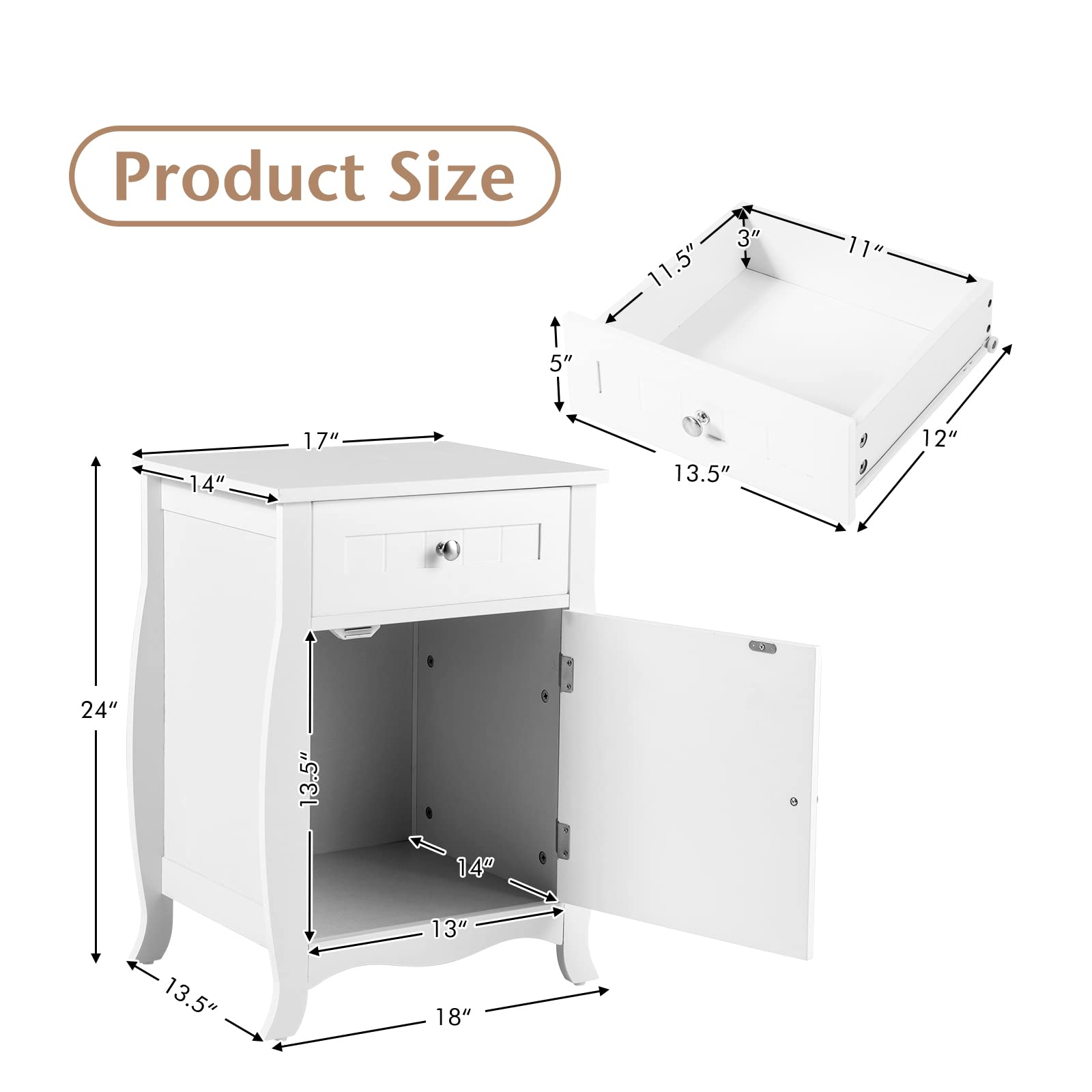 Giantex Nightstand Bed Side End Table with Drawer(1&2, White)