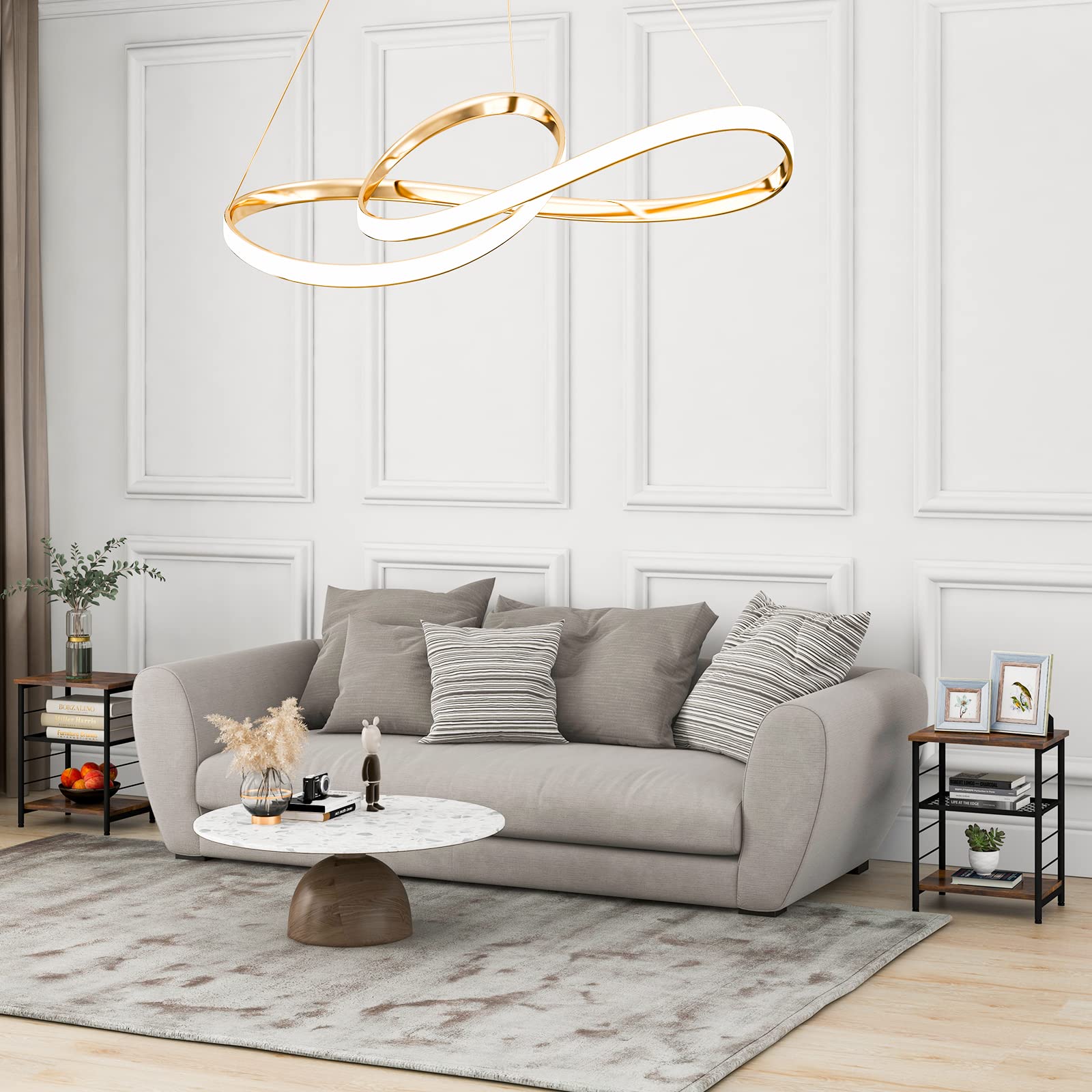 Featuring a sophisticated metal frame and an elegant wooden table top, our side table can bring appeal to your room. It has 3-tier large storage space that allows you to sort through a large number of personal items. The center metal mesh shelf can be adjusted in four positions between 3" and 12.5". In addition, the high-quality metal frame makes this storage side table sturdier, while the water-resistant, hard-wearing tabletop is easy to clean and maintain. You can put it in your living room, bedroom, or study. Of course, you can also use two or more to create a coherent beauty. This versatile three-tier side table is definitely an attractive and practical addition.
