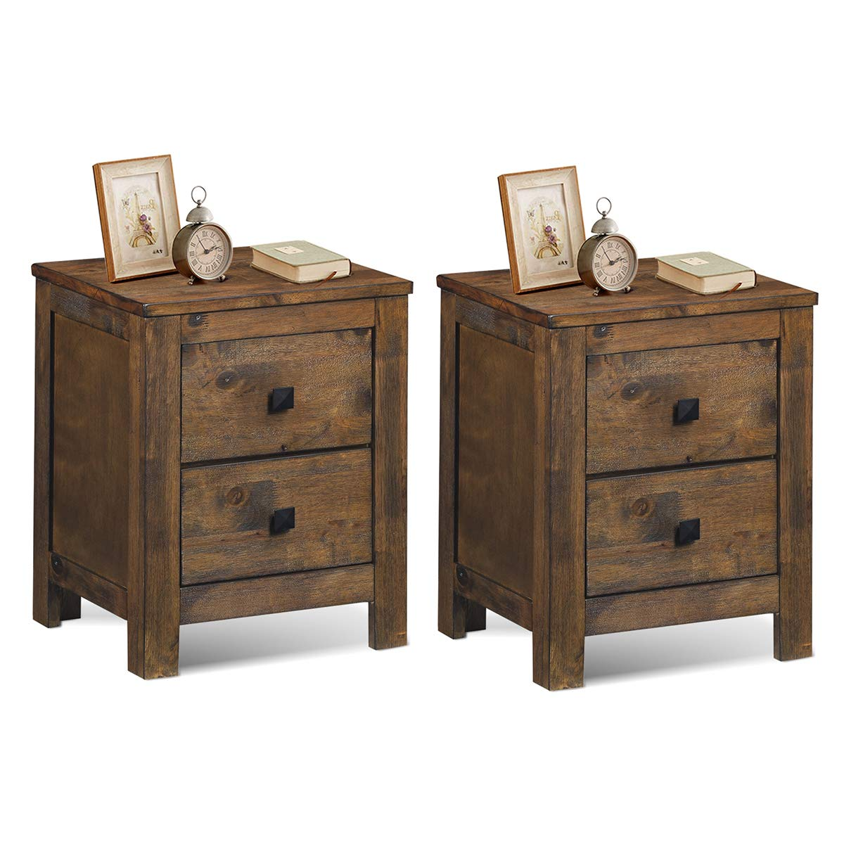 Giantex Nightstand with 2 Sliding Drawers, Full Assembled Rustic Multipurpose Storage Beside Table for Bedroom