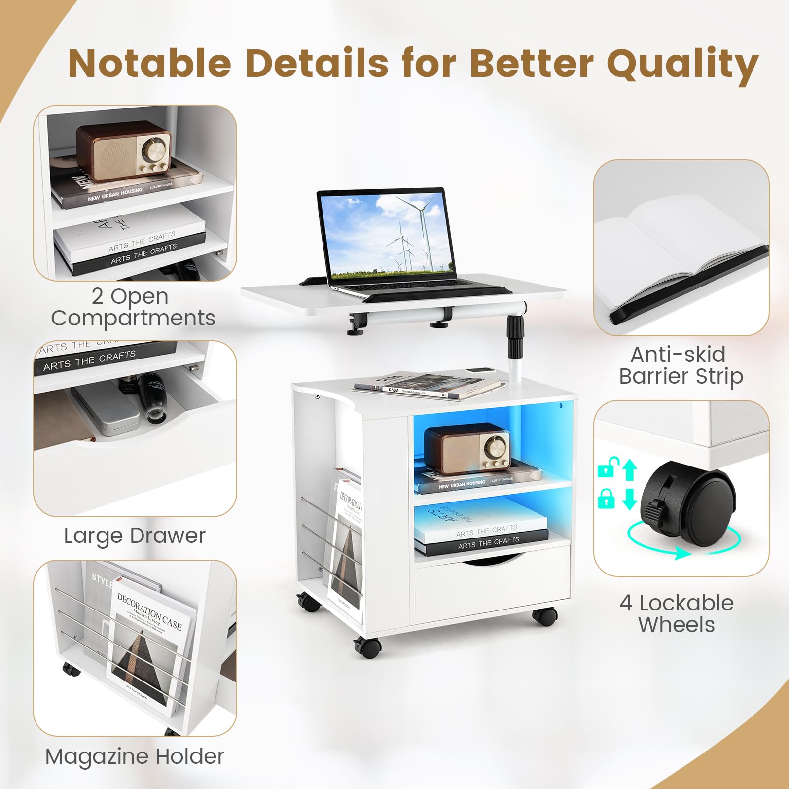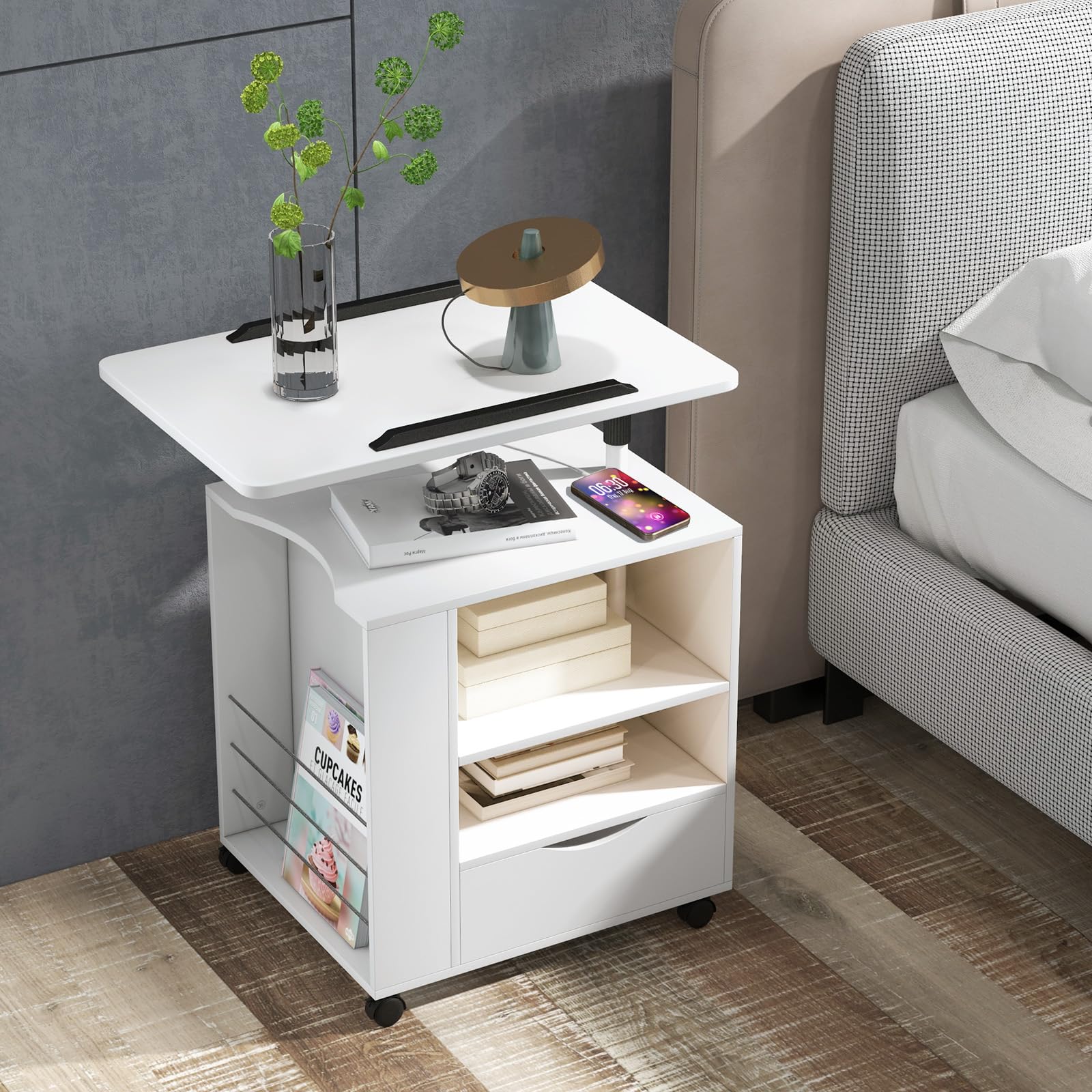 - [Sturdy Rolling Workstation]: Made of thickened board with premium edge-sealing, the end table is a reliable addition to your living space. The smart bedside table is equipped with 4 lockable wheels for free movement when you want to move it from the living room to the bedroom.