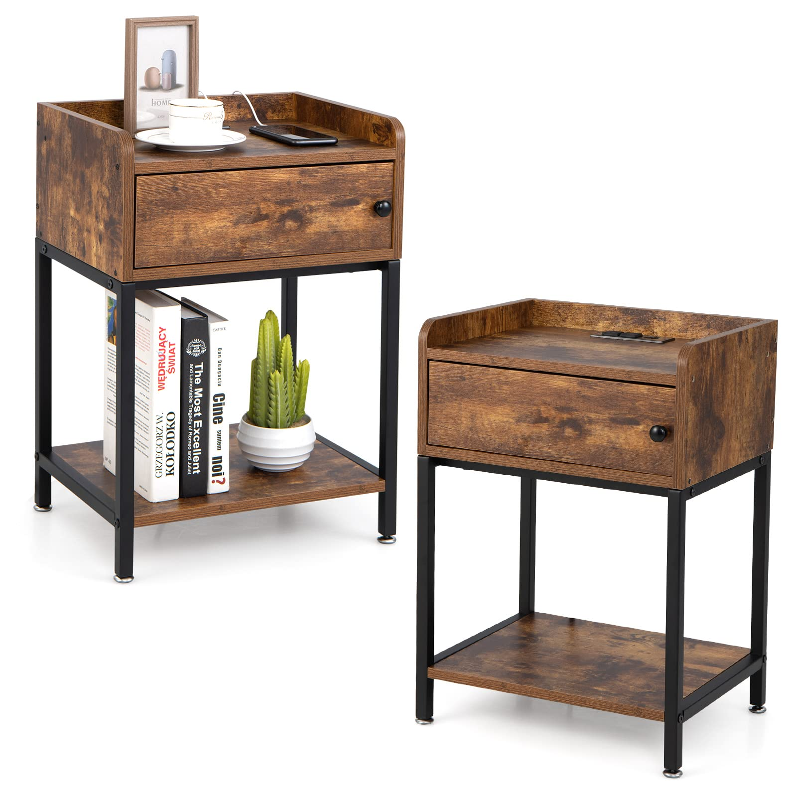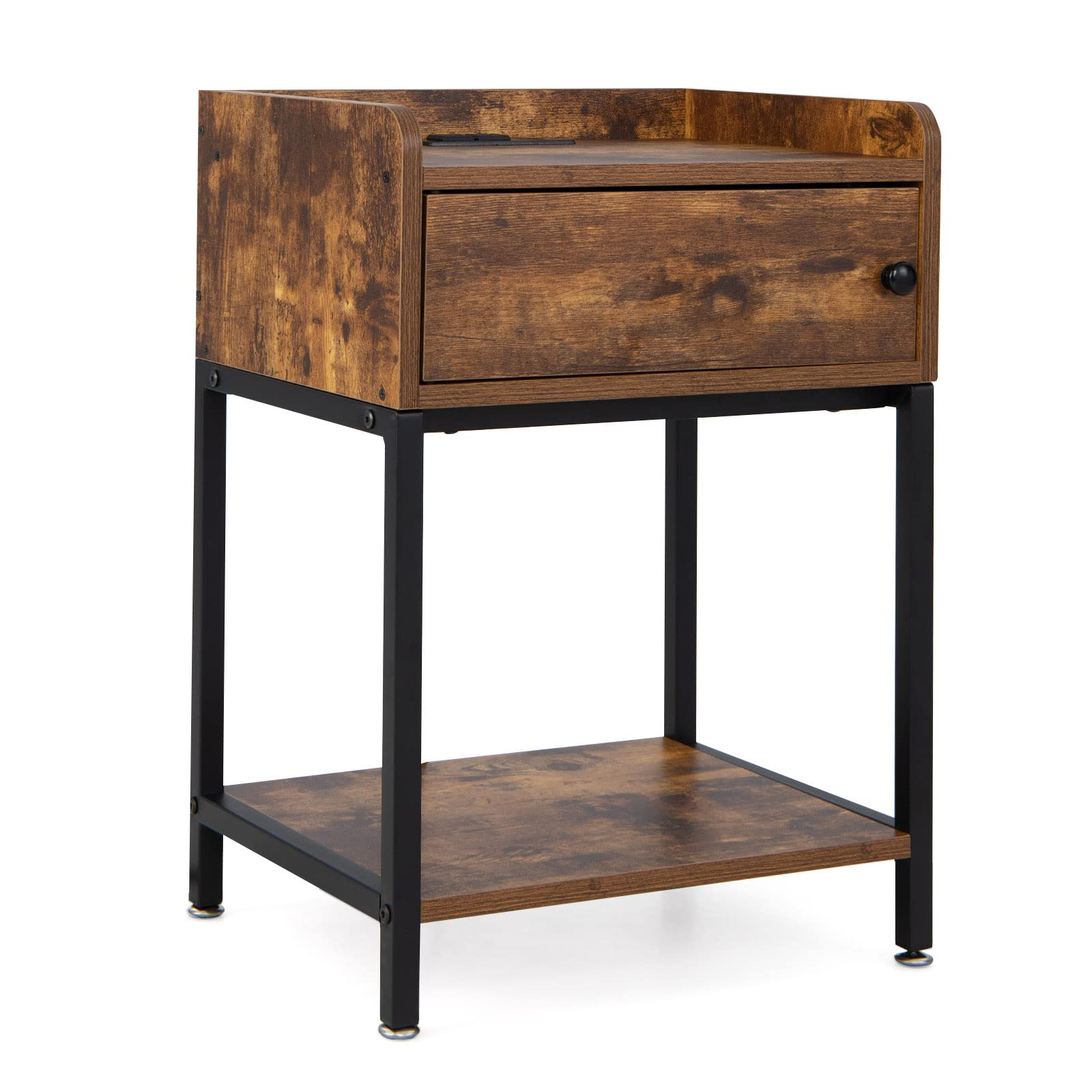 - Nightstand with Charging Station: The industrial nightstand features a practical charging station that is composed of 2 power outlets and 2 USB ports. Therefore, you can charge your mobile phone, tablet, lamp and other devices conveniently. Moreover, the cable management hole gets the power cord under control.