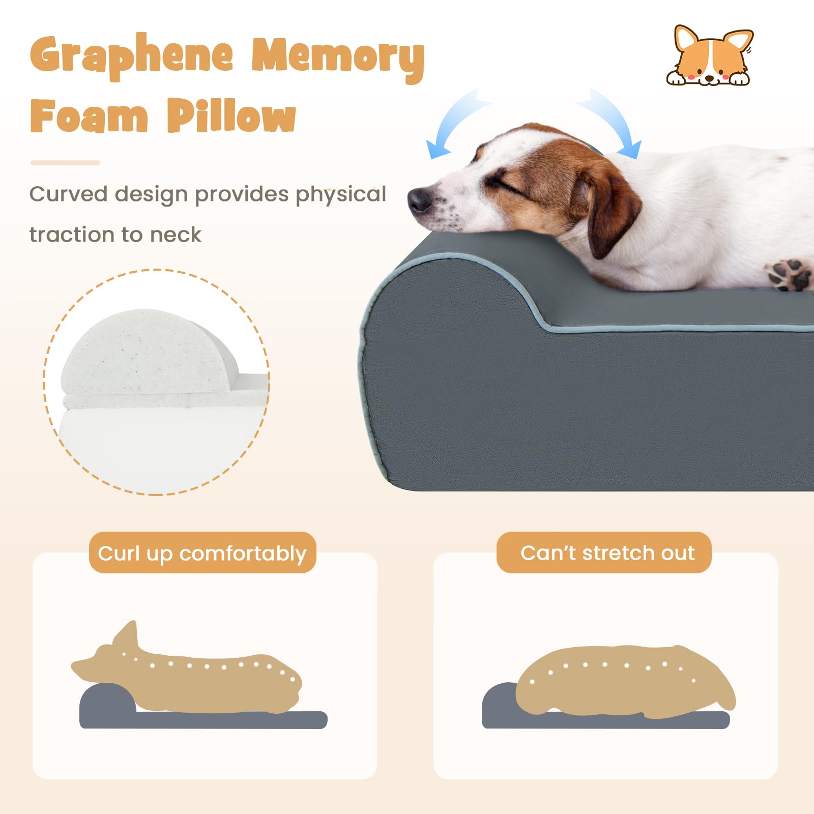 - 【Double-layer Foam Support】: This orthopedic dog bed combines 30D graphene memory foam and a 7'' high-density foam layer for optimal comfort and support. It contours to the dog's body, evenly distributing weight and relieving pressure points. Perfect for older or arthritic dogs.