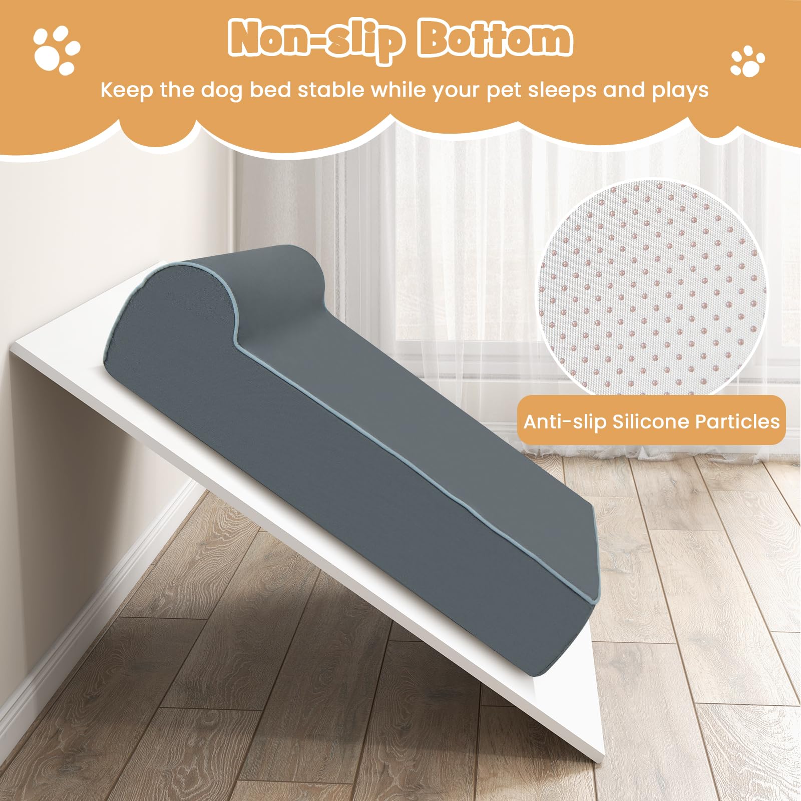 The dog bed features orthopedic memory foam for excellent support, a 7'' high-density foam layer to relieve joint pressure, and a foam-filled pillow for proper sleeping position. With a cozy and washable crystal super soft fabric cover, the bed is luxurious. It also has a non-slip bottom for stability.