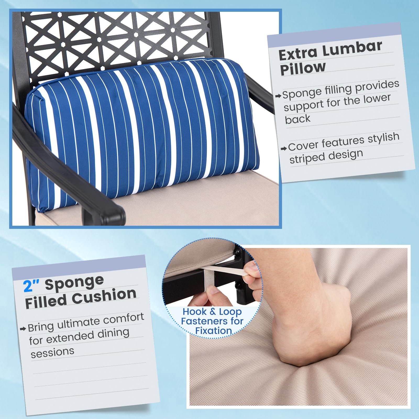 - Removable Cushion & Lumbar Pillow: Each patio counter height chair comes with a thick foam padded cushion and lumbar pillow, providing comfy support for your lower back and hip. Both the lumbar pillow and cushion is removable, ensuring cooler experience in hot days.