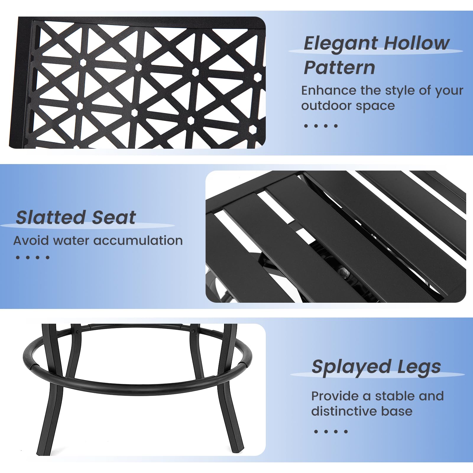- Stable & Sturdy Construction: The heavy duty metal bistro dining set boasts 3-layer of treatment for added protection, ensuring improved durability and sturdiness. And the splayed legs increase overall stability. Plus, the slatted seat will avoid water accumulation for extended lifespan.