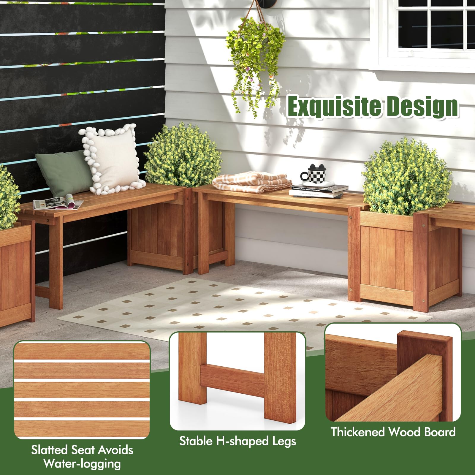 The garden bench with planter allows you to enjoy the vibrancy of your garden conveniently. The integrated planter not only adds greenery but also acts as a space-saving solution for gardening in limited space. Thanks to the open-ended design, the planter promotes free breath of roots and maintains soil nutrients for healthy growth. Furthermore, the slotted connection design allows for easy extensions, promoting flexible combination to customize your bench and planter setup according to your space. The high-quality wood material used in our bench maintains natural charm without compromising stability. Additionally, the teak oil finish ensures easy maintenance and prolonged use. Therefore, the raised garden bed with seat is suitable for patio, front porch or balcony. Assembling the bench was a breeze, with clear instructions and all necessary hardware included.