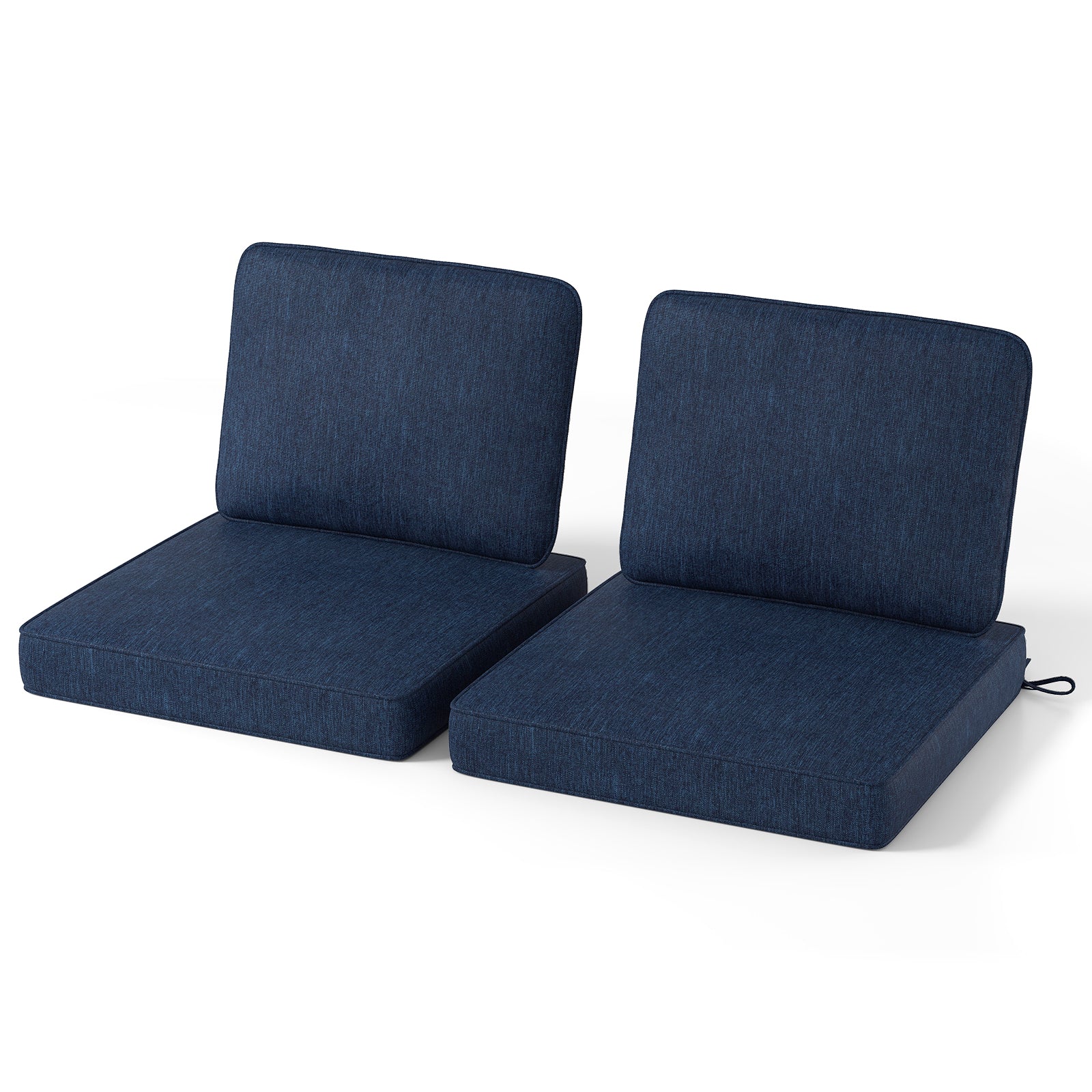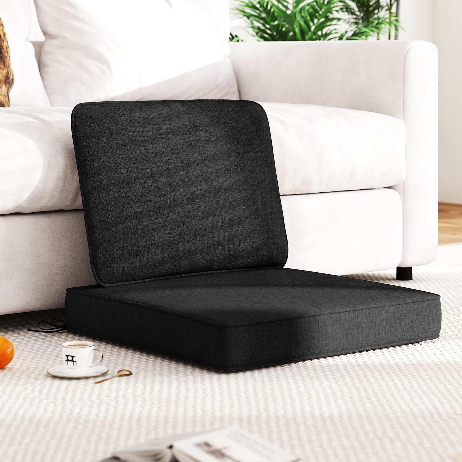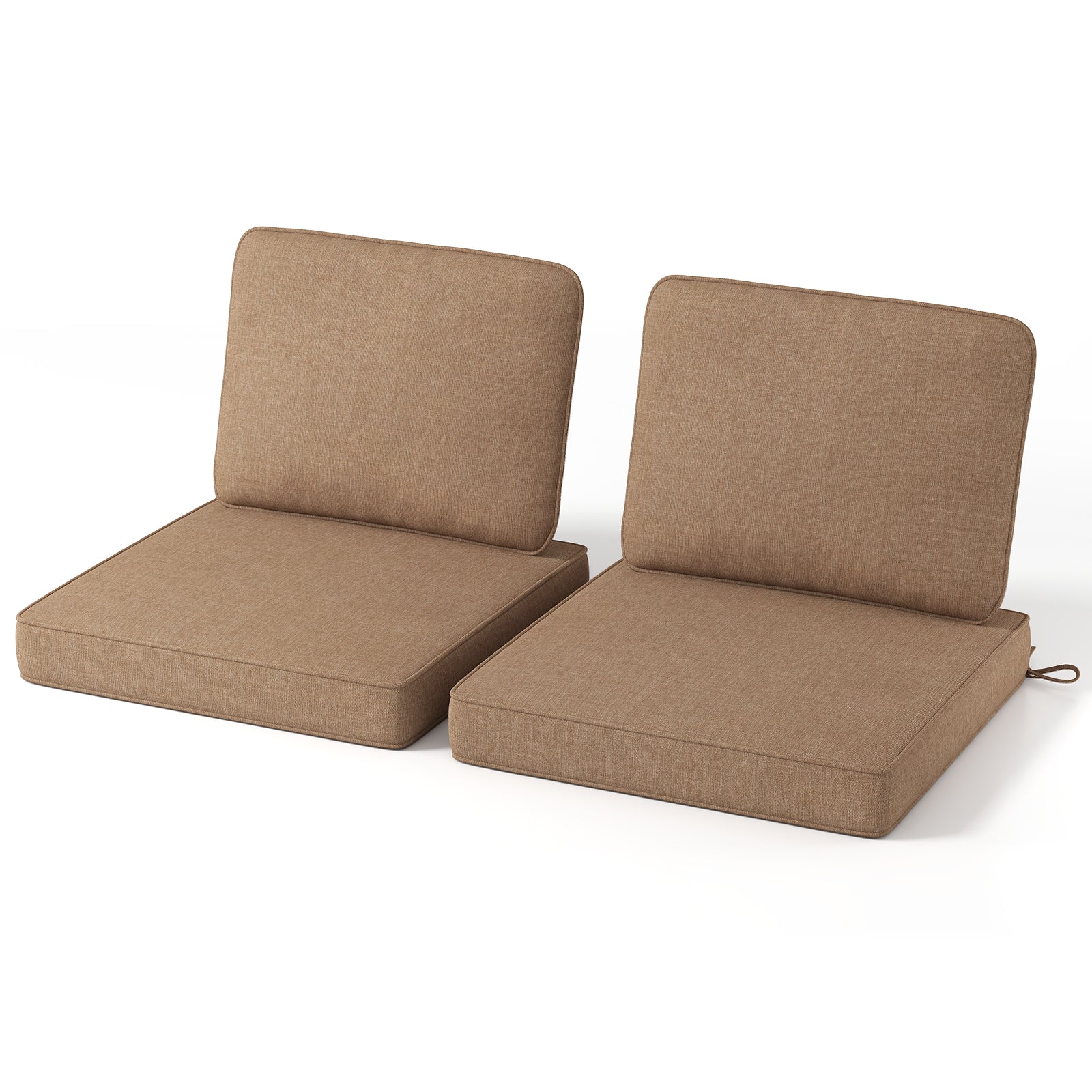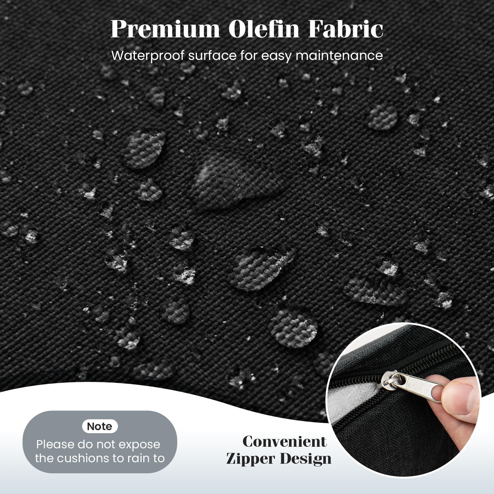 This outdoor patio cushion set is covered in high-quality Olefin fabric, which is wear-resistant, skin-friendly, and breathable. The fabric is also resist fading, sun damage, and water, keeping the cushions looking vibrant and elegant for a long time. Filled with a 28D sponge, they provide excellent support and comfort, retaining their shape even after extended use. Additionally, these versatile cushions are perfect for dining chairs, patio chairs, garden lounges, and more. Plus, the cushion and pillow come with a zipper design for you to take out the cover easily.