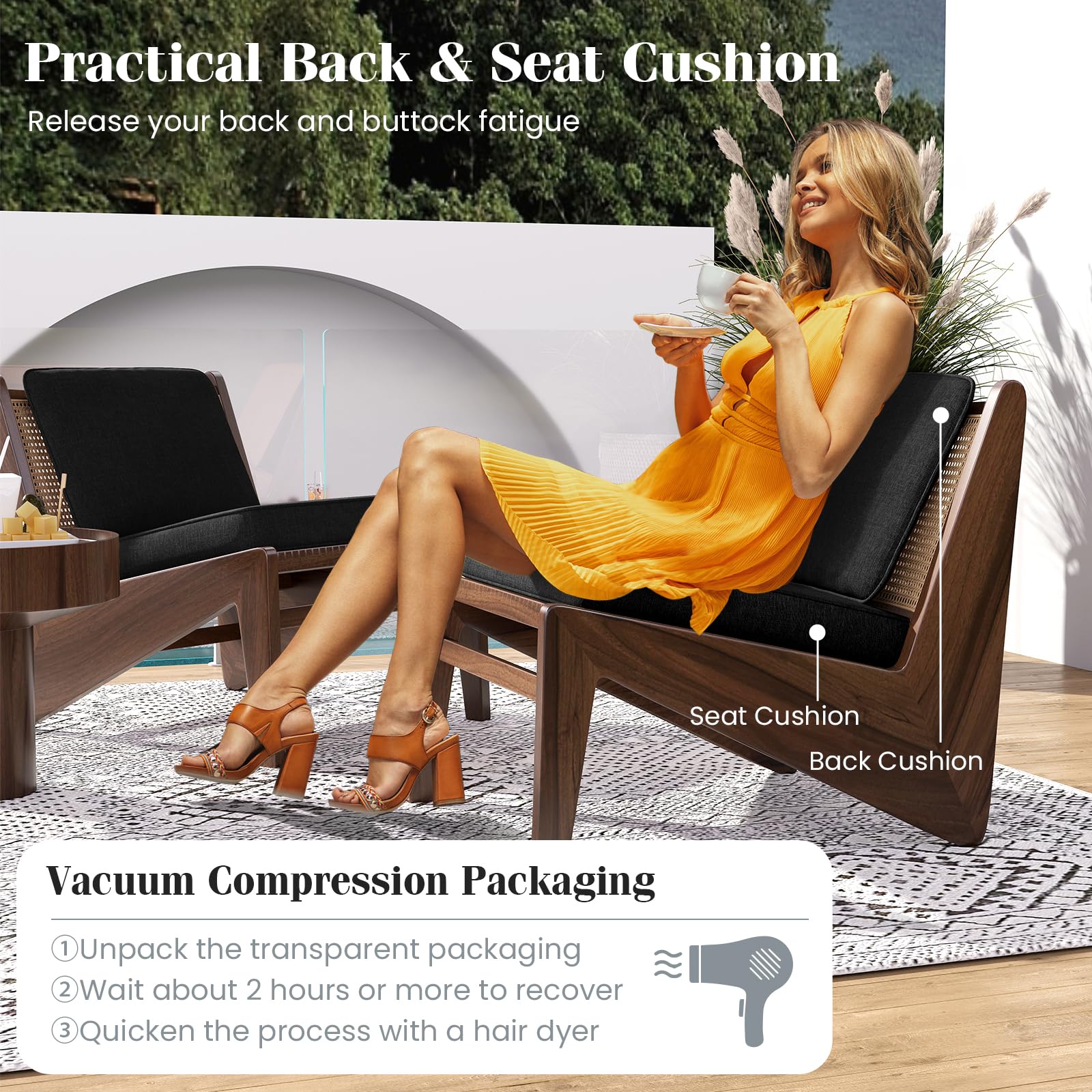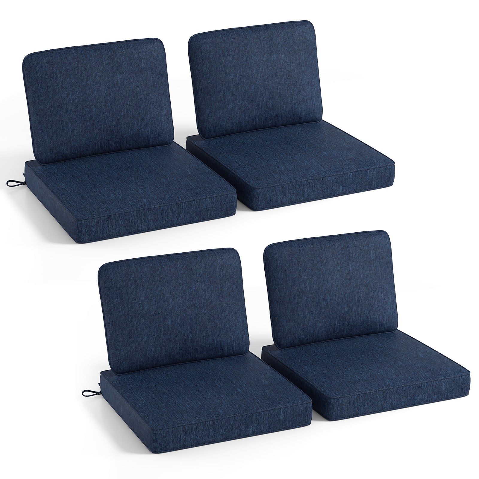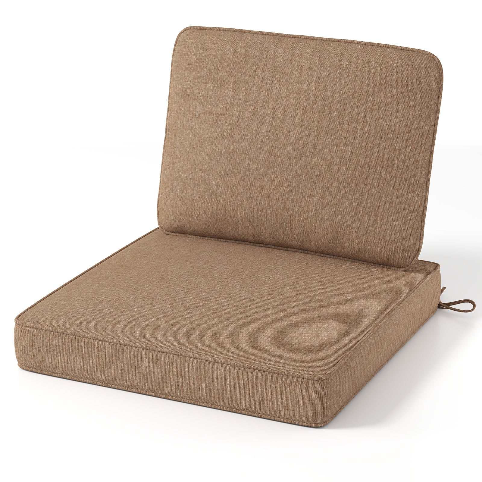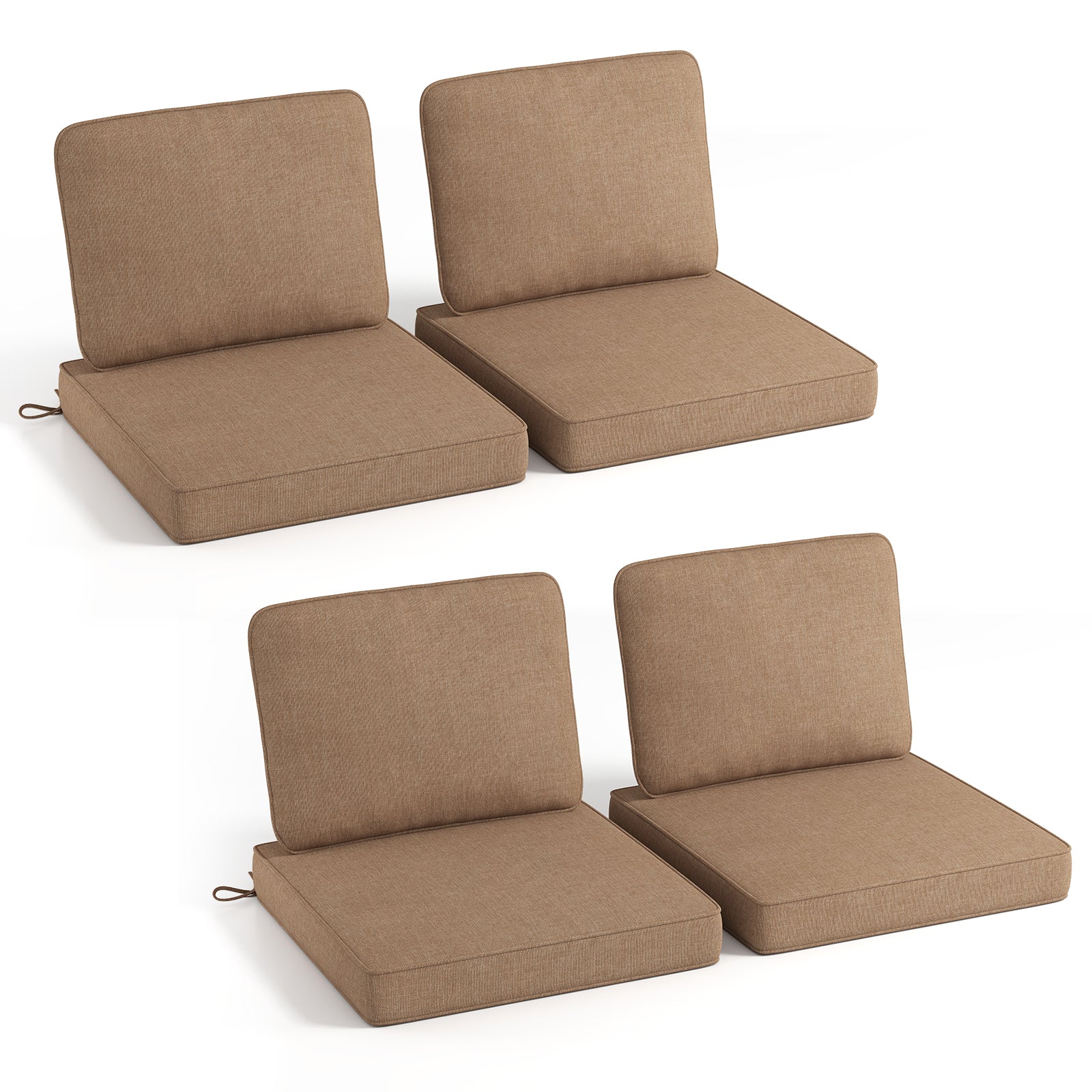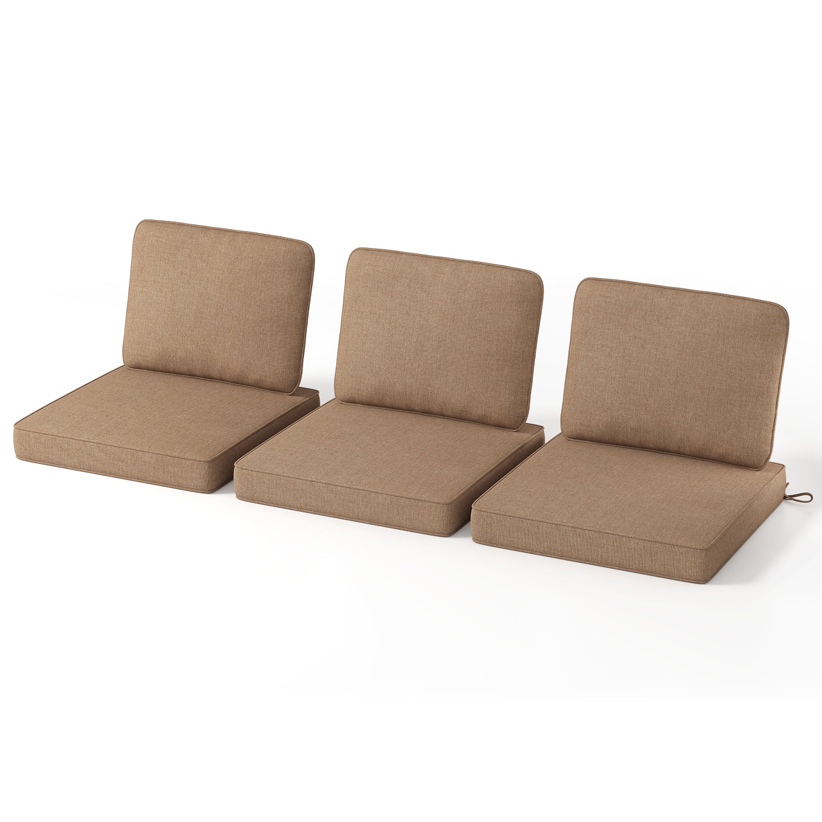 This outdoor patio cushion set is covered in high-quality Olefin fabric, which is wear-resistant, skin-friendly, and breathable. The fabric is also resist fading, sun damage, and water, keeping the cushions looking vibrant and elegant for a long time. Filled with a 28D sponge, they provide excellent support and comfort, retaining their shape even after extended use. Additionally, these versatile cushions are perfect for dining chairs, patio chairs, garden lounges, and more. Plus, the cushion and pillow come with a zipper design for you to take out the cover easily.