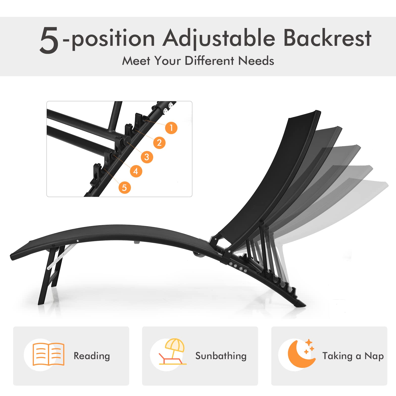 - Upgraded 5-position Adjustable Backrest: Featuring a 5-position adjustable backrest, this outdoor chaise lounge set allows you to find the most comfortable angle to meet your different needs. Therefore, you can sit up for reading or just lie down for sunbathing and taking a nap. Meanwhile, the streamlined curved design brings optimal comfort for long-time lying.
