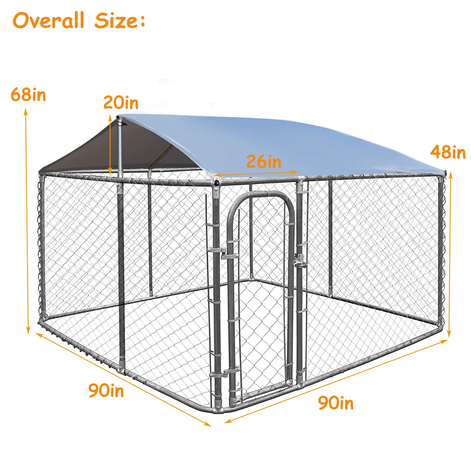 - 【7.5ft x 7.5ft Dog kennel】: The outdoor dog kennel offers a large space for your pets to enjoy running and playing freely. And it can also avoid housebreaking or other destructive behaviors of your dogs.