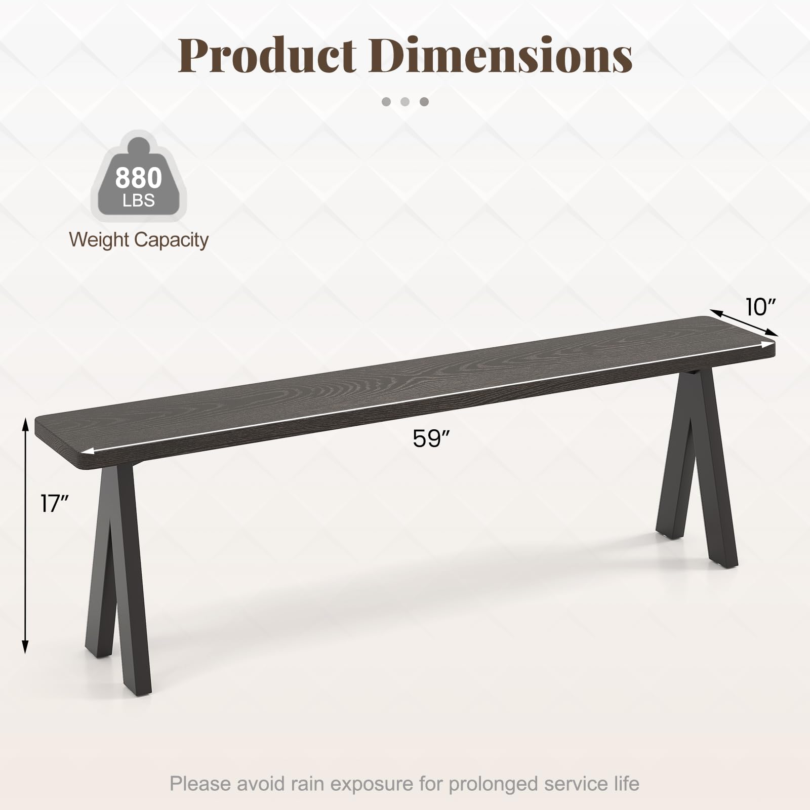 Each patio backless bench, supporting up to 800 lbs with its robust triangular structure, promises stable and reliable seating. Constructed with premium zinc-iron alloy and galvanized iron, these rustproof benches ensure durability and longevity in the outdoor environment. The spacious 59-inch seating comfortably accommodates 3 people, making it ideal for social gatherings in your garden, porch or backyard. Plus, the wood-like appearance elegantly complements your outdoor decoration.