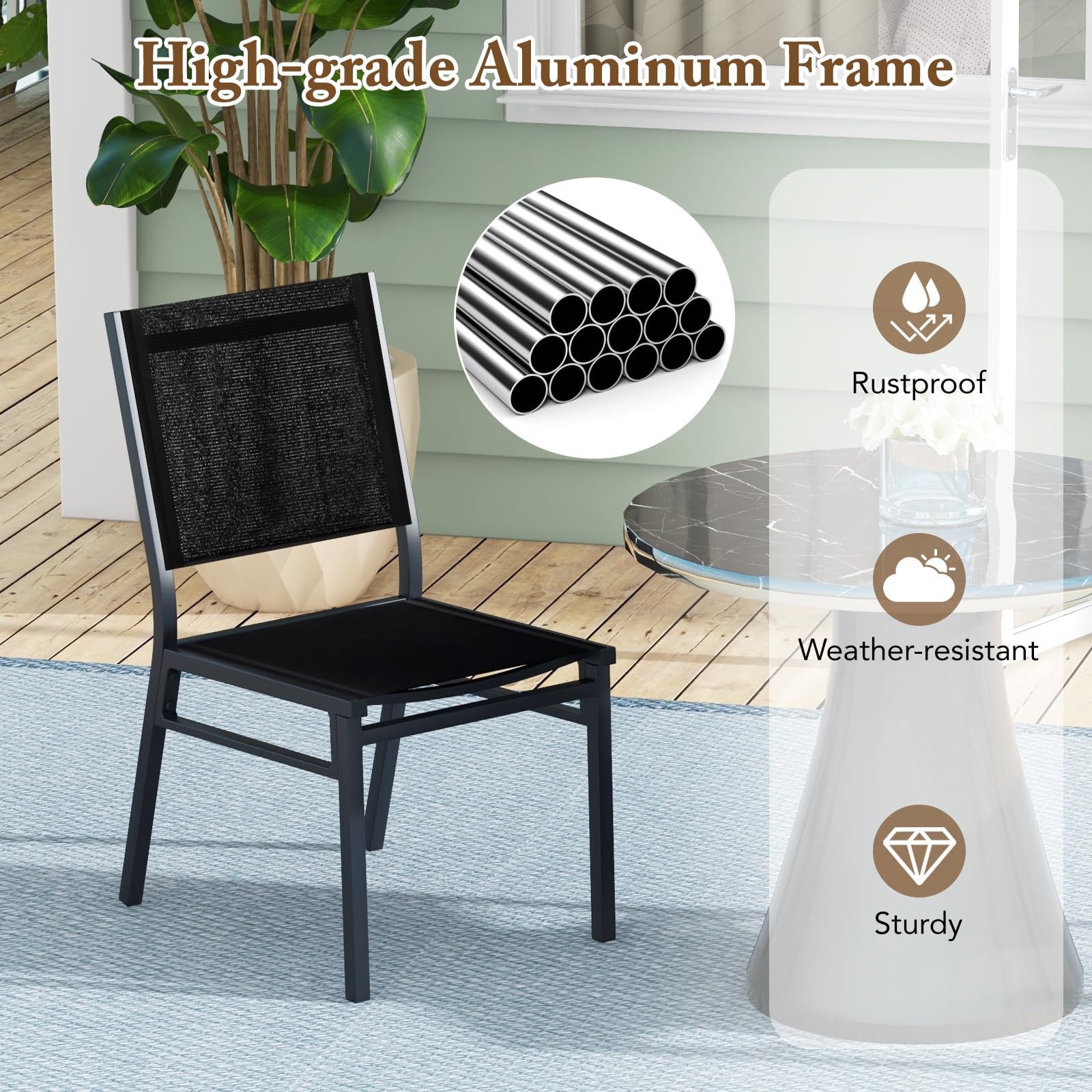 Upgrade your outdoor seating with our aluminum patio dining chairs! Crafted with high-grade aluminum frame, these chairs are not only sturdy and rustproof but also stylish. The premium fabric material ensures a comfortable sitting experience, perfect for long hours of relaxation in your backyard or garden. With a minimalist design, these chairs are versatile and perfect for various occasions, whether it's a family gathering or a casual meal outdoors. These armless chairs are a convenient and low-maintenance addition to your outdoor space.