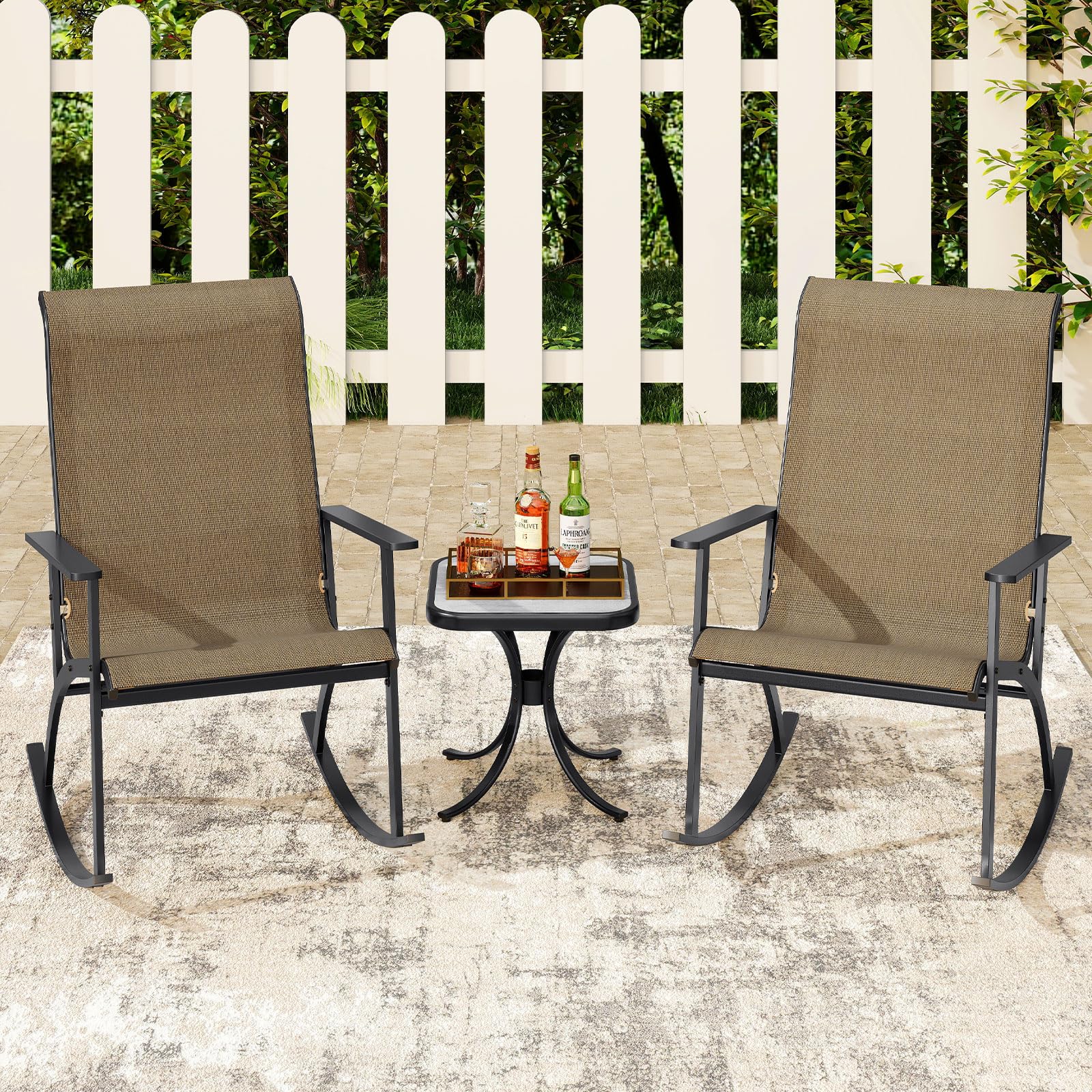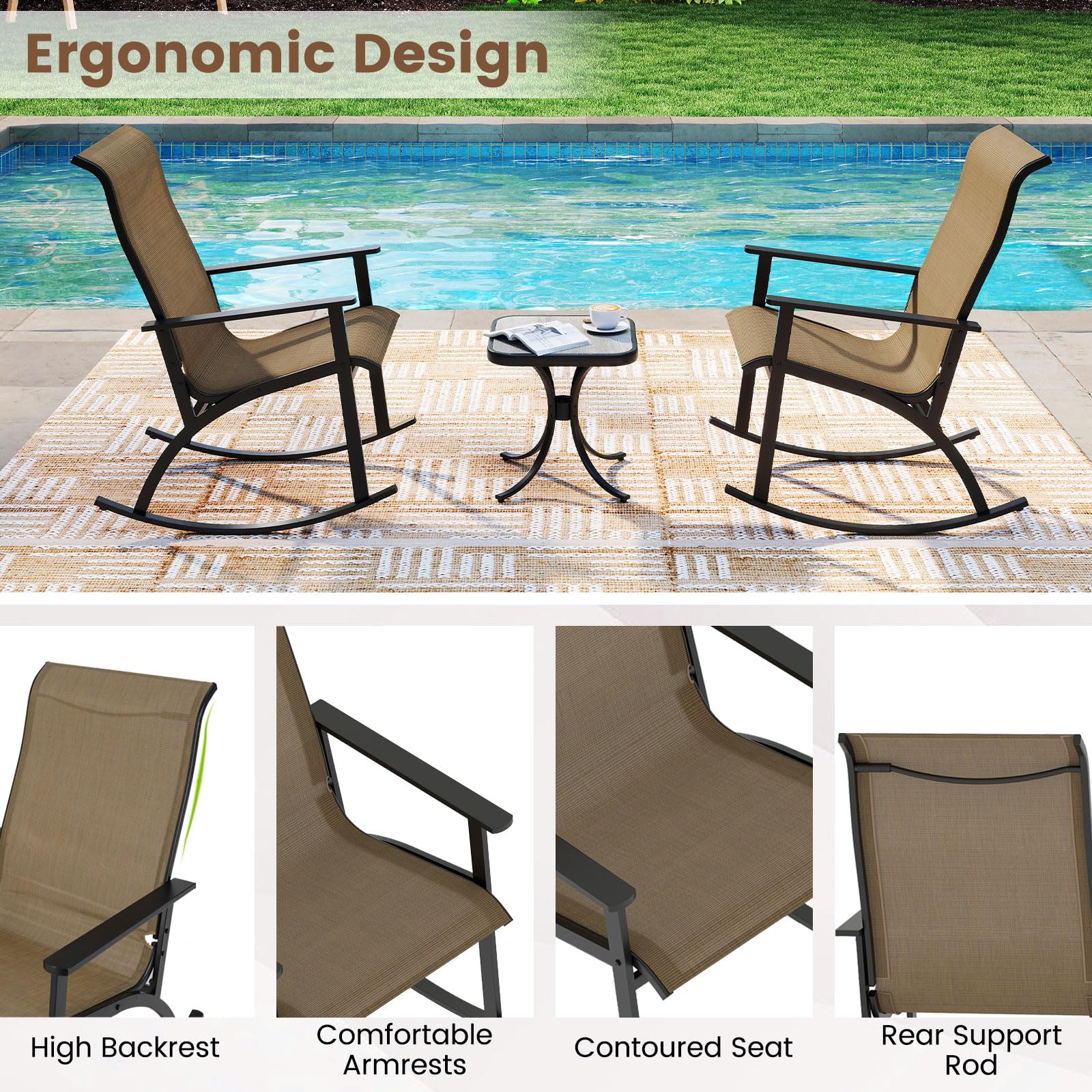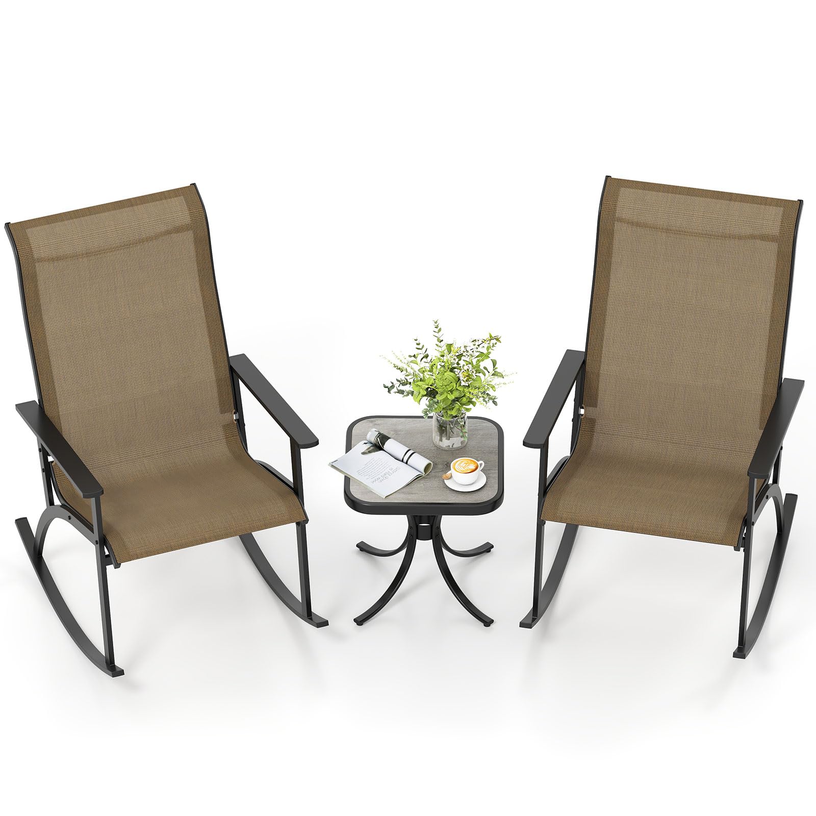 Enjoy relaxing outdoor leisure time with our 3-piece patio rocking chair set!
