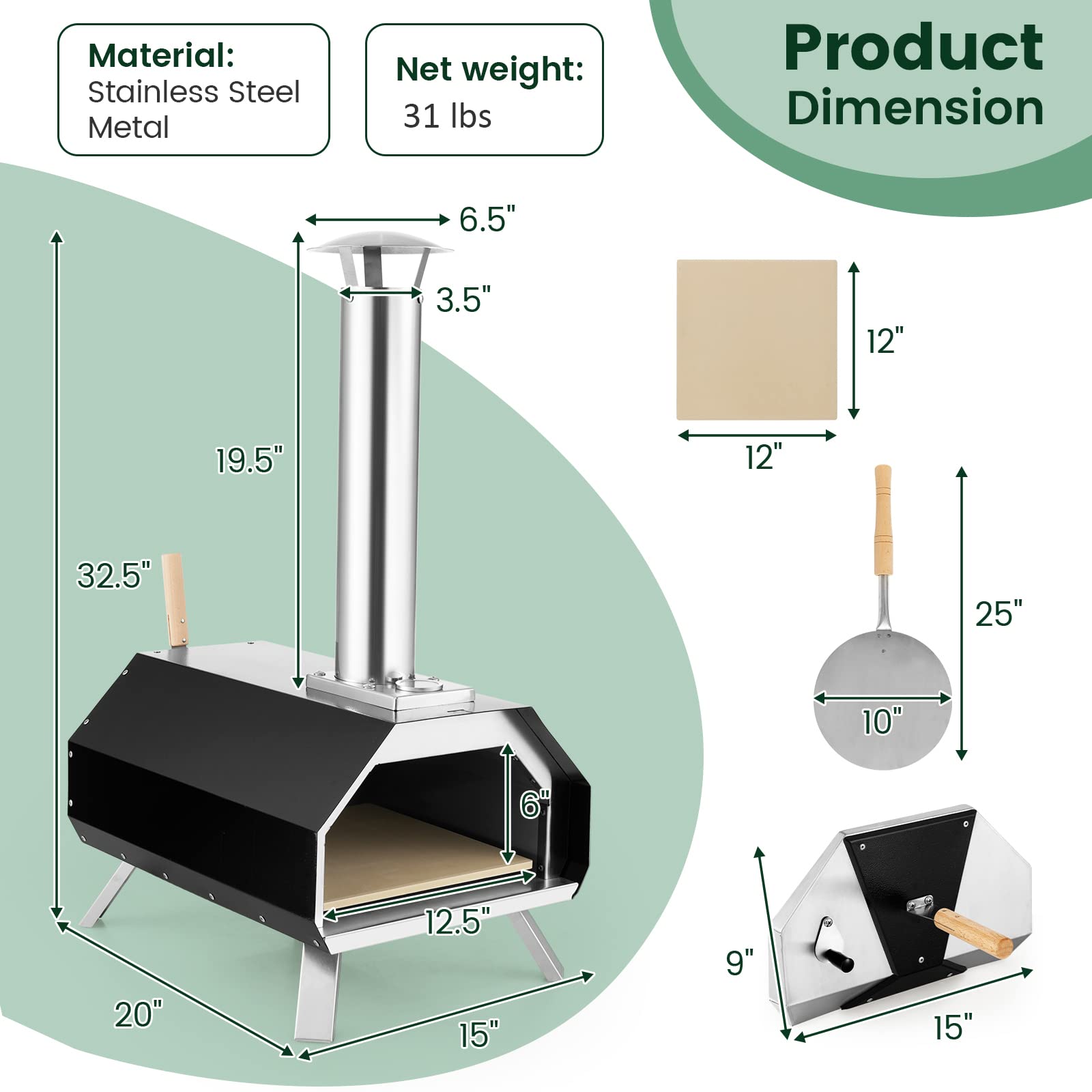 - Easy Setup & Complete Accessories: Assembly is quick and easy following detailed instructions. The pizza grill is constructed with rustproof and heat-resistant construction. After use, you can easily clean the oven with a damp cloth. You will receive 1 x pizza oven, 1 x cordierite pizza stone, and 1 x pizza peel.